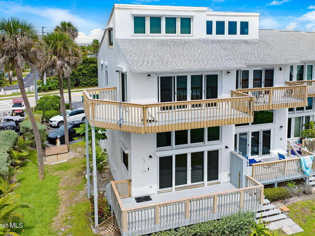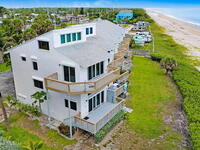 Ocean Front South East corner Ultimate Surfer's Dream Home with private each access. Lease term min 4 months .If you like Fishing, Golfing, Catching perfect waves, walking the shoreline, watching wild sea life and birds or being fascinated by Sea Turtles nesting in your backyard, this home is for you..Spacious, fully renovated open kitchen, with new cabinets, gorgeous granite waterfall countertops, Top of the line appliances, washer & dryer hookup available at top floor full home water filtration systems, Roof 2019, AC 2019, 24x48 White Porcelain floor, smart toilets, electric car charger and much more.Enjoy uninterrupted beach views from Cape Canaveral to Vero Beach. Miles of sandy beaches, wildlife and blue waters. 15-foot ceilings and over 2000 square feet interior plus 3 outside decks.Two master suites on the second level with their own terraces, plus a huge oceanfront 18x13 loft on the top floor surrounded by multiple panoramic windows.