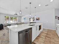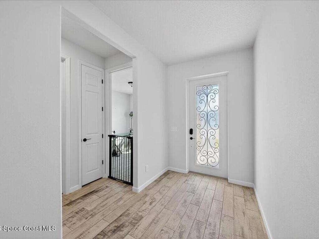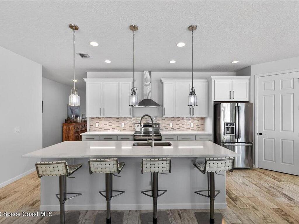 Welcome to gated living in the heart of West Melbourne! Built in 2021, this 4BR/2BA home offers just under 2, 000 sq ft of thoughtfully designed space with soaring ceilings and 8' doors throughout. The split floor plan features beautiful wood-look tile floors and an open-concept layout perfect for entertaining. The chef's kitchen boasts an oversized island, white shaker cabinets, quartz countertops, tile backsplash, stainless appliances and a wine fridge. The spacious primary suite overlooks the backyard oasis and includes a dream-worthy walk-in closet with custom built-ins. Step outside to your fully fenced yard with a stunning saltwater pool complete with waterfall and electric heater. Close to major employers, shopping, dining and just minutes to the beaches!