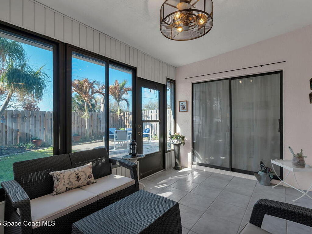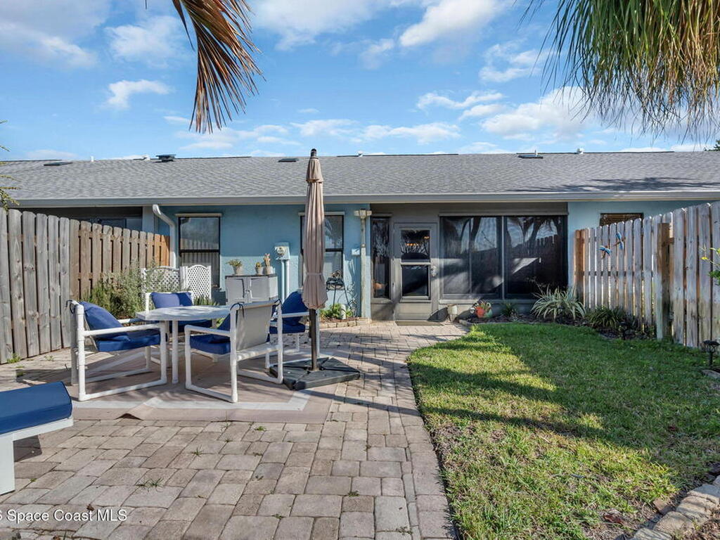 Beautiful, updated 2 bedroom, 2 bathroom townhouse featuring tile flooring throughout the main living areas and carpet in the bedrooms. The kitchen offers granite countertops and updated finishes.Enjoy an enclosed rear porch with an extended paver patio and fully fenced backyard.The two-car garage includes a partially converted section with electric and AC, ideal for office space, hobby area, or additional storage.Community pool. Excellent location with convenient access to the beach, shopping, and restaurants. Roof 2022.