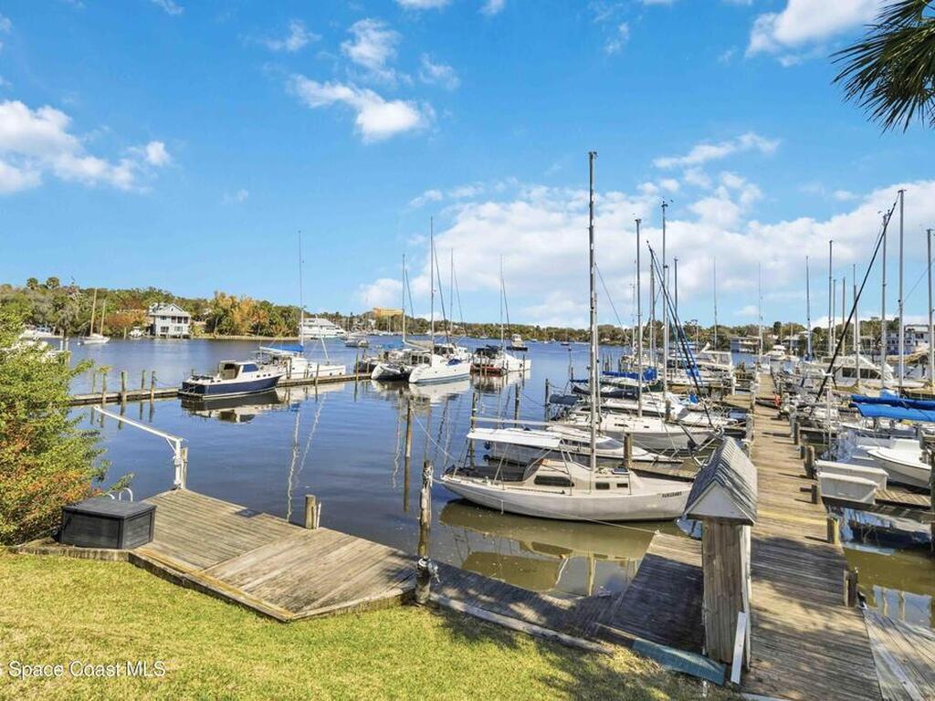 Affordable Luxury exceptional views. This second-floor condo has 3-bedroom, 2-bath waterfront residence offers tranquil views of the Eau Gallie River and marina with a functional split floor plan. The living area opens to a large screened balcony--perfect for river breezes and boat watching. Dining area features a built-in wet bar with wine storage and sink. The kitchen includes stainless steel appliances and granite countertops. The primary suite enjoys water views, a double-sink vanity, and walk-in shower. Tile and wood flooring, in-unit laundry, hurricane-rated balcony screens, extra storage, and garage parking included. Minutes to Downtown Eau Gallie dining, shopping, and arts. HOA covers cable, internet, water, sewer, trash, insurance, and exterior maintenance. Community pool, clubhouse, and elevators.