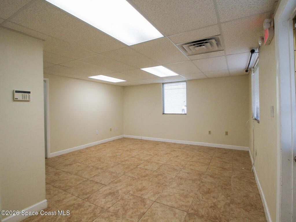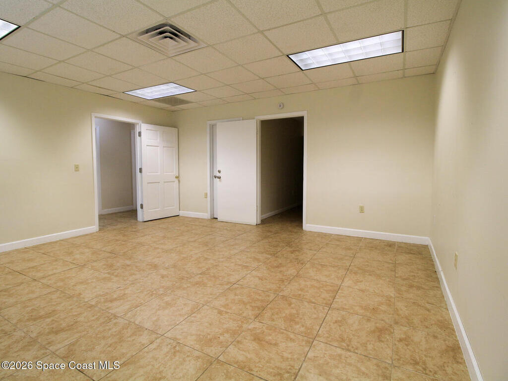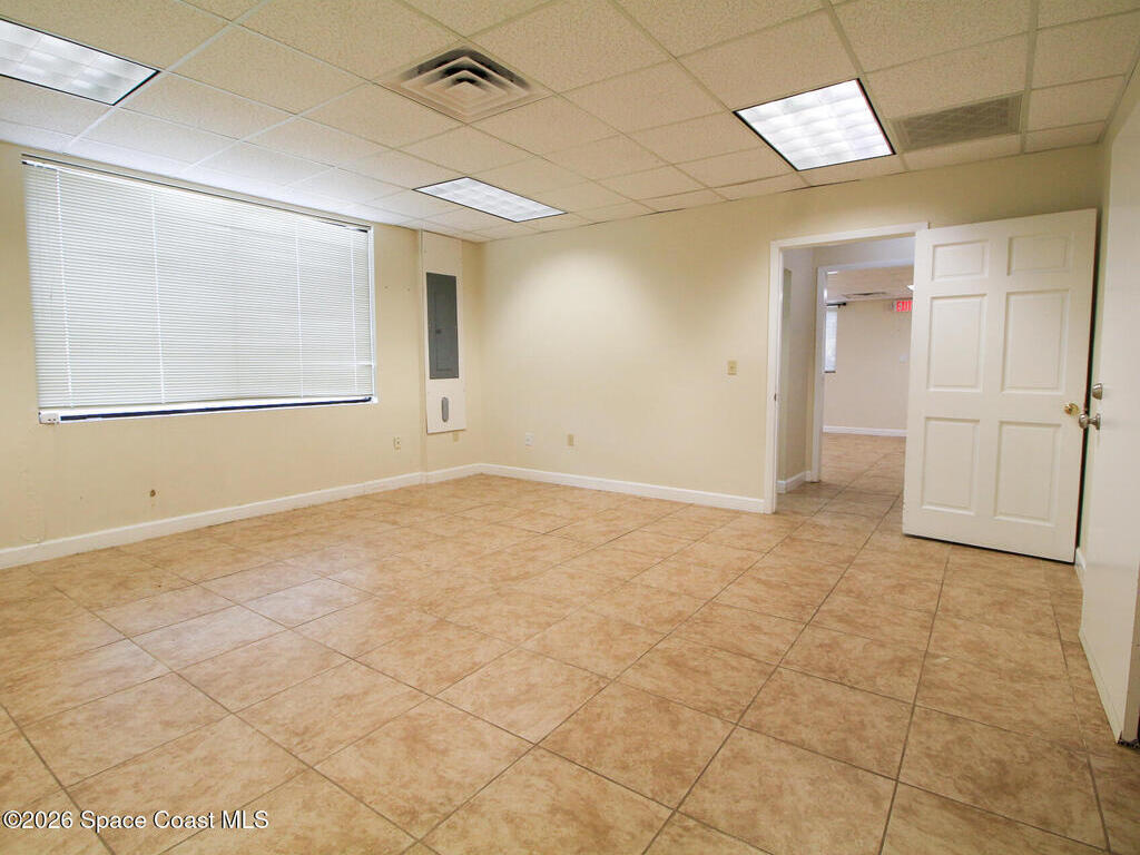 Unit 101 offers a functional office suite with reception, private offices, dedicated kitchen and private bathroom plus a separate warehouse bay (Bay 3) ideal for contractors, trades or storage users. The bay is not physically attached to the office and is accessed from the exterior, providing flexibility for operations and equipment. Property features a high-clearance roll-up door, insulated warehouse ceiling and a large gravel parking and yard area suitable for trucks, trailers and service vehicles in a convenient Rockledge industrial location near major corridors.