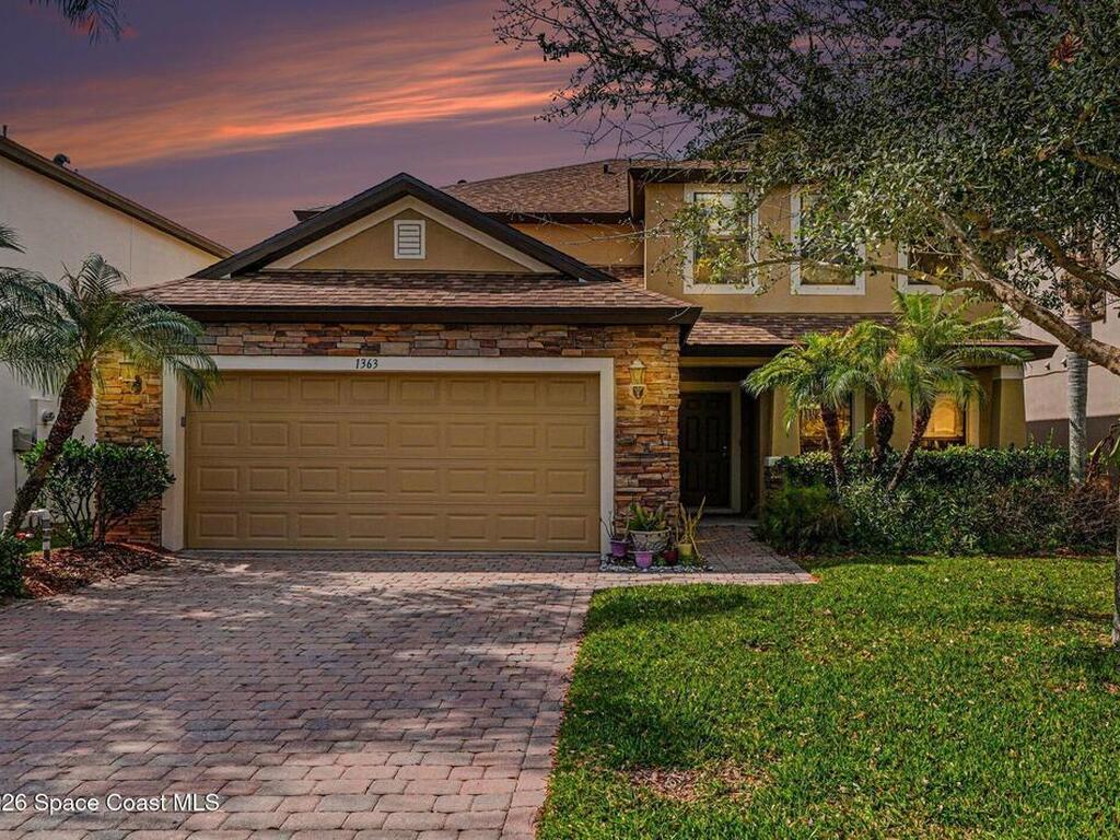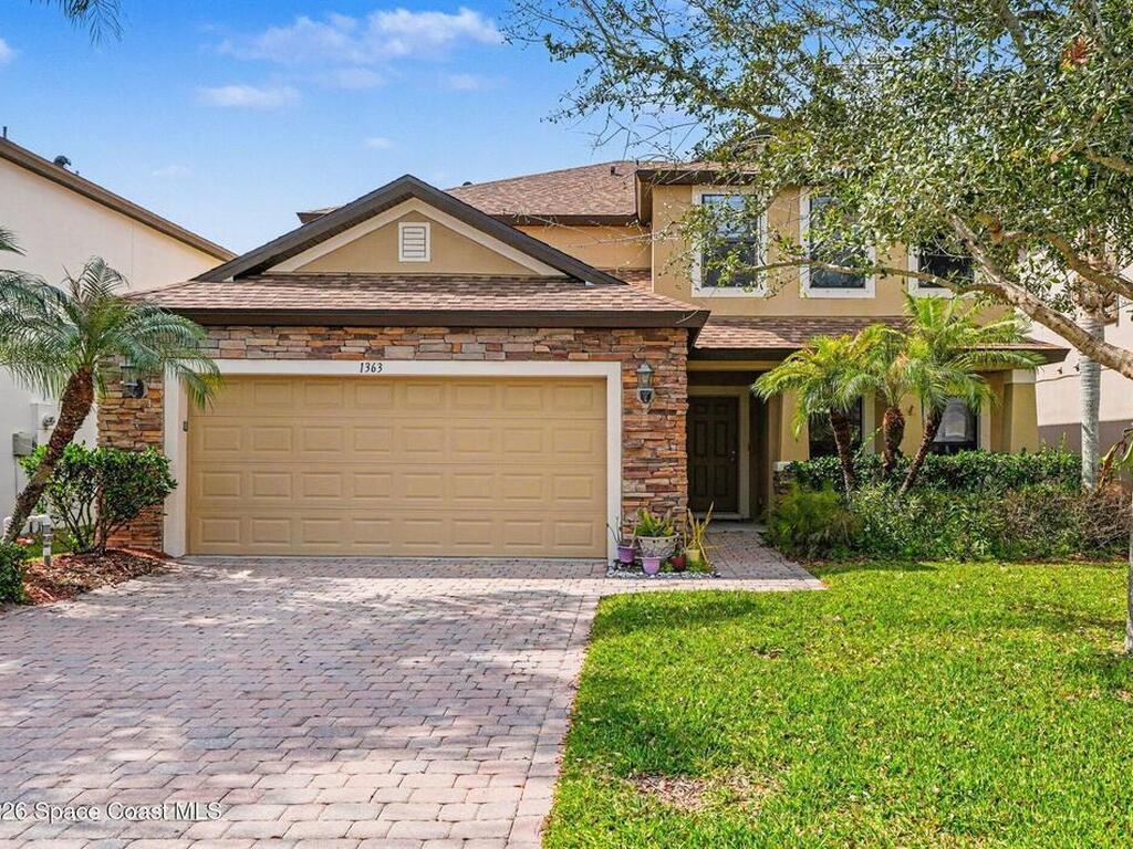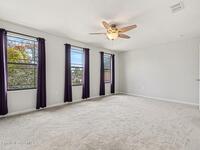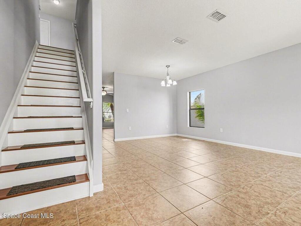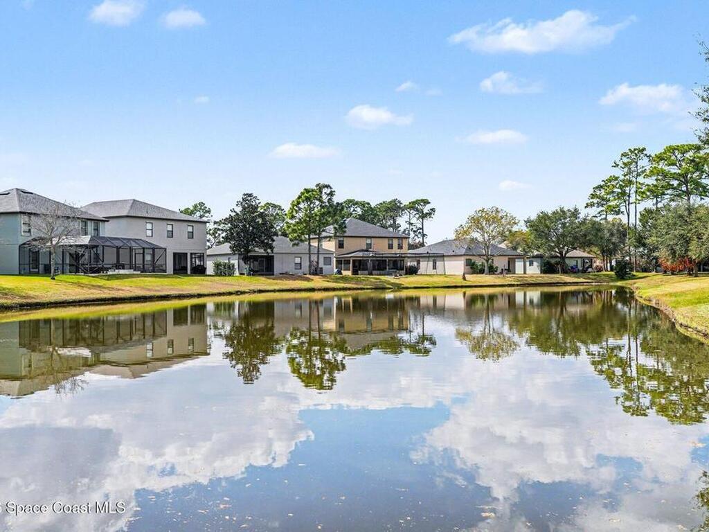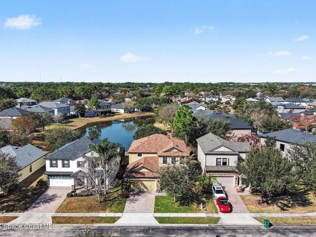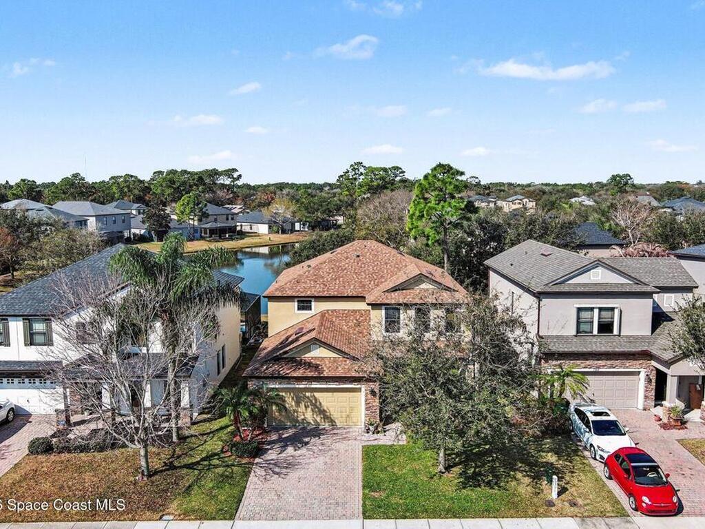 Impeccably maintained 2 story home in a gorgeous gated community. This home includes a rare downstairs bedroom next to a full bathroom with the primary suite & additional 3 bedrooms upstairs making it perfect for guests. The open kitchen with eat-in area & massive walk-in pantry include updates like an air fryer/convection oven, & a sanitizing dishwasher. This blends with the primary gathering room & the trussed porch with extended screen room overlooking the pond for tranquil days. The hardwood staircase & loft lead you to the luxurious primary suite with tray ceilings, huge walk-in closet, garden tub, walk-in shower, & dual sinks with a vanity. Storage is not a problem with a walk-in closet in another bedroom, under stair storage area, & shelving in the garage along with a storage lift. Updates include 2024 roof, 2024 & 2019 AC units (2), 2019 garage door, carpet & more! Perfectly located in the heart of West Melbourne near shopping, dining, schools, medical, the beach & more!