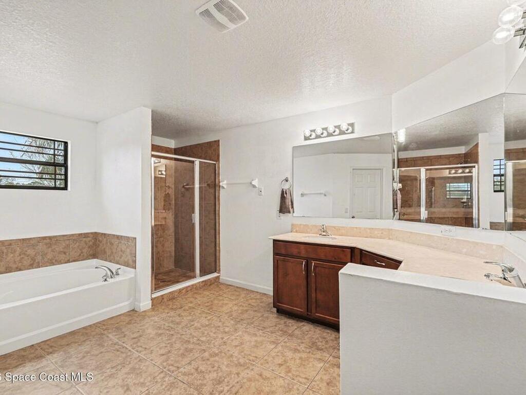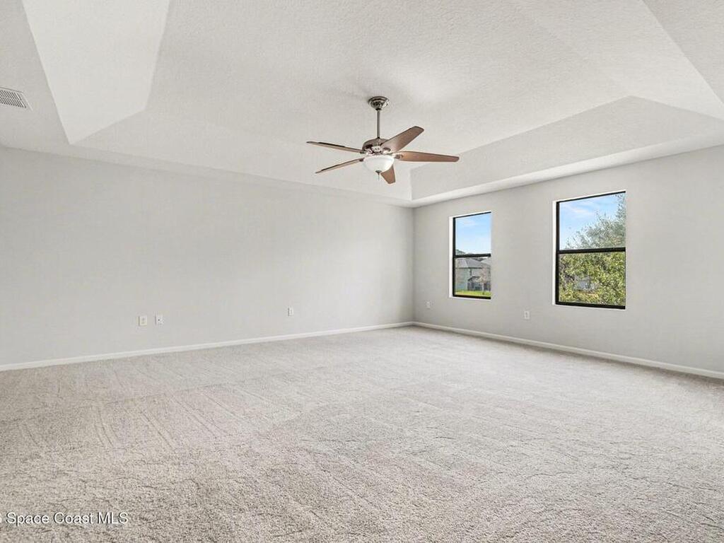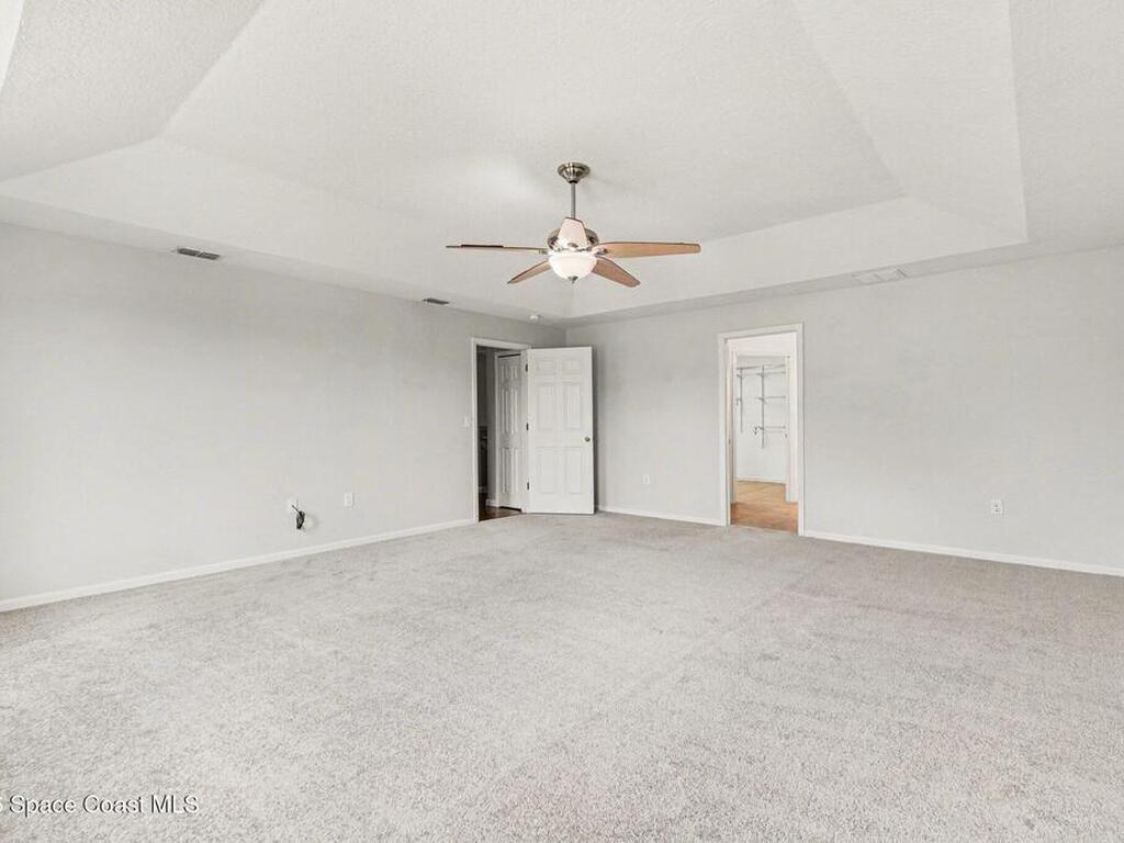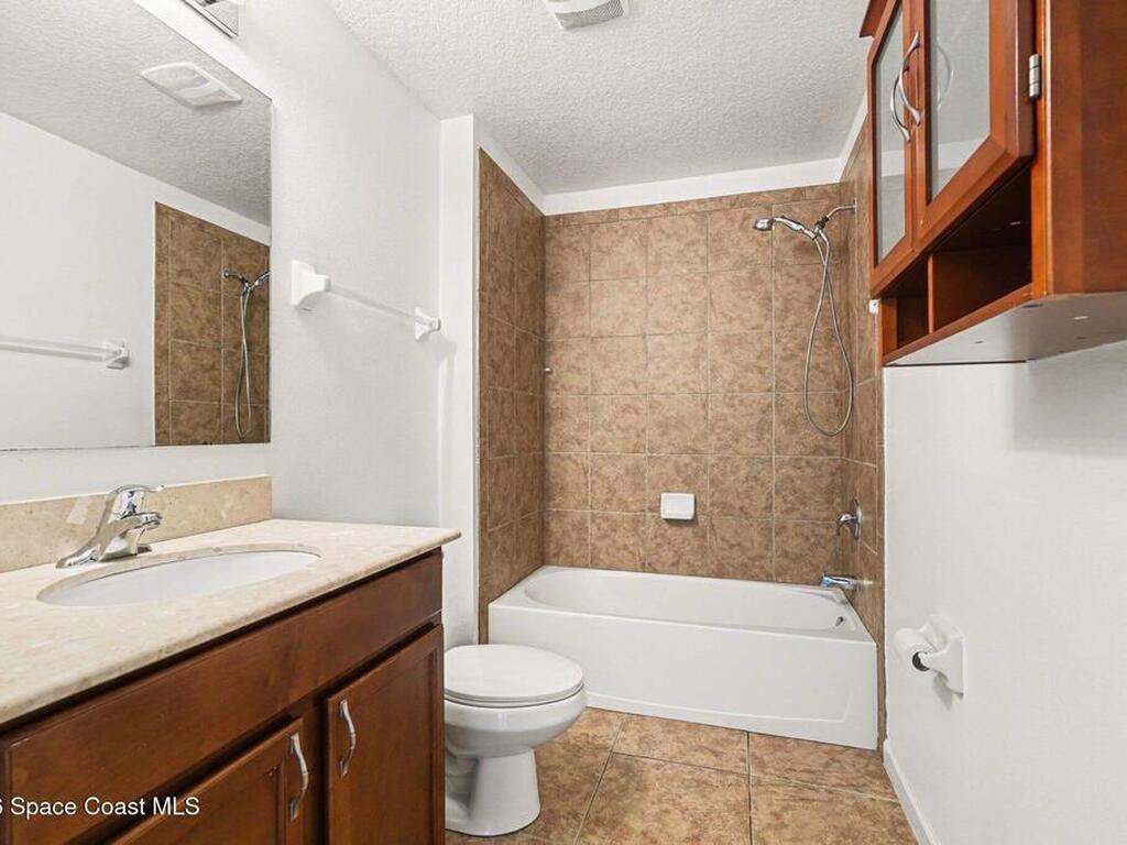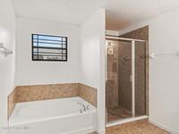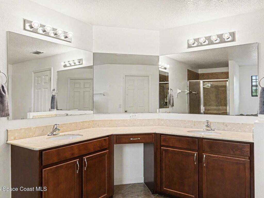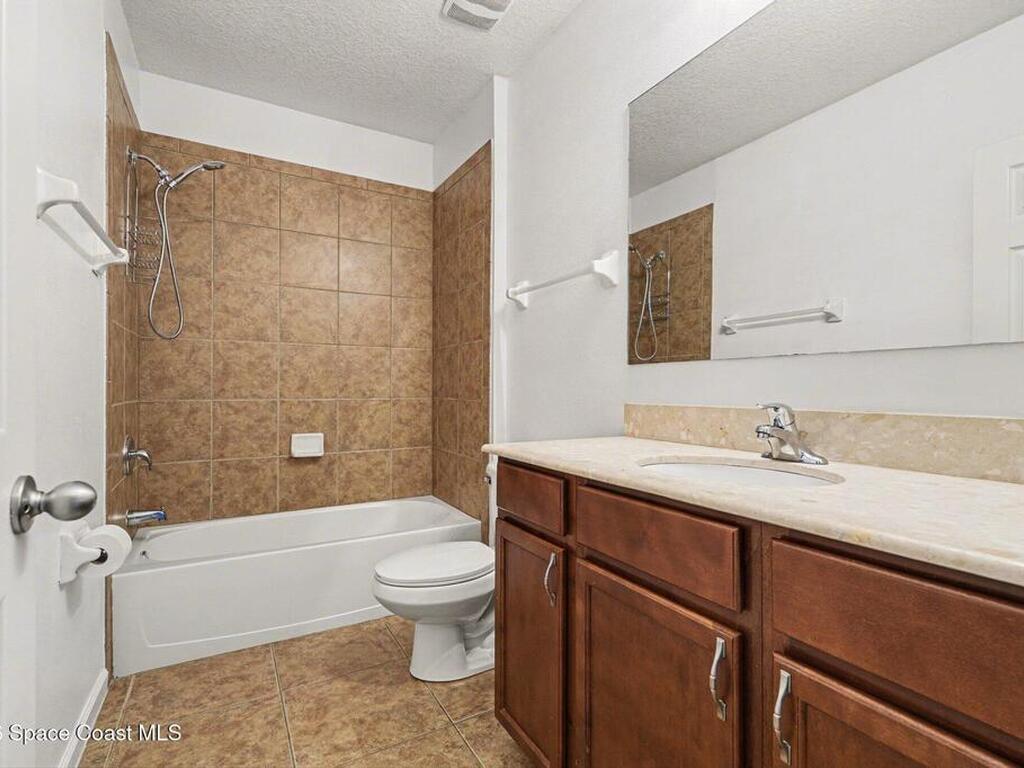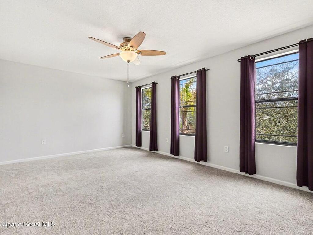 Impeccably maintained 2 story home in a gorgeous gated community. This home includes a rare downstairs bedroom next to a full bathroom with the primary suite & additional 3 bedrooms upstairs making it perfect for guests. The open kitchen with eat-in area & massive walk-in pantry include updates like an air fryer/convection oven, & a sanitizing dishwasher. This blends with the primary gathering room & the trussed porch with extended screen room overlooking the pond for tranquil days. The hardwood staircase & loft lead you to the luxurious primary suite with tray ceilings, huge walk-in closet, garden tub, walk-in shower, & dual sinks with a vanity. Storage is not a problem with a walk-in closet in another bedroom, under stair storage area, & shelving in the garage along with a storage lift. Updates include 2024 roof, 2024 & 2019 AC units (2), 2019 garage door, carpet & more! Perfectly located in the heart of West Melbourne near shopping, dining, schools, medical, the beach & more!