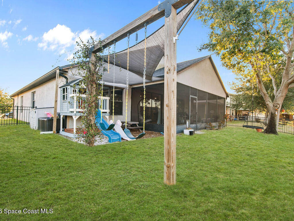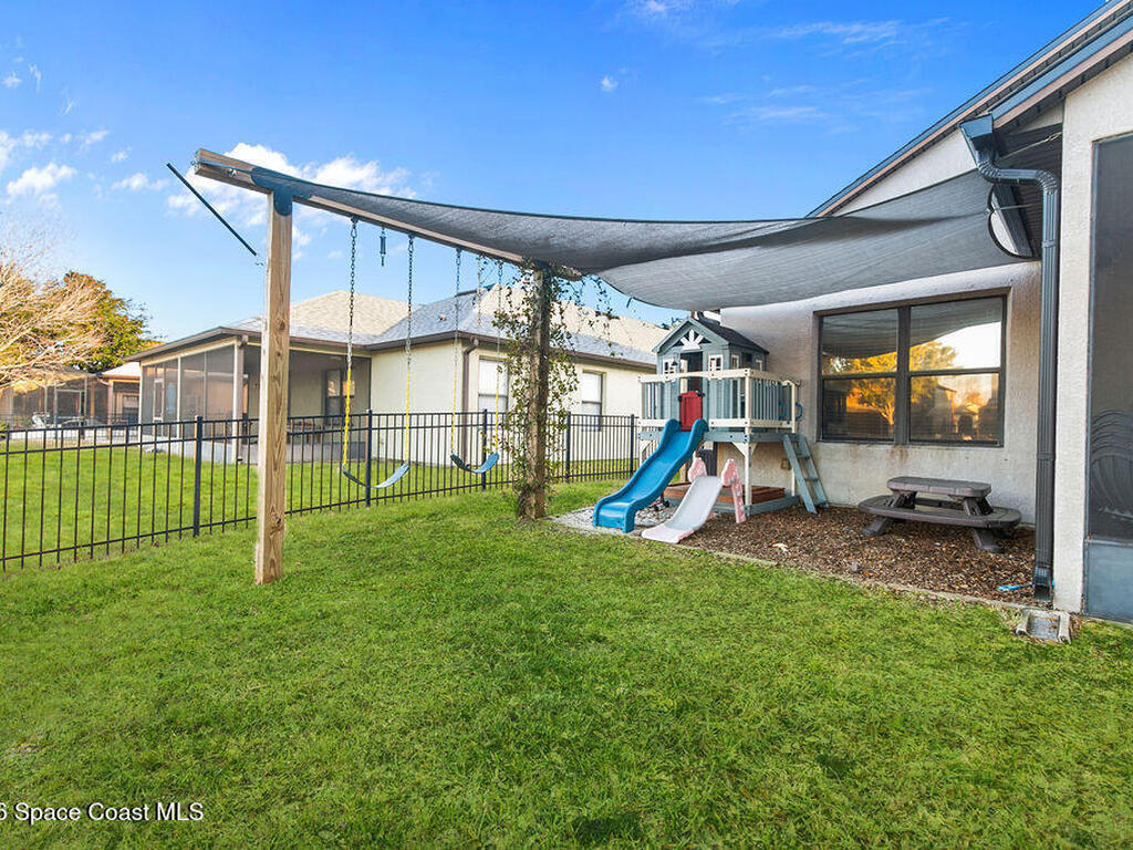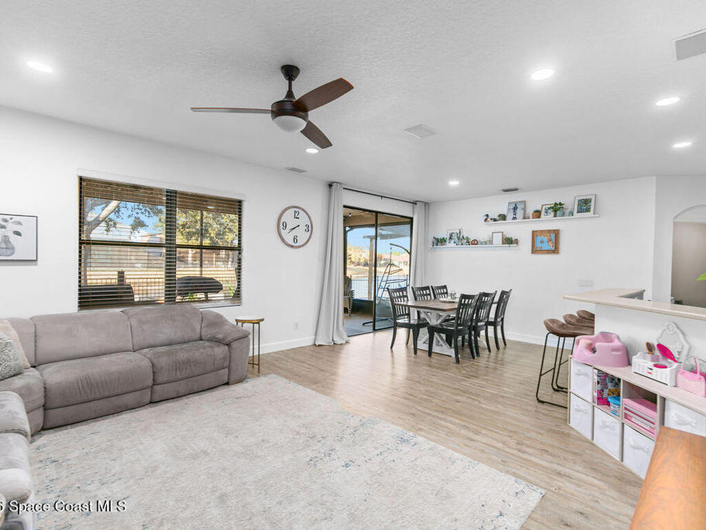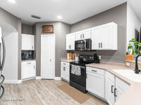 Florida living is encapsulated in this 3 bed, 2 bath home in Rockledge with many recent updates/upgrades. With its open concept floor plan, bathed in natural light, this space is perfect for entertaining. The heart of the home is the great room, a space that connects the updated kitchen complete with newer appliances and crisp white shaker style cabinetry. The split floor plan has the primary suite located off of the kitchen/dining room area, granting privacy and boasting a spacious walk-in closet and an ensuite with a large shower. The remaining two bedrooms share a full bath on the other side of the home. The home is situated on a level lot with a charming covered patio overlooking the yard. Close to beach/river access as well as PSFB along with many local shops, restaurants & more, do not miss your chance to make Rockledge home.