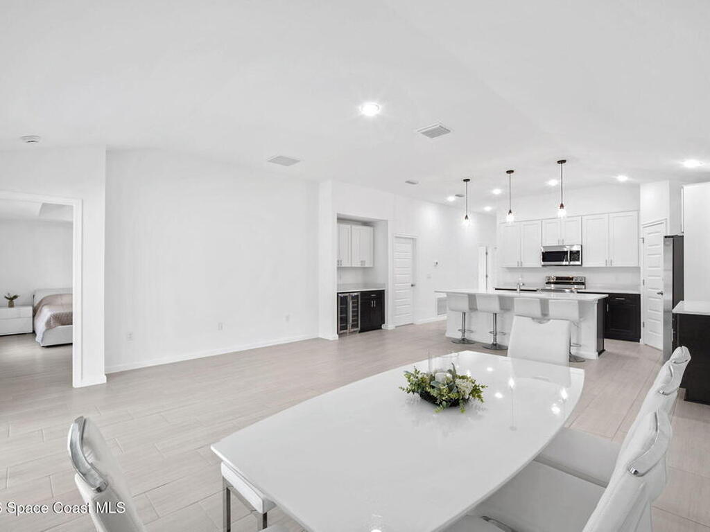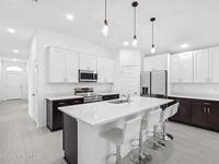 3% SELLER CONCESSIONS! NO HOA! Luxury living at an affordable price! With 1794 SQFT of living space, to include four spacious bedrooms and two elegant bathrooms, this corner lot home offers ample space for both relaxation and entertainment. The open-concept features a modernized kitchen, complete w/ 42'' upper cabinets, Samsung stainless steel appliances, large island, dry bar, & highlighted with quartz countertops. The master suite boasts an upscale bathroom, with Corian solid surface counters, custom fixtures, and standalone shower w/accented tile and flooring. Additional bedrooms are generously sized, ideal for guests or a home office. Other features are custom tile throughout (NO CARPET!), custom efficient fixtures and LED lighting, prewire for fans in all bedrooms, storm shutters, double pane windows, hurricane rated garage door, and covered lanai patio for outdoor gatherings. This home is on city water and septic. 1 yr bumper to bumper/2-10 Builder warranty included.