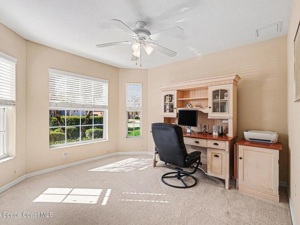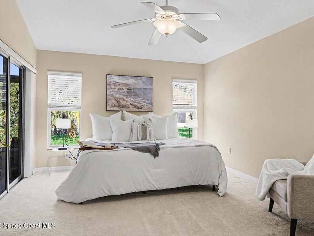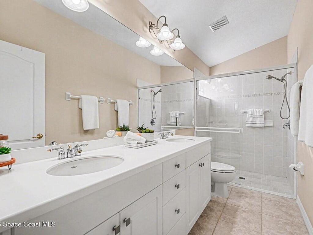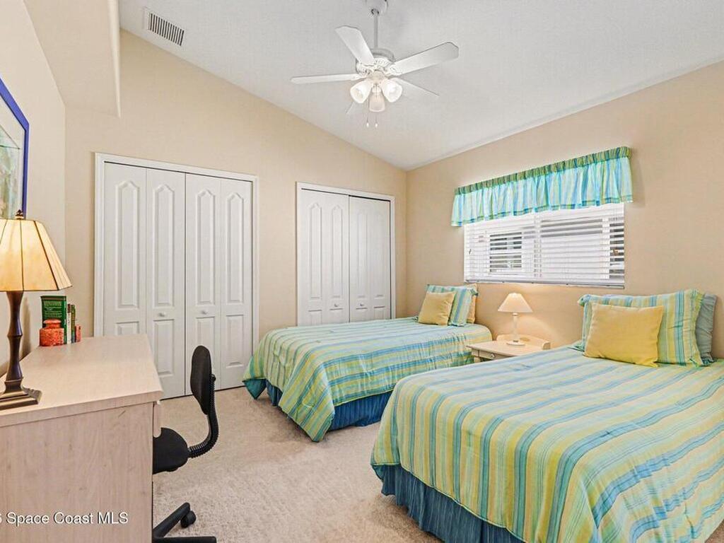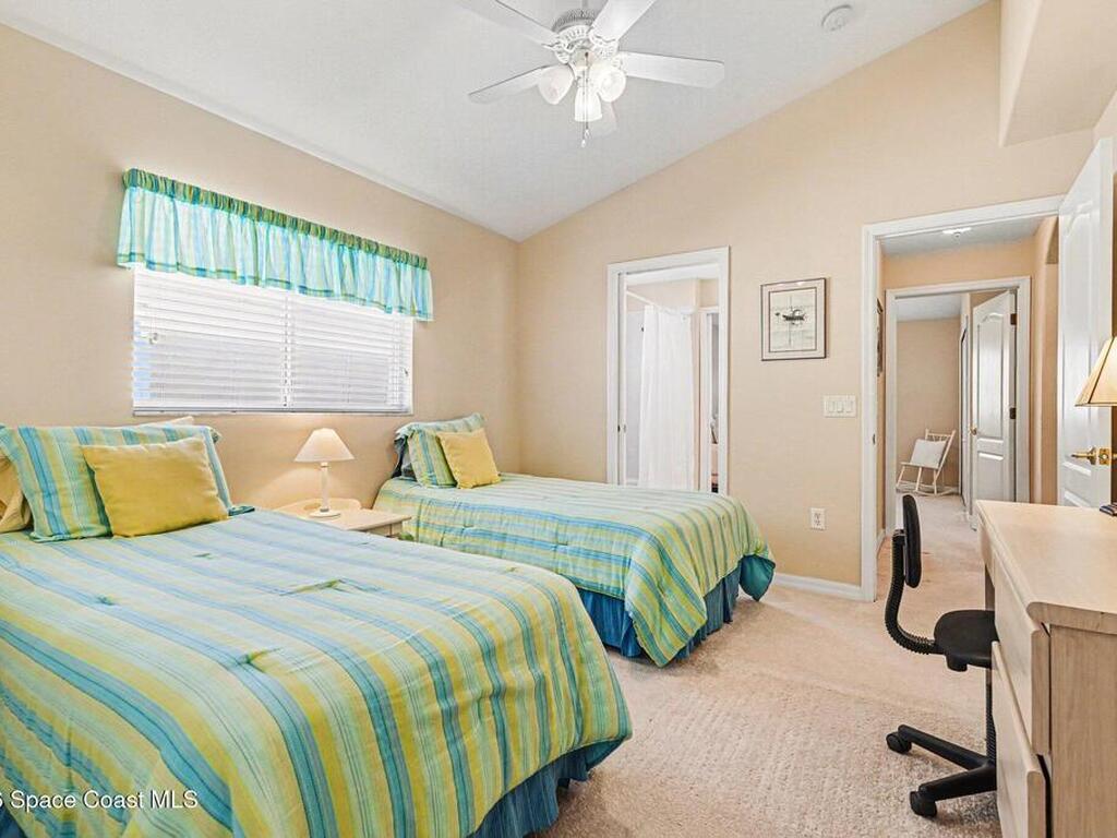 Welcome to resort style living in Heritage Isle, one of Viera's most desirable 55+ communities. This beautifully-maintained 4-bedroom, 3-bath home offers a versatile layout ideal for guests, office space, or hobbies. A convenient Jack and Jill bath connects two secondary bedrooms, providing comfort and privacy. The spacious primary suite offers a relaxing retreat, while the enclosed patio is perfect for year-round enjoyment. Hurricane panels add peace of mind. Major updates include exterior paint (4/2025), A/C (11/2023), roof (12/2023) and water heater (6/2023), giving buyers confidence and value. Heritage Isle residents enjoy full lawn maintenance and exceptional amenities including a resort-style pool and spa, clubhouse, fitness center, tennis courts, pickleball, bocce ball, shuffle board, and a full calendar of social activities. Convenient to shopping, dining, golf, and beaches--this is Florida living at its best!