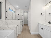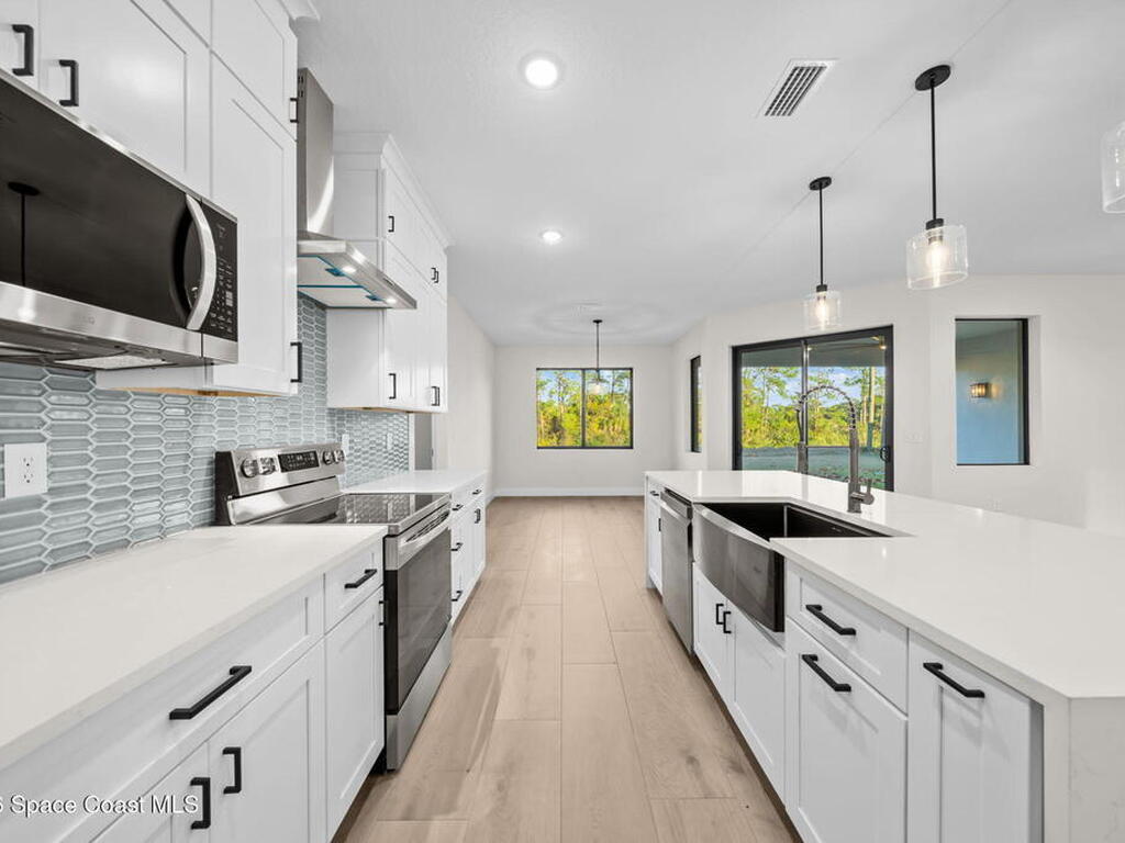 Luxurious new construction! 4 BED | 3 BATH + OFFICE. Paid Closing Costs with builders preferred lender! This home showcases quality at every turn with IMPACT windows & doors, wood-look porcelain tile, soaring 9'4'' ceilings, and 8' interior doors. The gourmet kitchen is a chef's dream featuring a large waterfall quartz island, tile backsplash, ceiling-height soft-close cabinetry, pull-out spice rack & hidden trash bin, pendant lights, exterior vented hood, premium LG appliances with refrigerator included, and bar area with built in wine rack. 4th bedroom is an in-law suite with it's private entrance and kitchenette. The primary suite offers a spa-like retreat with soaking tub, walk-in shower, dual vanities, and walk-in closet. Enjoy a covered patio pre-plumbed for a summer kitchen. Complete with water filtration system, laundry room w/ utility sink, smart fans, light fixtures, 1-year builder warranty and 10 year structural.