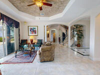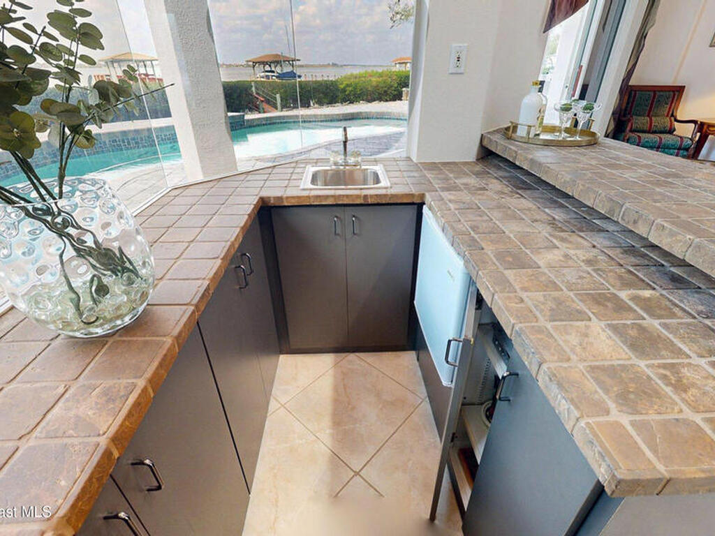 Welcome home to Tortoise Island! BEST RIVER VIEWS IN THIS COMMUMITY! 4 BED PLUS Bonus Room and Office where luxury meets tranquility. Bathed in natural light, featuring soaring ceilings and panoramic water views from nearly every room. The gourmet kitchen, perfect for entertaining flows into a spacious living area. Complete with a wet bar and mini fridge and a Bose stereo system throughout the downstairs! Enjoy the smell of ripening mangoes, and the shade your mango tree provides on a hot day as you enjoy your inground pool and sauna. Wander down to your own private oasis, featuring a modern deck and secure floating dock that makes launching kayaks, fishing, or docking your boat effortless. This home isn't just a place to live; it's a lifestyle, combining the peacefulness of nature with easy access to your aquatic adventures. With ample space for family and guests, this meticulously maintained home offers a rare opportunity for unparalleled waterfront living