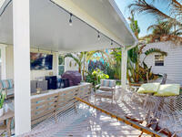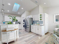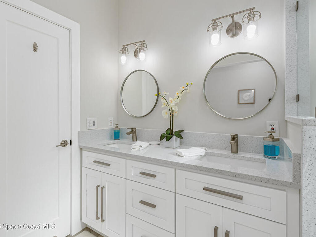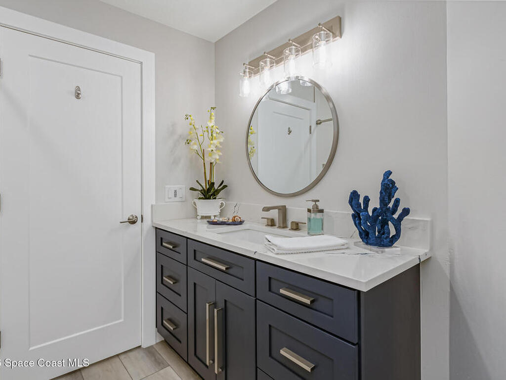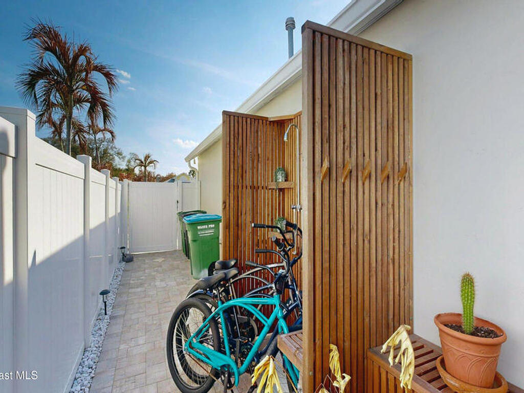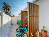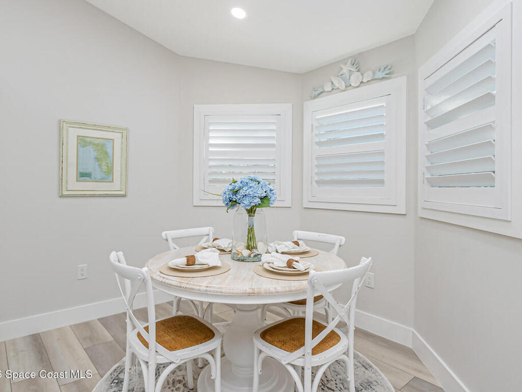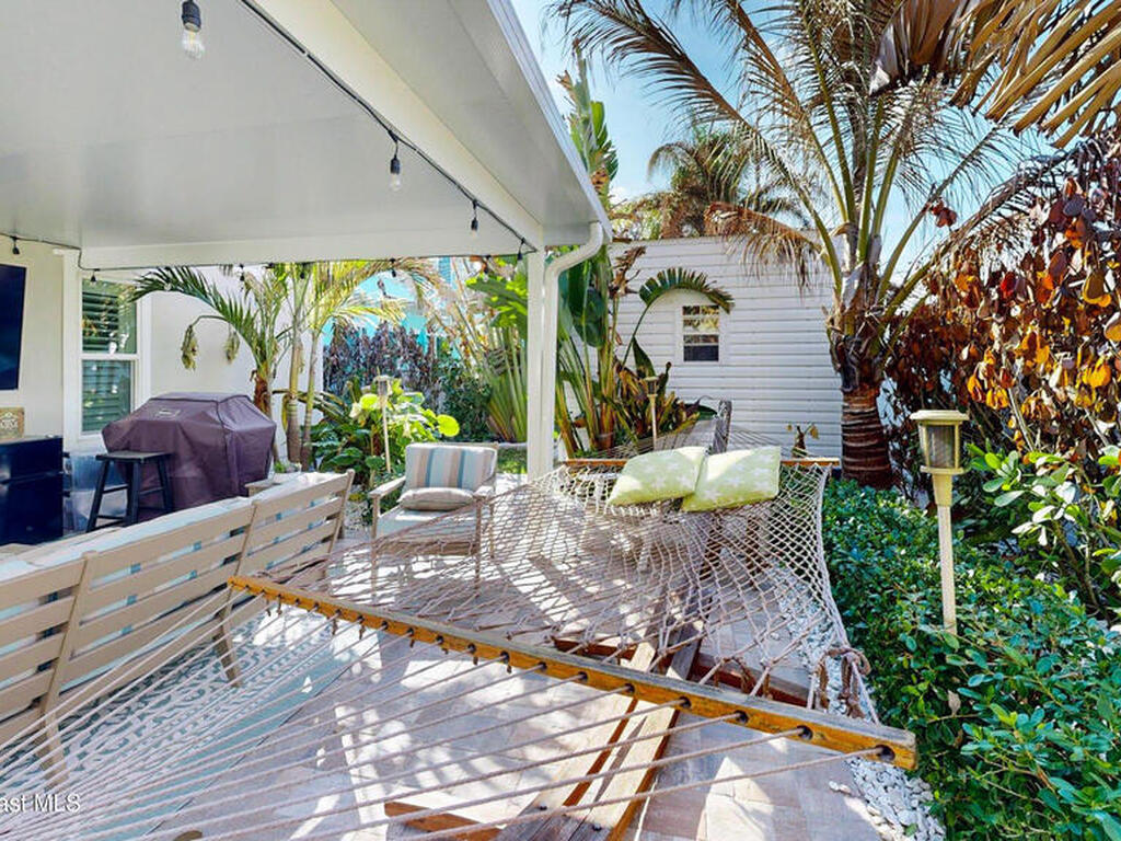 Beach Retreat!Experience this completely transformed coastal sanctuary showcasing luxury upgrades throughout and designed for effortless seaside living on Florida's renowned Space Coast.This move-in-ready residence has been extensively remodeled with high-end finishes, modern systems, and elevated designer details inside and out.Fully remodeled interior (2024) featuring wall-to-wall and ceiling paint, new double pane windows, new exterior finish with sheathing, stucco, and trim, LVP flooring throughout, custom shiplap feature walls, and a stunning custom entertainment wall with recessed TV cutout and flush-mounted electric fireplace, plus new interior doors, hardware, trim, barn doors, and designer lighting.The chef-inspired kitchen shines with refinished solid wood cabinetry with new pulls, sparkle white counters, stylish backsplash tile, remodeled island, new sink and faucet, full appliance package, and elegant pendant lighting.Bathrooms have been fully remodeled with new vanities, showers, tub, tile, mirro