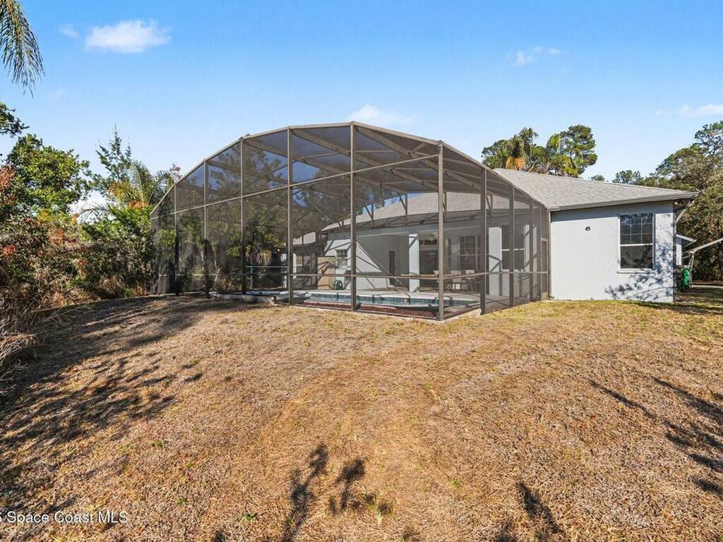 ** Accepting Backup Offers** Beautifully maintained 4 bedroom, 3 bath pool home on a private, wooded 1-acre lot in desirable South Titusville. The kitchen opens seamlessly to the living areas and dining room, creating a spacious layout ideal for entertaining and everyday living. A striking two-sided wood-burning fireplace separates the living room and family room, adding warmth and character to both spaces. The generous primary suite and well-sized secondary bedrooms offer comfort and flexibility. Step outside to enjoy the screened pool area, resurfaced with new tile in 2019, surrounded by mature trees for added privacy. The extra-wide garage and outside shed provide ample room for vehicles, storage, or hobbies. Major updates include roof (2017), A/C (2019), gutters (2025), water heater (2026), and water softener (2026). A rare opportunity to own a home with an acre of land, privacy, no HOA and a pool. Just a short drive to KSC, I-95, OIA and all of Orlando's attractions.