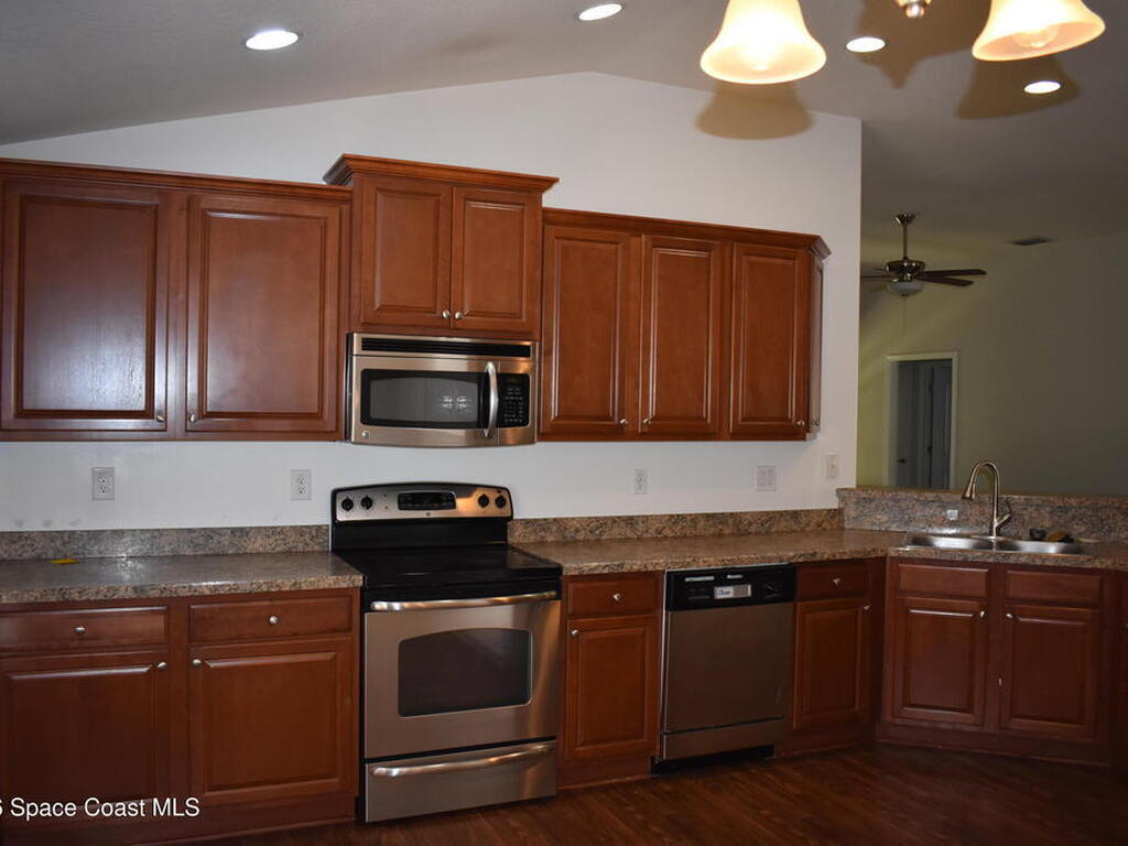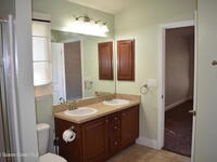 Spacious 4-bedroom, 2-bath home located in a gated community in a highly desirable Melbourne area with excellent schools and just 15 minutes from the beach. This well-maintained home offers a large eat-in kitchen with stainless steel appliances and plenty of counter space, ideal for family meals and gatherings. The open living and dining areas provide a comfortable space for relaxing and entertaining. The primary suite features dual sinks, a separate shower, and a soaking tub. The fourth bedroom may also be used as a den, playroom, or home office. New carpet has been installed throughout.Enjoy peaceful evenings on the back porch overlooking a wooded area next to a preserve, offering privacy and a natural setting. The home is conveniently located just steps from the community pool--perfect for family fun. Lawn service is included in the rent. Tenant is responsible for flower beds. Washer and dryer are not warranted.Owner will not consider pets.