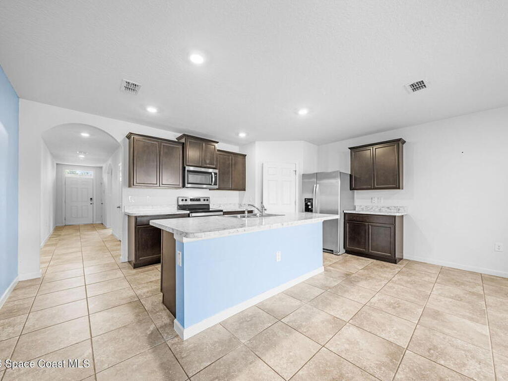 Welcome to 549 Lafayette St SW, Palm Bay, FL 32908 - a stylish 4-bedroom, 2-bathroom solar-powered home built in 2021, offering 2, 395 total sqft and 1, 828 living sq. ft. of modern space. The open floor plan includes a spacious kitchen with stainless steel appliances and a large island, perfect for entertaining. The master suite features designer tile flooring, a walk-in closet, and a luxurious en-suite bathroom, with another bedroom also boasting designer tile. The remaining bedrooms feature carpet. Builder-grade tile flows throughout the rest of the home. The fully fenced backyard includes a chicken coop, making it ideal for outdoor activities or single-family backyard homestead farming. Additional features include an in-unit washer and dryer. Located near schools, parks, major employers, FIT, and shopping, this move-in-ready gem is easy to show.