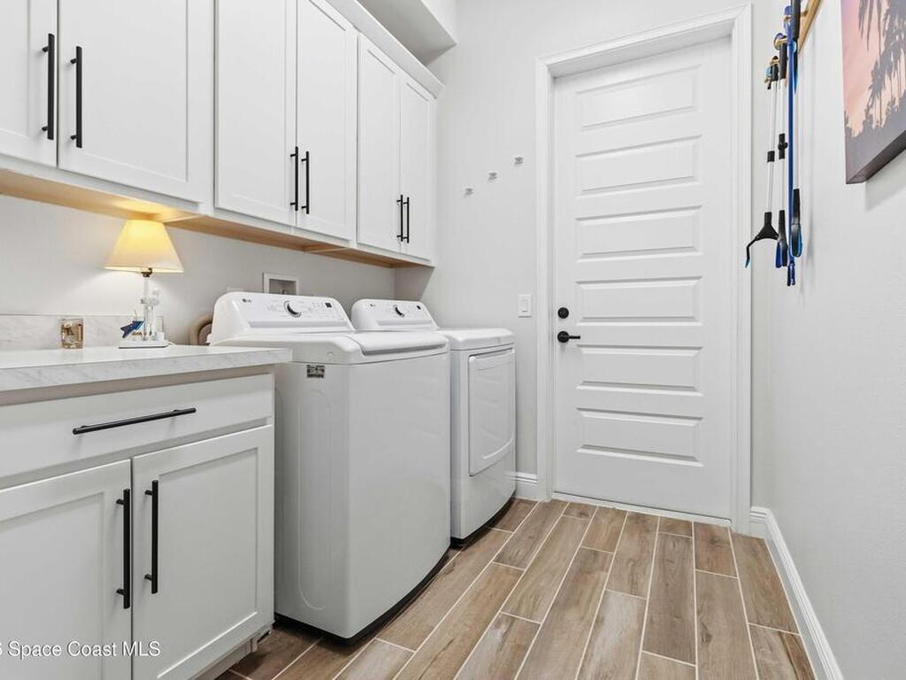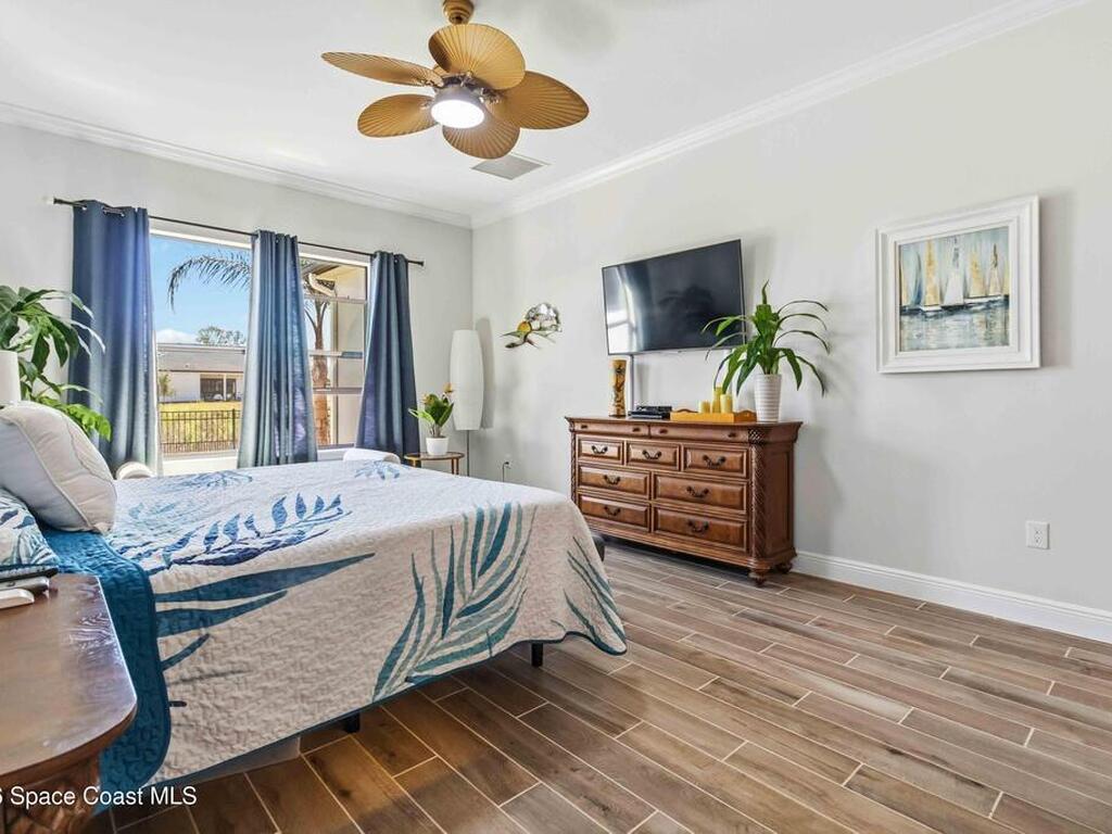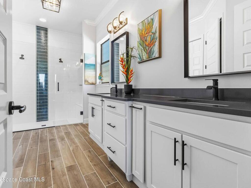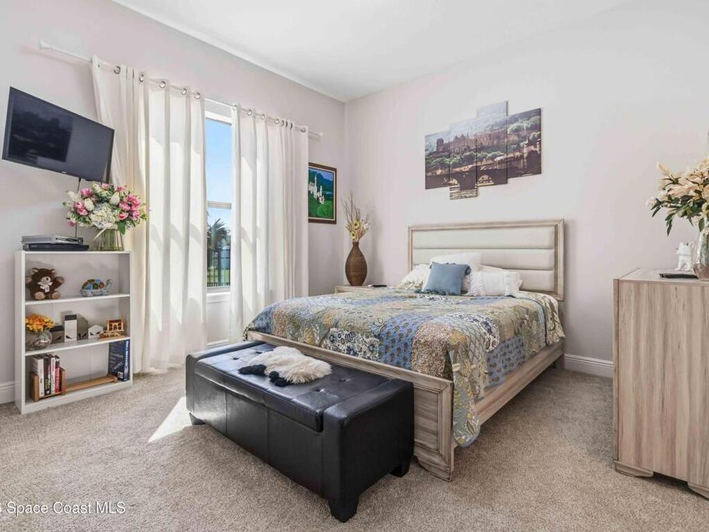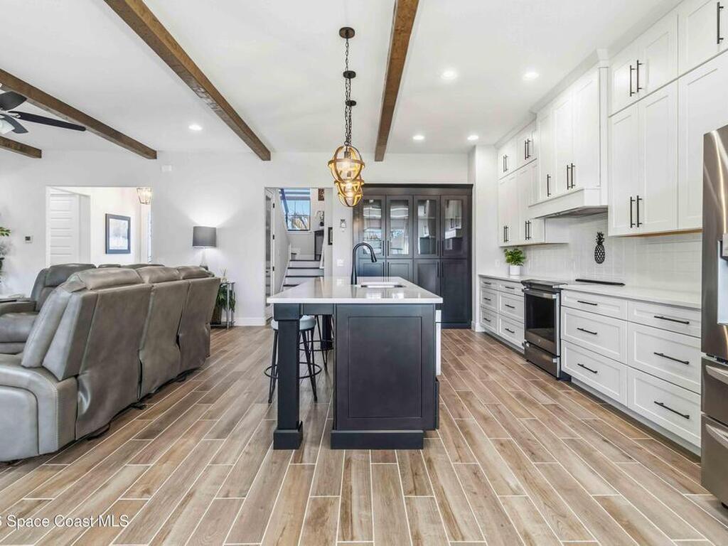 Why wait to build? Like-new 4 bed/3.5 bath home built in 2022 w/3-car garage & thoughtful, flexible layout. The quartz kitchen is the heart of the home & boasts stainless appliances, tiled backsplash, large island, spacious walk-in pantry & opens to a gorgeous great room w/tall ceilings & wood beams. Enjoy relaxing or entertaining from your screened paver patio overlooking the fully fenced backyard. Downstairs, you'll find the owner's suite, which offers a large walk-in closet & spa-style private bath w/tiled walk-in shower w/dual shower heads & double sinks. Bedrooms 2 & 3 share a Jack-and-Jill bath. Also downstairs, is a half bath for guests. Upstairs, features a large loft offering the perfect flex space, plus a 4th bedroom, full bath & large storage closet. Indoor laundry room w/ample storage. Irrigation on well. 2nd bay garage is air conditioned. Just 20 min to Kennedy Space Center, Blue Origin & SpaceX, 30 min to beach & 40 min to Orlando airport & area attractions!