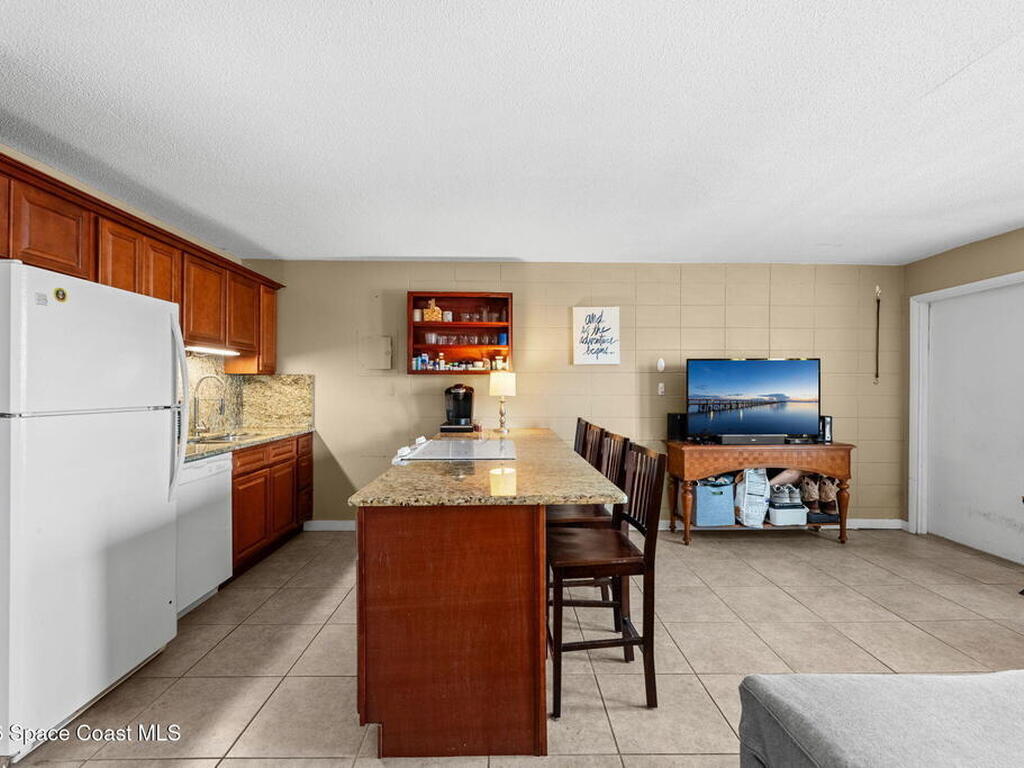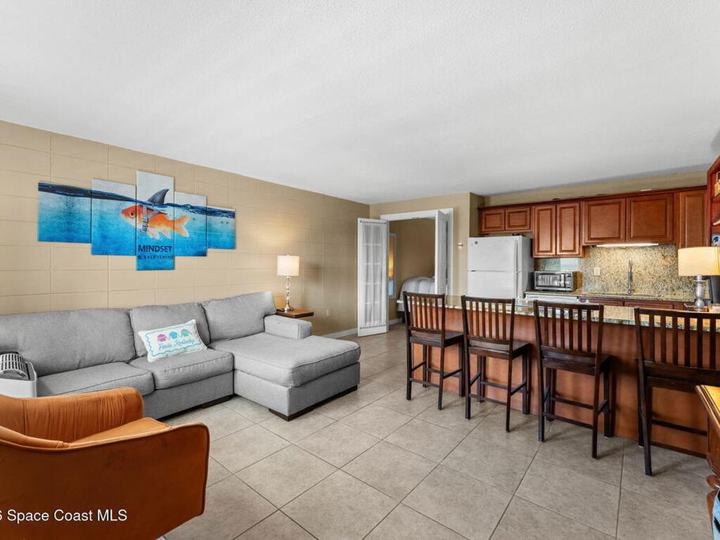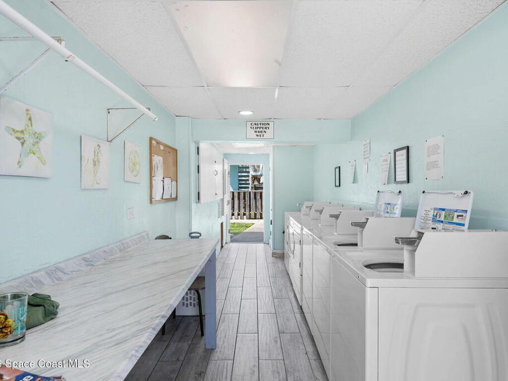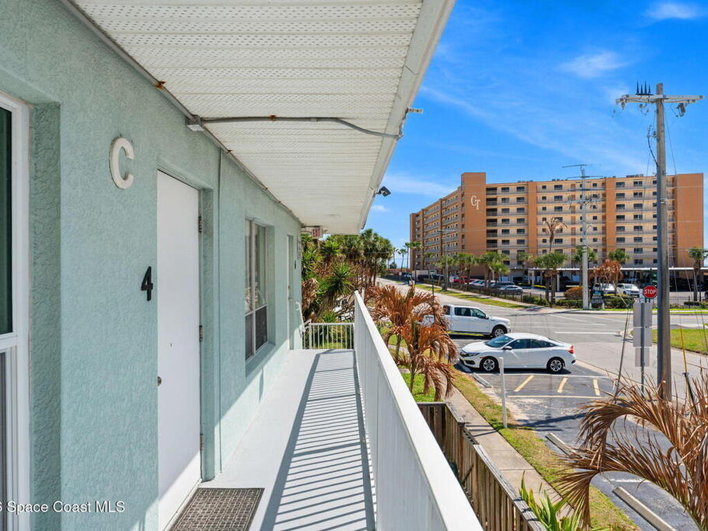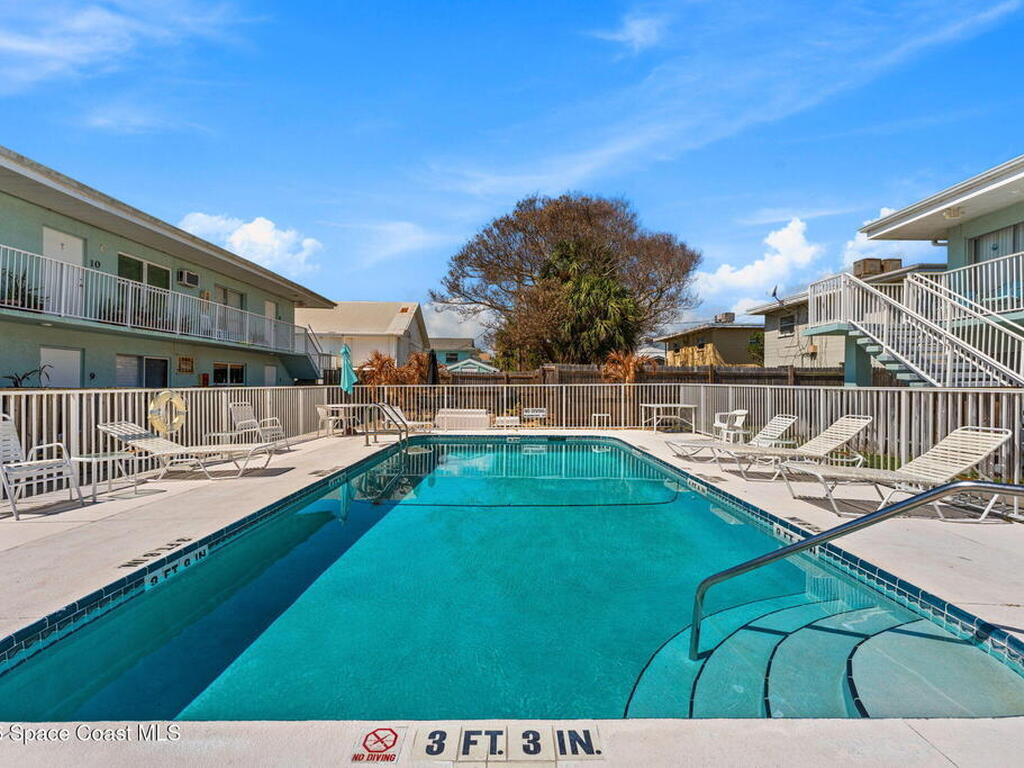 Being THIS close to the beach is RARE-- especially at this price.Move-in ready condo tucked away on a quiet side street less than a block from peaceful, uncrowded beaches--yet just minutes from the dining, entertainment, and waterfront energy of Cocoa Beach and Port Canaveral. Inside, you'll find an open layout with no carpet, granite countertops and backsplash, a kitchen island with seating for four, newer white appliances, and warm wood cabinetry. 2019 windows bring in natural light while adding efficiency. The bathroom is tastefully updated with a beautifully tiled shower. The well-maintained community offers a large pool, on-site laundry, and dedicated bike storage, making beach living easy and effortless. Whether you're searching for a primary residence, weekend escape, or investment property, this one checks all the boxes.