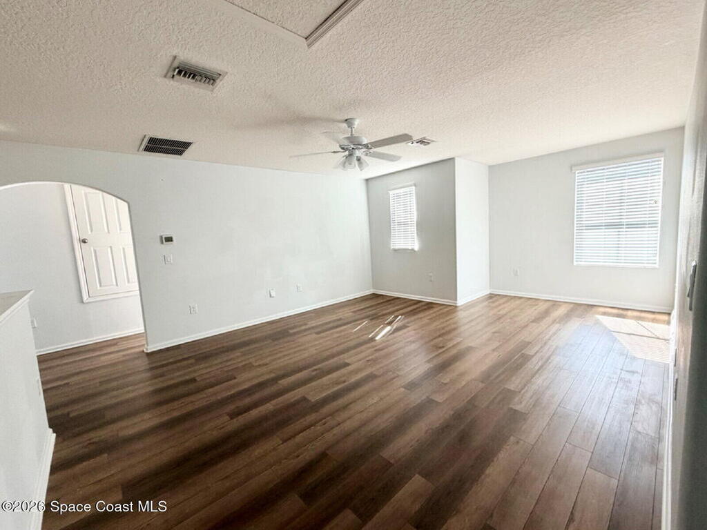 This 5 bedroom 2.5 bath home in the lovely community of Sawgrass Lakes in West Melbourne has a split design and open floor plan. Master bedroom is on the first floor. The kitchen has granite countertops and a breakfast bar/island. Arched doorways and high ceilings give this home an elegant feel! Home has been updated with vinyl plank flooring for easy cleaning. Updated photos coming soon!2 car garage and a back patio add to the already great features of this home. It's also close to highways, shopping, restaurants, and other conveniences. The community boasts an 8000 sq ft Clubhouse with large community pool and playground.Don't miss this great rental home!