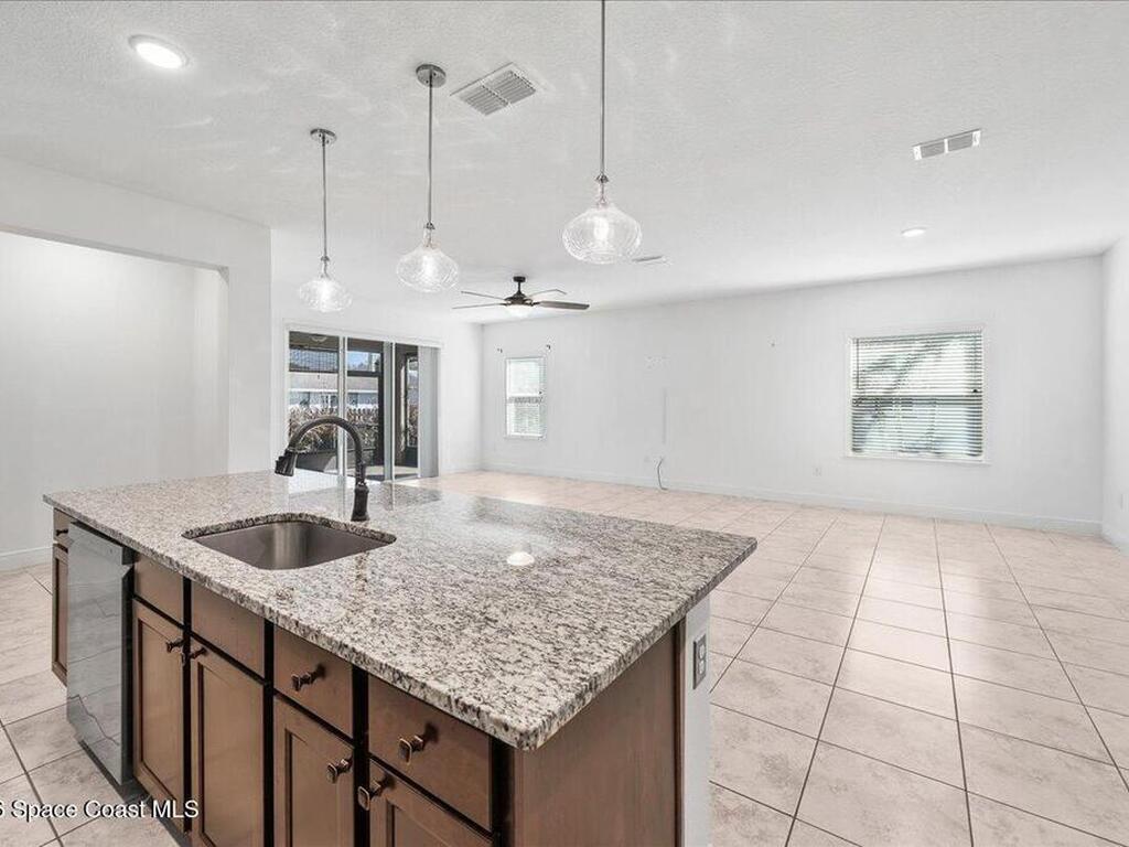 Your Dream Home Awaits! This beautifully upgraded 2019-built, 4-bed, 2-bath home with a 2-car garage is a must-see! Shows like a model and is ready for its new owners to move in! From the moment you arrive, you are greeted by the long driveway, lush tropical landscaping, elegant stone exterior, and evening landscape lighting creating an unforgettable curb appeal. Step inside to a grand double tray ceiling foyer and enjoy tile flooring throughout the entire home--no carpet anywhere. The heart of the home is the show-stopping kitchen, featuring 42'' upper cabinetry, a beautiful marble backsplash, newer SS appliances, and an enormous granite island that overlooks the spacious family room--perfect for entertaining or everyday living. Both bathrooms have been upgraded with granite countertops and enhanced shower finishes, while the private owner's suite offers generous space and comfort. Relax year-round in the tiled Florida room with shades, overlooking a fully fenced in backyard,