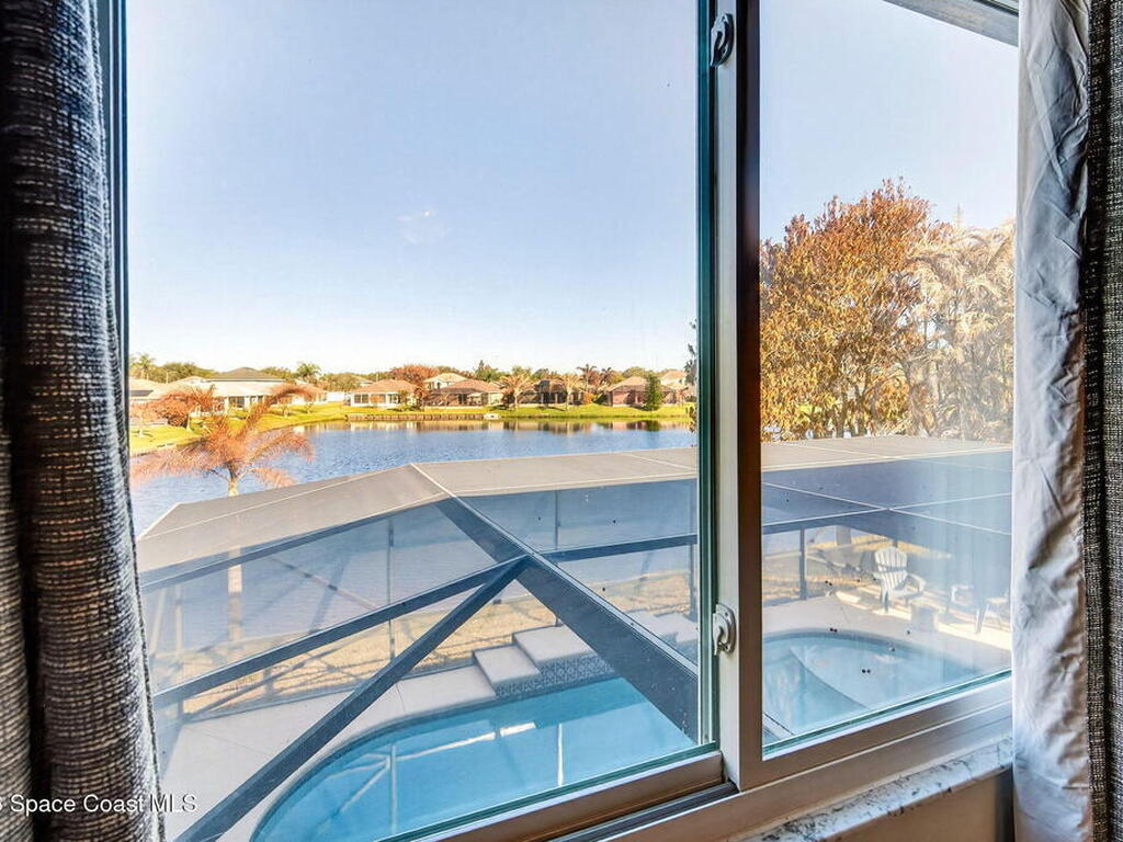 Lakefront Paradise with Pool in Ashwood Lake Community ! This impressive 4-bedroom, with a bonus room & 3-bathroom home features over 2250 square feet of living space in the Viera/Rockledge area, complete with a 2-car garage and screened patio, totaling over 2700 square feet. The entrance foyer boasts high ceilings, leading to spacious separate living and family rooms. The island kitchen seamlessly connects to the family room and screened back porch, overlooking the serene lake. Key features includes PAID SOLAR PANELS $47, 000, IMPACT WINDOWS/ 2020 has lifetime warranty , SALT WATER POOL/ 2022 , ROOF/2019, newer fresh exterior painting, WATER HEATER/2021, AC/2018 & TESLA charger in the garage. The master suite offers a relaxing garden tub and separate shower. Ideally situated near beaches, Cape Canaveral, within 5 minutes of The Avenues shopping, and under an hour from two international airports and Orlando attractions. This extraordinary property will sell quickly, don't miss