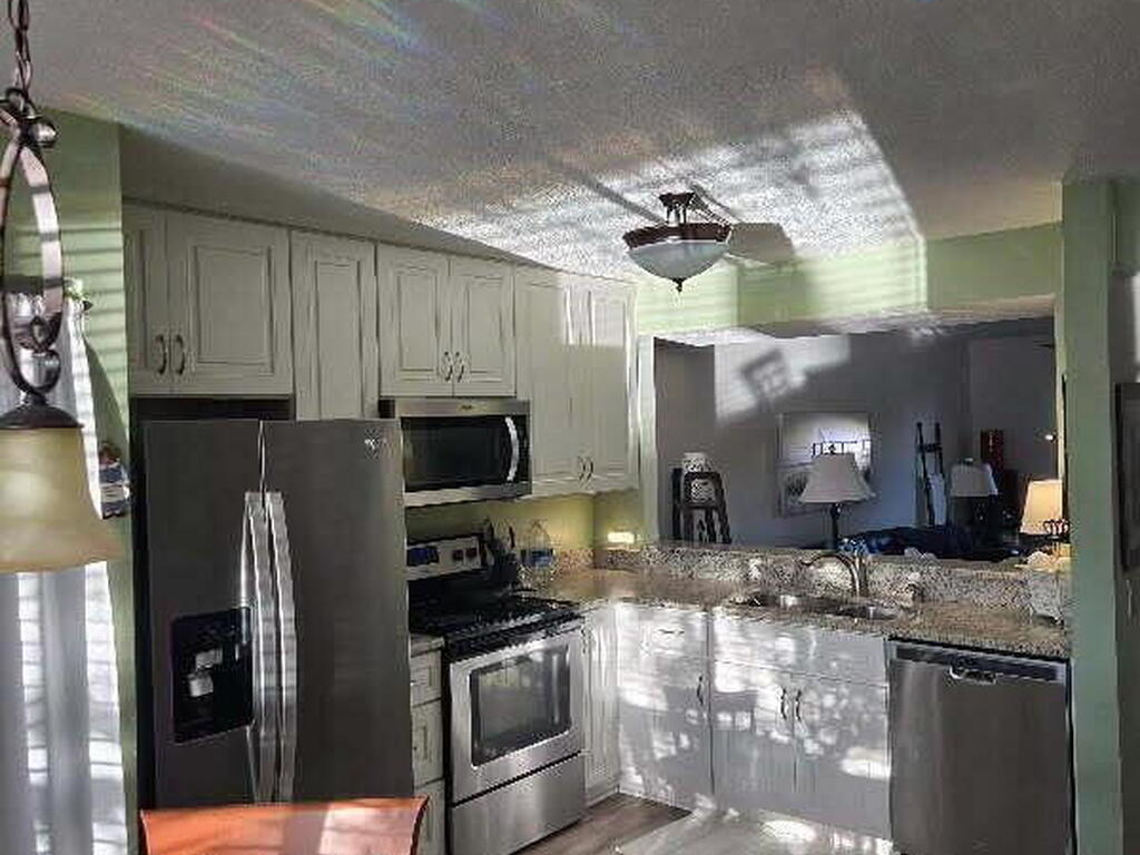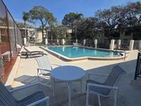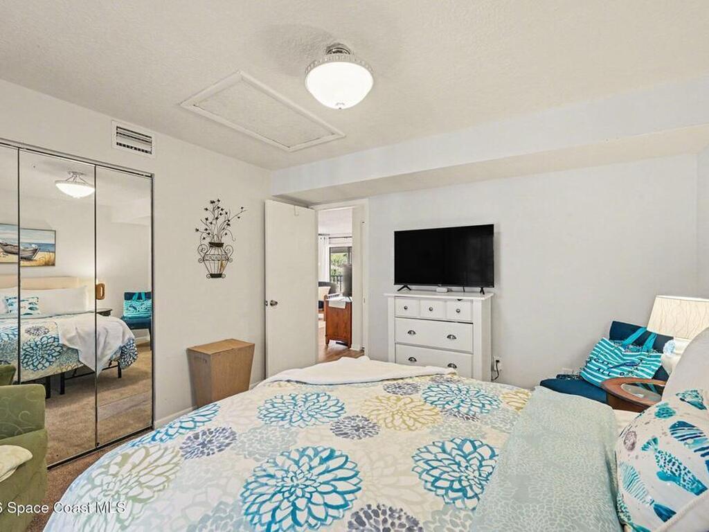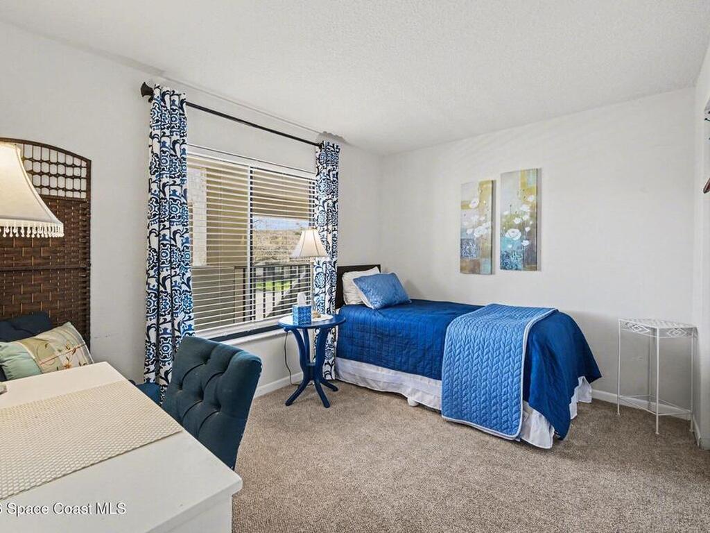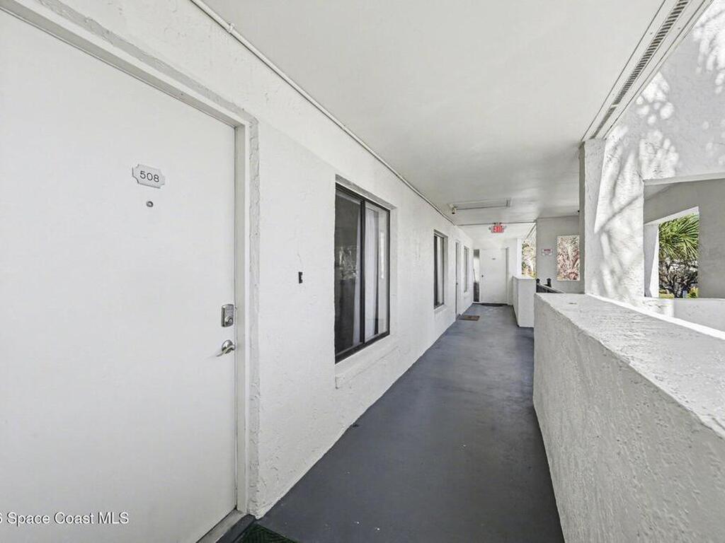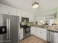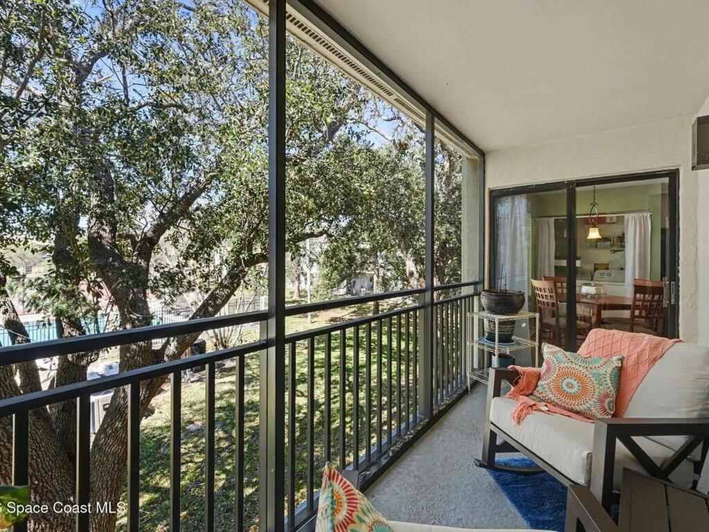 WOW! Welcome to the gem you have been waiting for to enjoy the best of coastal living. This unit has been nicely updated with newer waterproof vinyl plank flooring, HVAC & hot water heater. The large kitchen has updated cabinets, granite countertops and all Whirlpool stainless steel appliances. Private laundry utility inside the unit with a new door to be installed. Both bedrooms have brand new quality neutral carpet. The master bedroom also opens to the tropical private balcony which feels like a retreat and overlooks the pool with sounds of squirrel chatter in the trees. Amazing sunsets shine prisms on the walls thru the glass. Located on the SPACE COAST with endless choices of outdoor activities. Condo is small pet friendly and boasts a secured sparkling heated pool , hot tub and tennis / pickle ball courts. Located on a dead-end street with low traffic. Area has Kennedy Space Center, Space X, Blue Origin, Space Force Station, Cruises , parks, rivers, and beaches await!