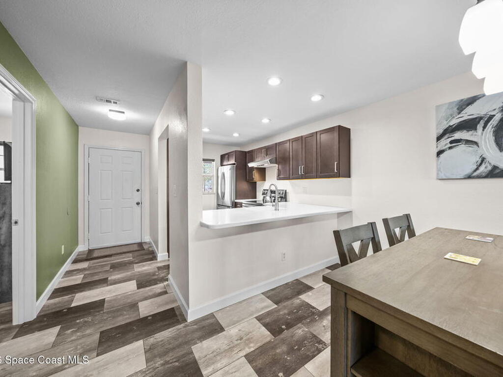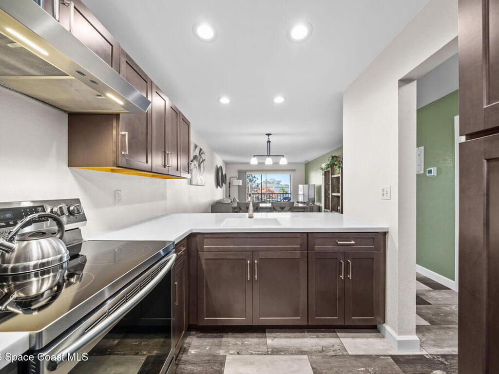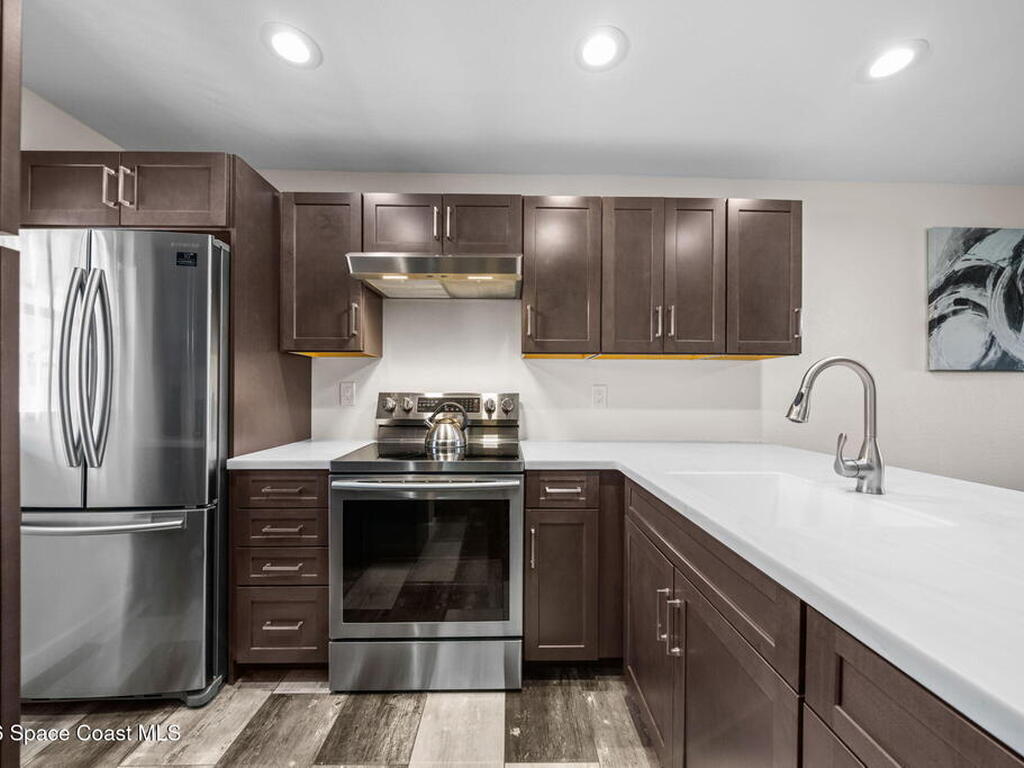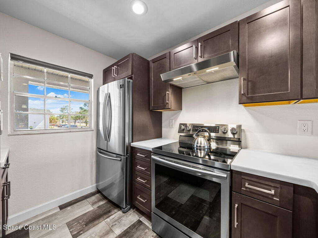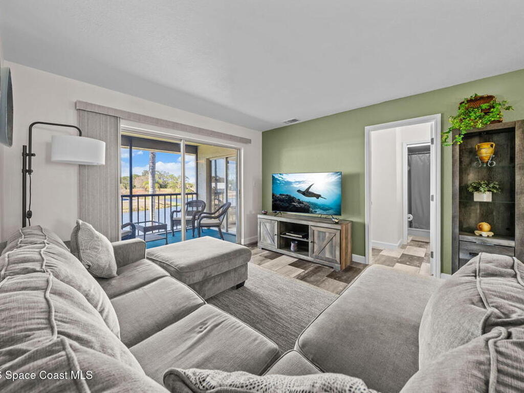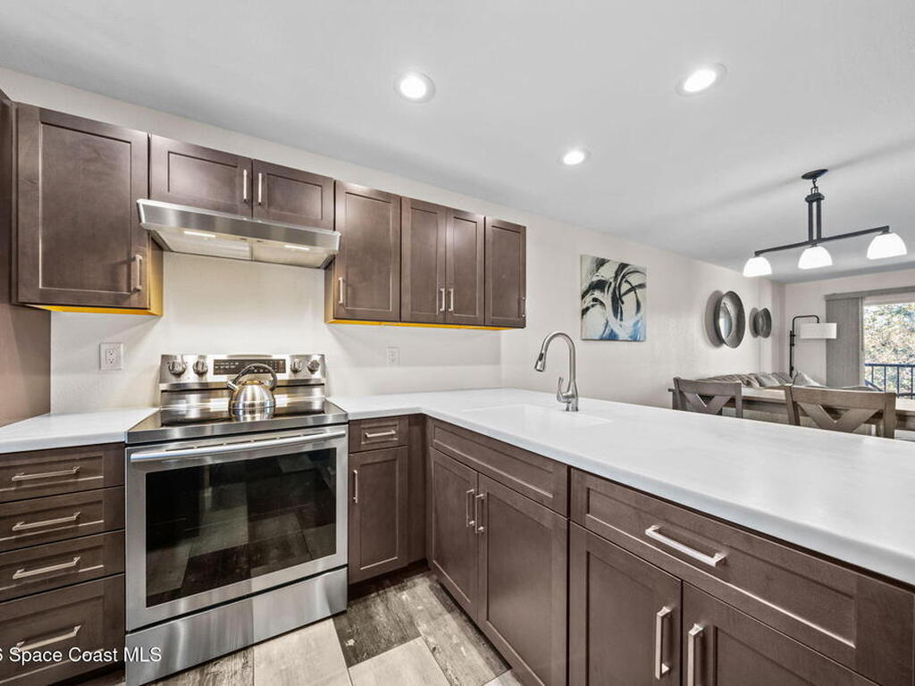 Welcome to 1900 Knox McRae Drive, Unit 210H, in Titusville, Florida--immaculate maintained second-floor condo offering comfort, style, and convenience. This freshly painted 2-bedroom, 2-bathroom home features a desirable open floor plan with beautiful vinyl plank flooring throughout, creating a modern feel.The remodeled kitchen is a standout, showcasing upgraded cabinetry, corrian countertops, a breakfast bar, and an island design--perfect for both everyday living and entertaining. New stainless steel appliances Home also features updated doors, fixtures, and bathroom vanities that add a fresh, contemporary touch throughout the home.Step outside to the screened back balcony, which includes additional storage and overlooks a peaceful pond--an ideal spot to relax and unwind. The AC system is approximately 6 years old. The HOA fee of $400 per month includes water, trash, and cable for added convenience and value. Ideally located in the heart of Titusville surrounded by everything.