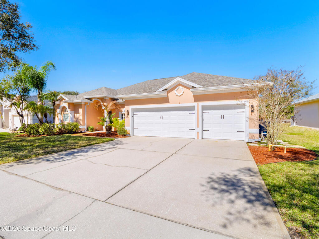 New roof ('25), freshly painted exterior ('23), digital sprinkler system & pump ('23), new screen enclosure ('25), & HVAC ('25), HWH ('25), NEW screened-in lanai & paver patio ('25). This home shows beautifully & offers one of the most functional split floor plans in the community--ideal for buyers who want formal entertaining space & everyday living zones. Soaring ceilings, neutral finishes, generous bedroom sizes w/ gorgeous Brazilian Cherry Wood floors, a massive screened lanai make this an easy ''yes'' for move-in-ready buyers. The 3-car garage is clean & oversized--perfect for storage, toys or workshop space. A TRUE split floor plan w/ formal lvng & dining cozied up to the primary bdrm on the west- this is the showcase of your home to show how grand life can be. 3 bedrms & 2 bathrms rest on the east wing of the home with an informal living & dining room attached. Sellers are motivated, cooperative w/ showings & open to strong, clean offers. Easy to show w/ quick response time!