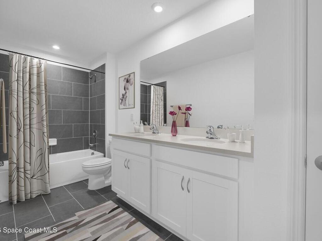 With almost 3, 000 square feet, The Chester 2-story single-family home is a spacious and welcoming design for a variety of lifestyles. The entry from both the front and 2-car garage flow directly into the open kitchen where everyone can gather to prepare meals and relax all together. Windows along the exterior wall lead to the outdoor patio and provide spectacular morning and evening light throughout the main living area. Tucked away in the front of the house are spaces for work and relaxation, both upstairs and down. An office on the first floor and a loft area above provides the extra room everyone needs. The second floor has a separate hallway with three bedrooms and a shared guest bathroom with a double vanity to help make mornings more efficient and the walk-in laundry room is located right around the corner for convenience. A large primary suite provides everything needed for privacy and comfort, including a double vanity and two walk-in closets.*Photos are from a similar home.
