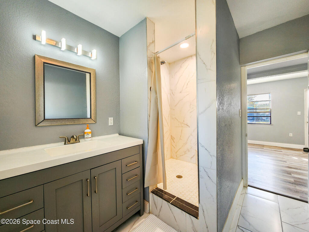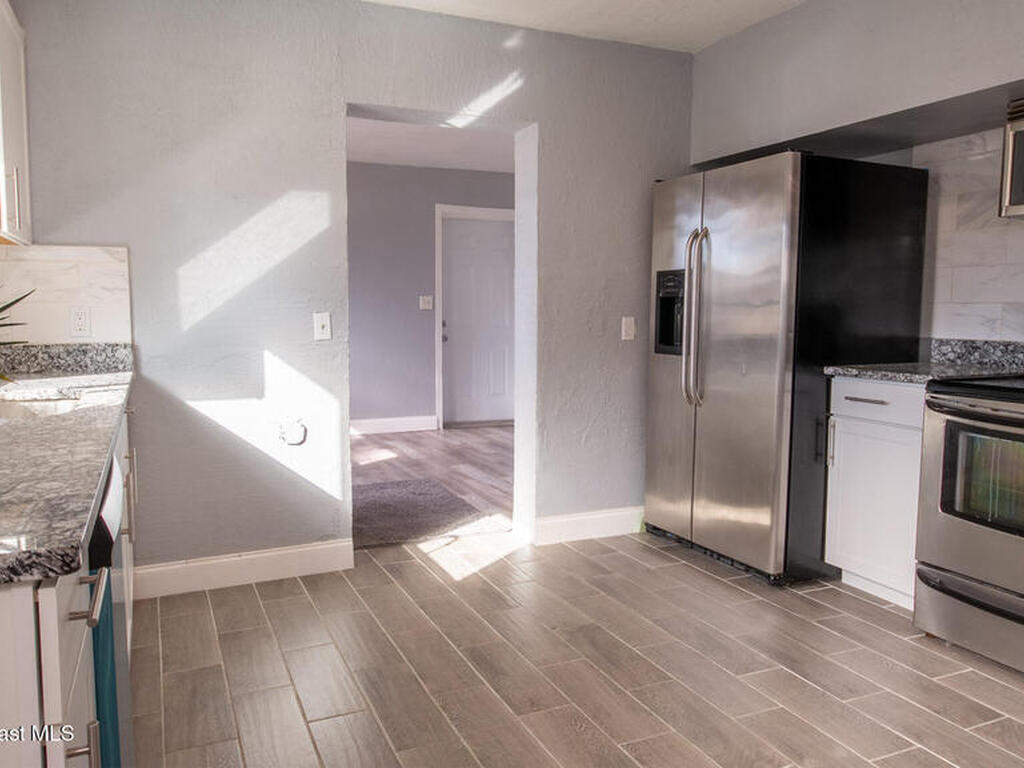 Bright, updated one-story home at 614 S Georgia Ave in Cocoa. An open living area with soft gray walls, durable vinyl plank flooring, and abundant natural light sets the stage for daily living and entertaining. The kitchen shines with granite countertops, stainless steel appliances, and generous cabinet space. A modern bathroom features a stylish vanity and a walk-in shower with marble-look tile. The home offers well-lit bedrooms and convenient storage options. Outside, a covered carport and a roomy yard shaded by mature pines add curb appeal and outdoor living possibilities. Just minutes from parks, schools, shopping, and the Space Coast's beaches, this Cocoa charmer blends comfort and convenience. Schedule your tour today.
