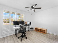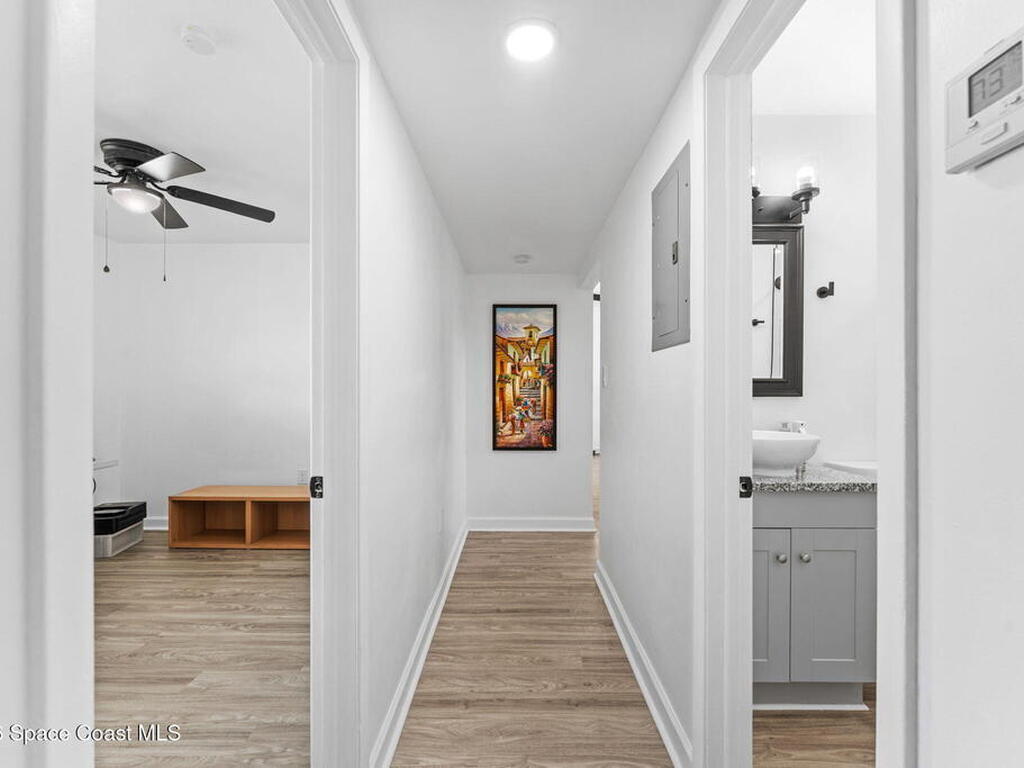 Corner lot confidence meets smart, stylish living. This 3-bedroom, 2-bath beauty delivers the updates buyers crave and the extras they didn't know they needed. Sleek vinyl flooring sets the tone, while plantation shutters add timeless character. The flex space? Home office, gym, playroom - you decide. Entertain with ease thanks to a dedicated wine cooler and seamless flow to the screened back porch - perfect for breezy Florida evenings. A single-car garage, manual storm shutters, smart doorbell, smart thermostat, and full security system bring peace of mind and modern convenience together under one roof. Located near top-rated schools, shopping, and dining, this home checks the practical boxes and the lifestyle ones too. Clean. Sharp. Move-in ready!