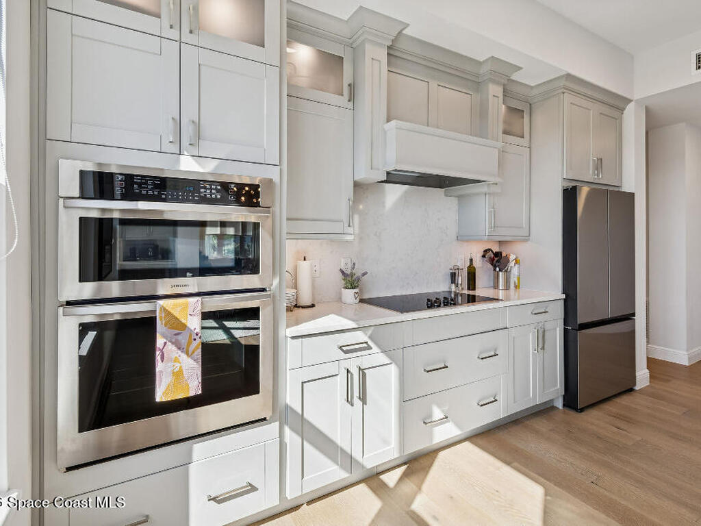 Experience luxury coastal living in this stunning 3-bedroom, 2-bath ocean-view residence in the luxurious Palm Beach condominium in Indialantic. Built in 2022, this beautifully appointed third-floor condo offers 1, 880 square feet of thoughtfully designed living space with abundant natural light from windows on three sides.The open-concept layout flows seamlessly to a private balcony where you can enjoy ocean views and coastal breezes. High-end finishes include quartz countertops, built-in range and microwave, upgraded lighting, custom closet systems, and full hurricane-impact windows plus hurricane shutters on the sliding doors for peace of mind.The spacious primary suite provides comfort and privacy, while two additional bedrooms offer flexibility for guests or a home office. This residence also includes a private garage space with electric car charger hookup and a large, locked storage area in the garage -- a rare and valuable feature.