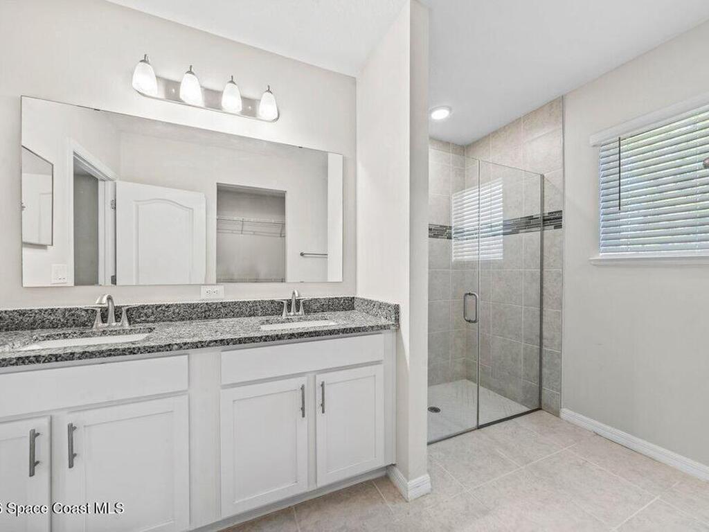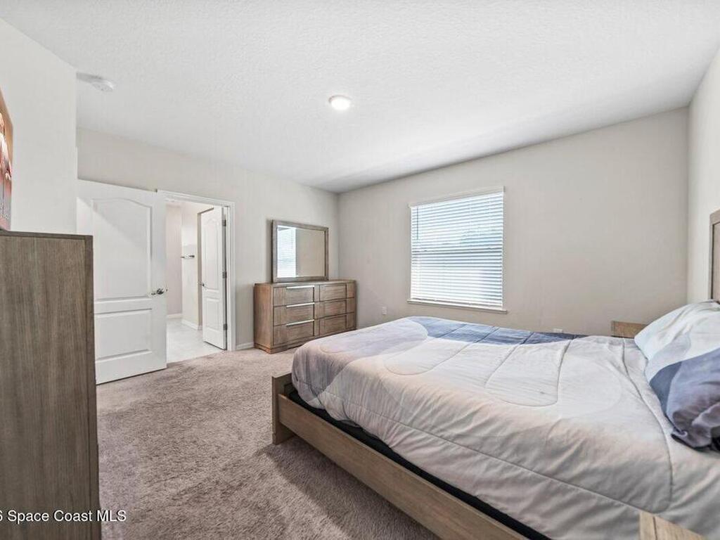 Step into this almost-new 4-bedroom, 2-bath home built in 2022, where modern comfort meets thoughtful design. The spacious open floor plan flows effortlessly between the bright breakfast nook, living room, and formal dining area. White cabinetry and granite countertops bring a fresh, elegant feel to the kitchen and bathrooms, complemented by tile floors in the main areas and plush carpet in the bedrooms. The kitchen is equipped with a new refrigerator, microwave, and electric range, and the home is pre-wired for ceiling fans, pendant lighting over the kitchen island, and fiber internet. With the septic system positioned in the front yard, the fully fenced backyard is wide open--ideal for a future pool. Relax year-round on the screened 10' x 20' patio, perfect for outdoor grilling. All of this just minutes from top-rated schools, Bayside Lakes, and Hammock Landings shopping and restaurants. This home is a must see!