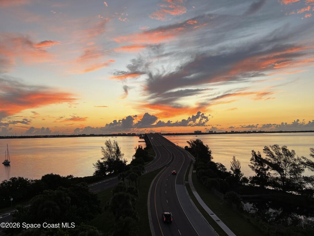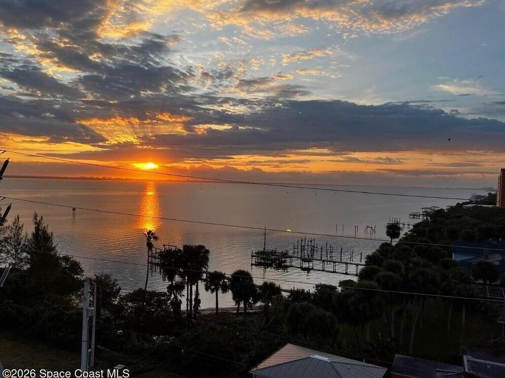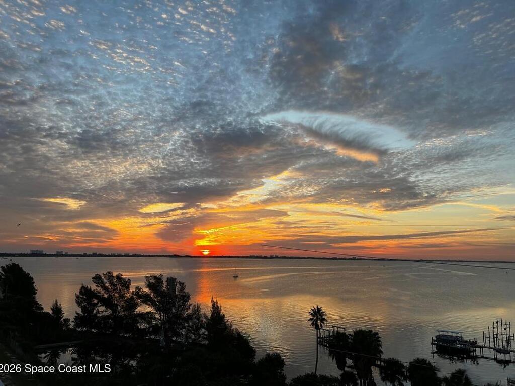 Experience panoramic river views with breathtaking sunrises & magnificent sunsets. This luxury corner unit is located on the 7th floor with three bedrooms & three bathrooms. An open floor plan & a spacious chef's kitchen. All located in a secure building with garage parking for 2 cars. Resort living with pool & fitness center. Walking distance to Downtown Eau Gallie Square Park, restaurants, shops and more!