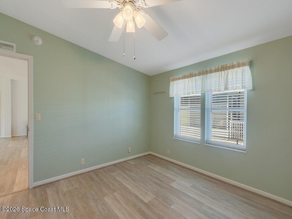 RARE OPPORTUNITY to own this gently used home on TWO LOTS. Enclosed porch can be used as a 3rd bedroom. Metal roof. New AC. New luxury vinyl plank flooring all throughout the house. No carpet. Huge walking closet in the master bedroom. Accordion shutters. Sprinkler system. Large shed. Quiet neighborhood. Barefoot Bay is a pet friendly, golf cart friendly community where you own your land. Lots of amenities.