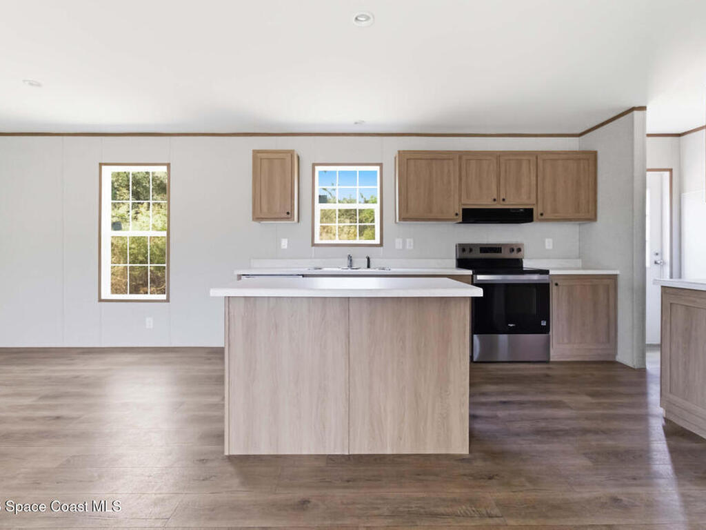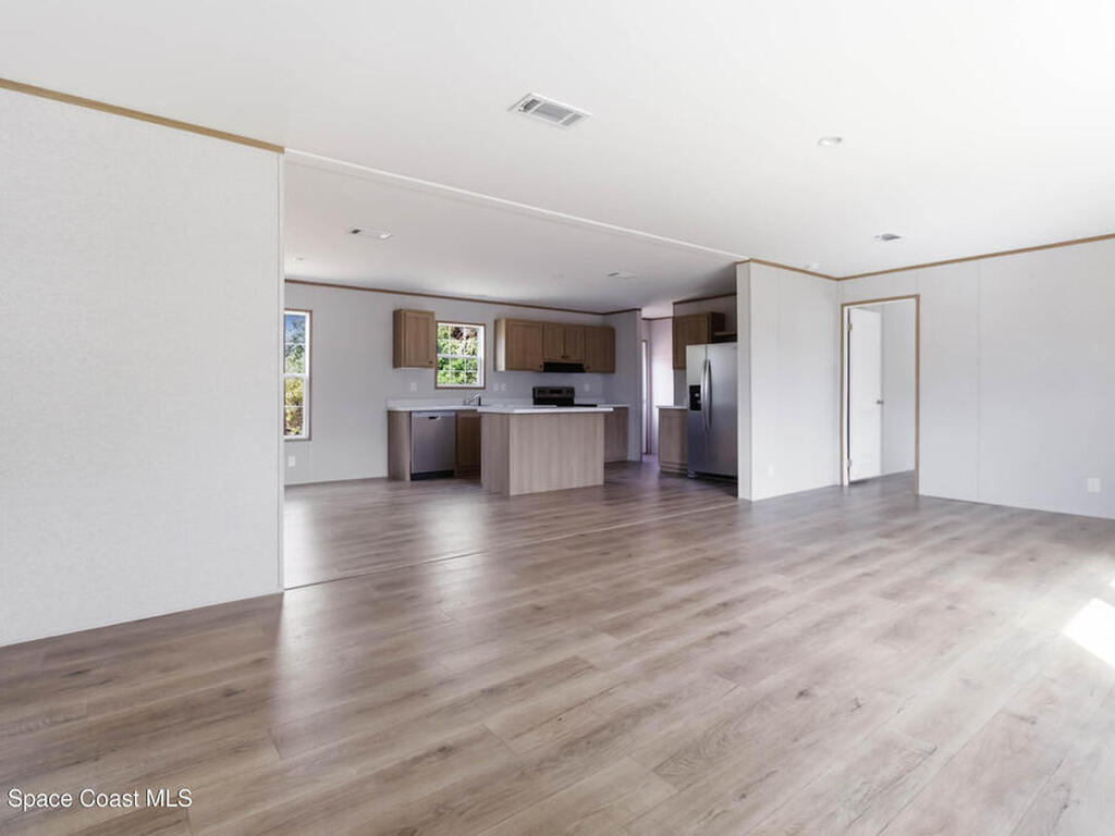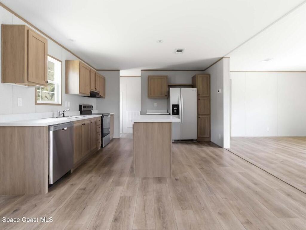Looking for a BRAND NEW HOUSE?...here it is! Brand new in 2026. Brand new AC, septic system, roof, water heater, double-pane windows, etc.. everything is BRAND NEW! Spacious house that is almost 1, 500 sqft, with 3 bedrooms, 2 bathrooms, and dining area. Large kitchen includes UPGRADED STAINLESS STEEL WHIRLPOOL APPLIANCES, an ISLAND with overhang for casual dining, QUARTZ-LOOK countertops, and LOTS OF CABINETS. The SHAKER-STYLE CABINETS have warm tones to match modern kitchen trends. Tons of NATURAL LIGHT and WOOD-LOOK FLOORING throughout. Each Bedroom has a large WALK-IN CLOSET. INDOOR LAUNDRY ROOM. Very PRIVATE back yard. No HOA and on CITY WATER. Great CENTRAL LOCATION and only minutes to the BEACH, 35 mins to Orlando Int'l Airport, and 45 mins to Orlando.