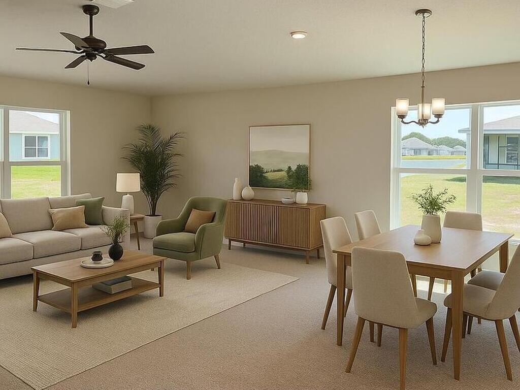 Express Move in! $1, 000 deposit! Closing costs paid with preferred lender. Welcome to this stunning 4-bedroom, 2-bath home where style and comfort combine to offer a bright, open, split layout perfect for relaxing or entertaining. The heart of the home is the kitchen, featuring sleek stainless steel appliances, ample counter space, large island, and a large pantry with double doors--perfect for culinary adventures and entertaining. The open living and dining areas extend to a spacious covered porch, inviting you to soak in Florida's sunshine and breezes. The split-bedroom layout ensures privacy, with a serene owner's suite that boasts dual vanities, separate shower and a private water closet. Pictures are samples, Colors may vary.