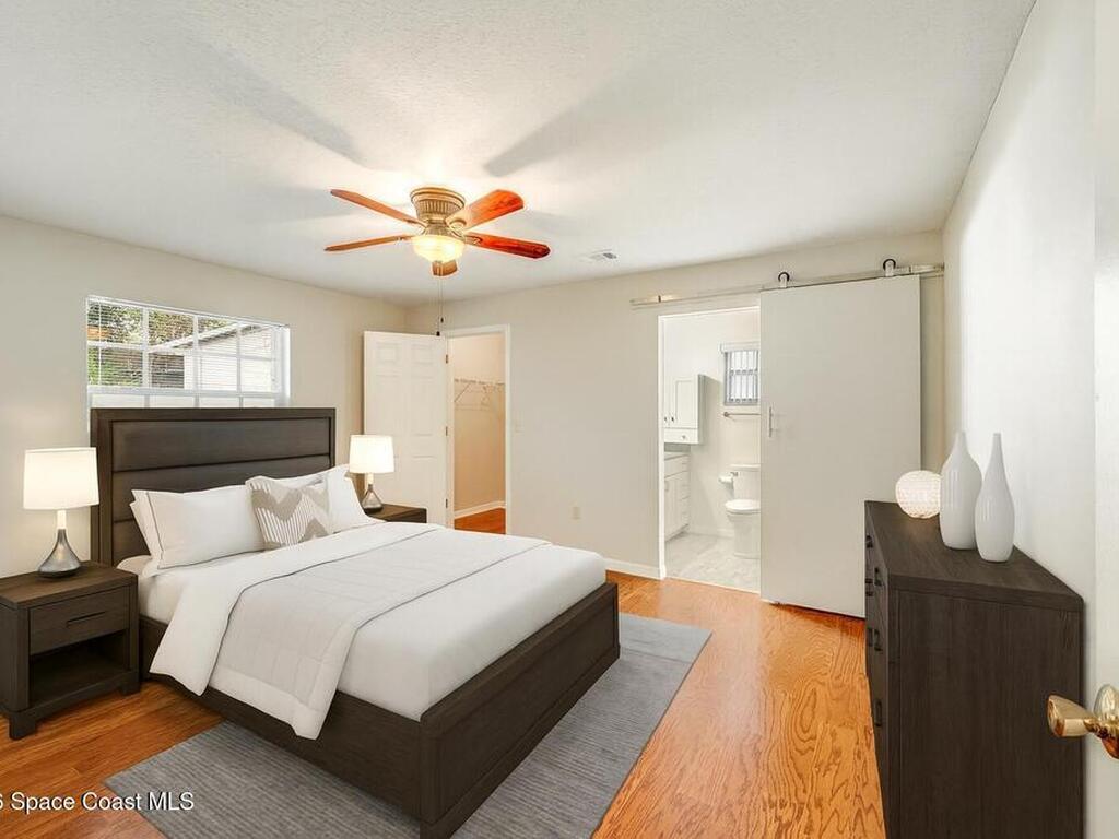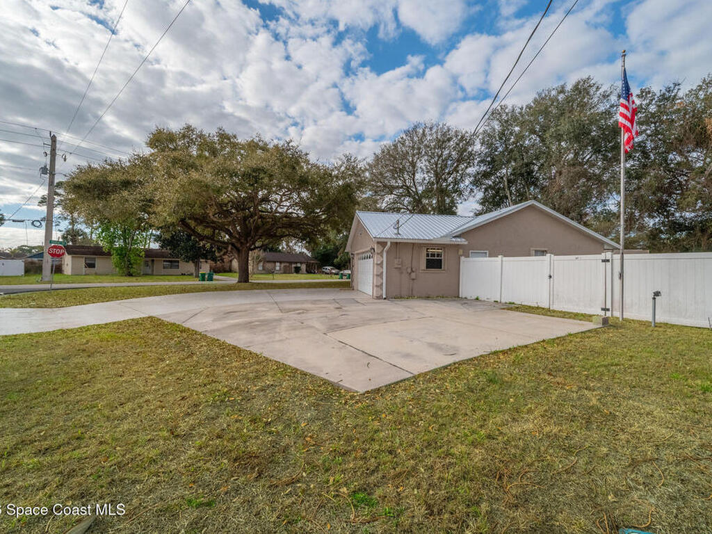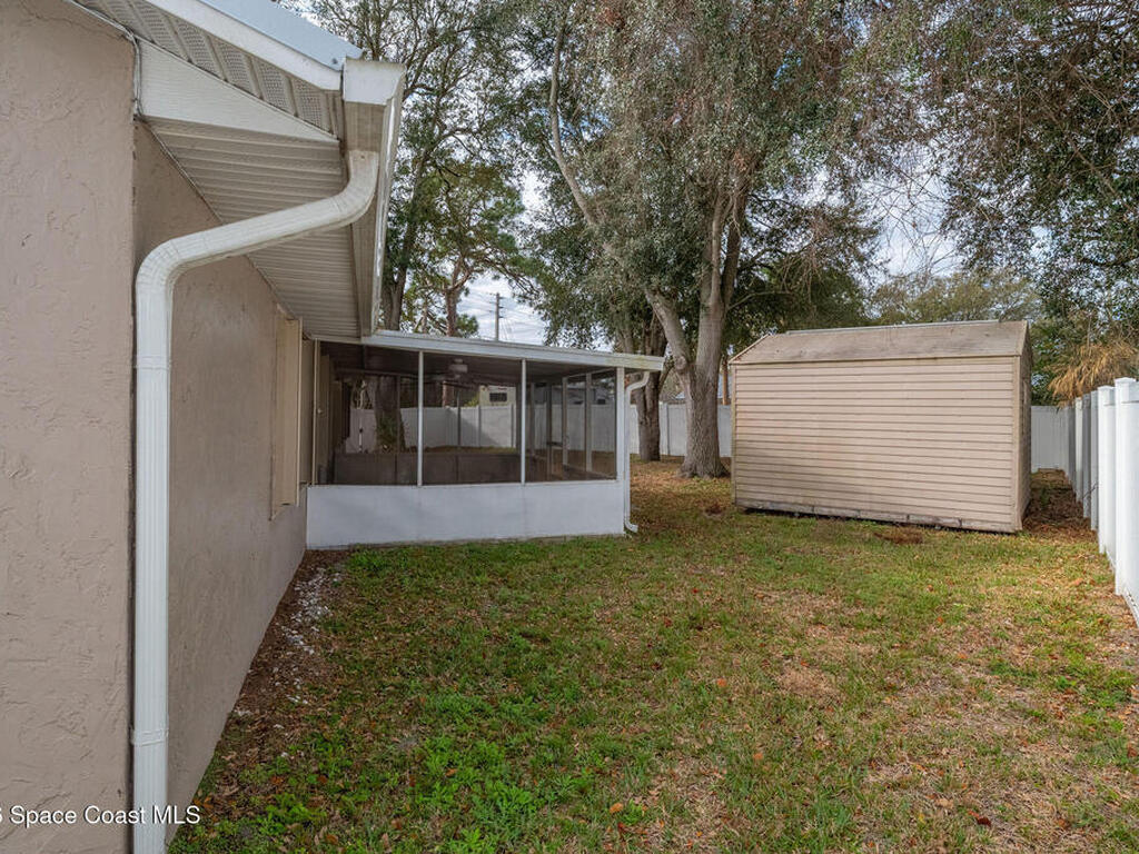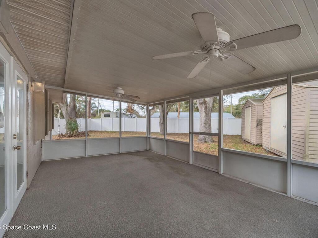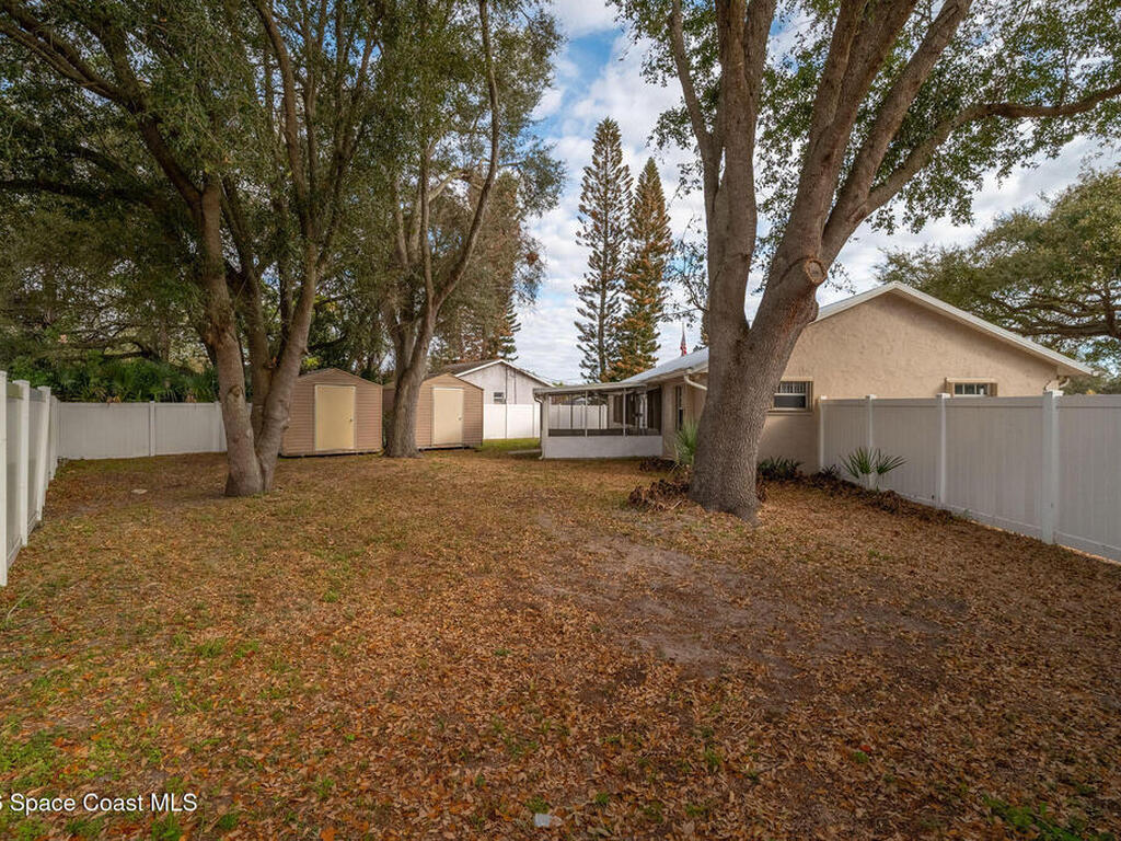 Welcome to 5601 Banos Ave, nestled in the highly sought-after community of Port St. John, just a short drive to Kennedy Space Center. This beautifully maintained 3-bedroom, 2-bath home features a desirable split-bedroom, open-concept floor plan designed for both comfort and functionality. Real hardwood floors flow through 95% of the home, adding warmth and timeless charm. Both bathrooms have been tastefully remodeled, offering modern finishes and style. Step outside to a spacious screened-in lanai--perfect for relaxing or entertaining year-round. Enjoy peace of mind with a 2023 metal roof and 2023 HVAC system, providing lasting durability and efficiency. Built-in accordion shutters surround the home for effortless storm protection. The generous backyard offers ample space for your toys, tools, or hobbies, complete with two large separate sheds for extra storage. This move-in-ready home has it all--don't miss your opportunity to make it yours. Schedule your private tour today!