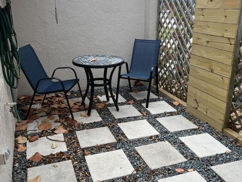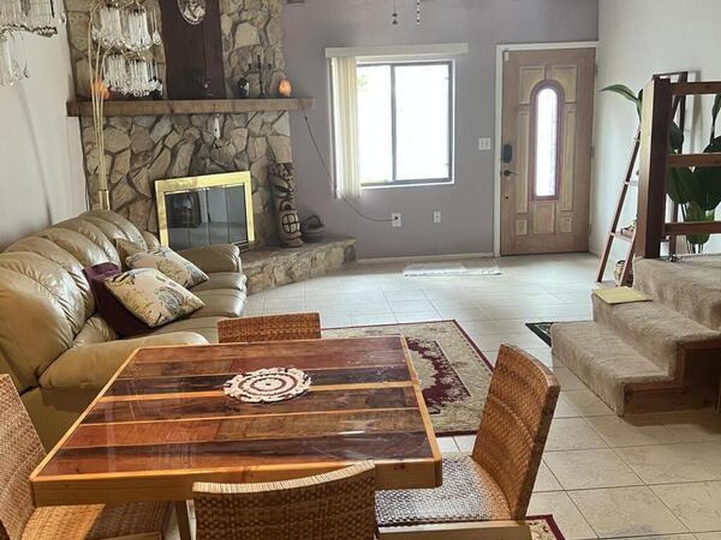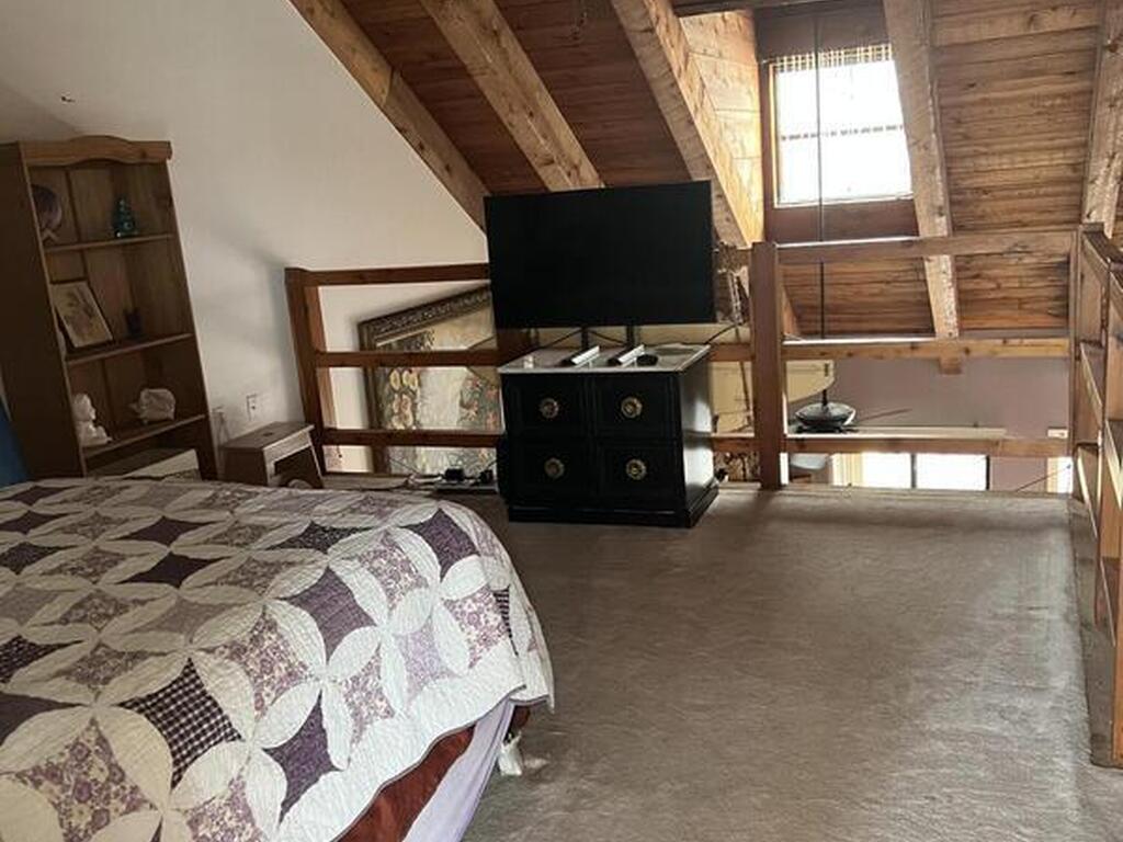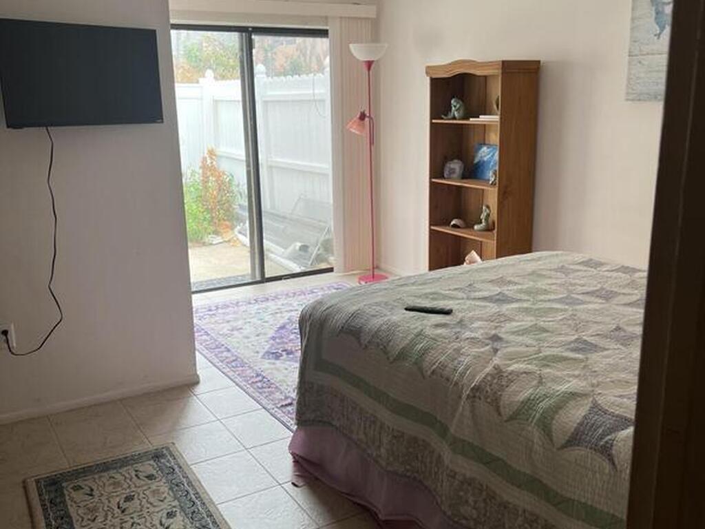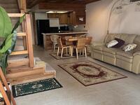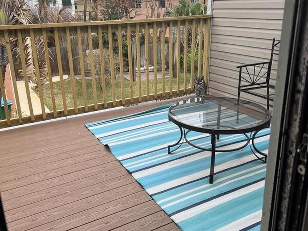 Enjoy this Furnished Townhome just steps from the Beach. Cathedral ceiling in LR with decorative stone fireplace (not operational). Loft bedroom & bath with sliders to a spacious upper deck. First Bedroom & bath also has sliders to the first floor enclosed patio. Kitchen is open to the dining & living room area.