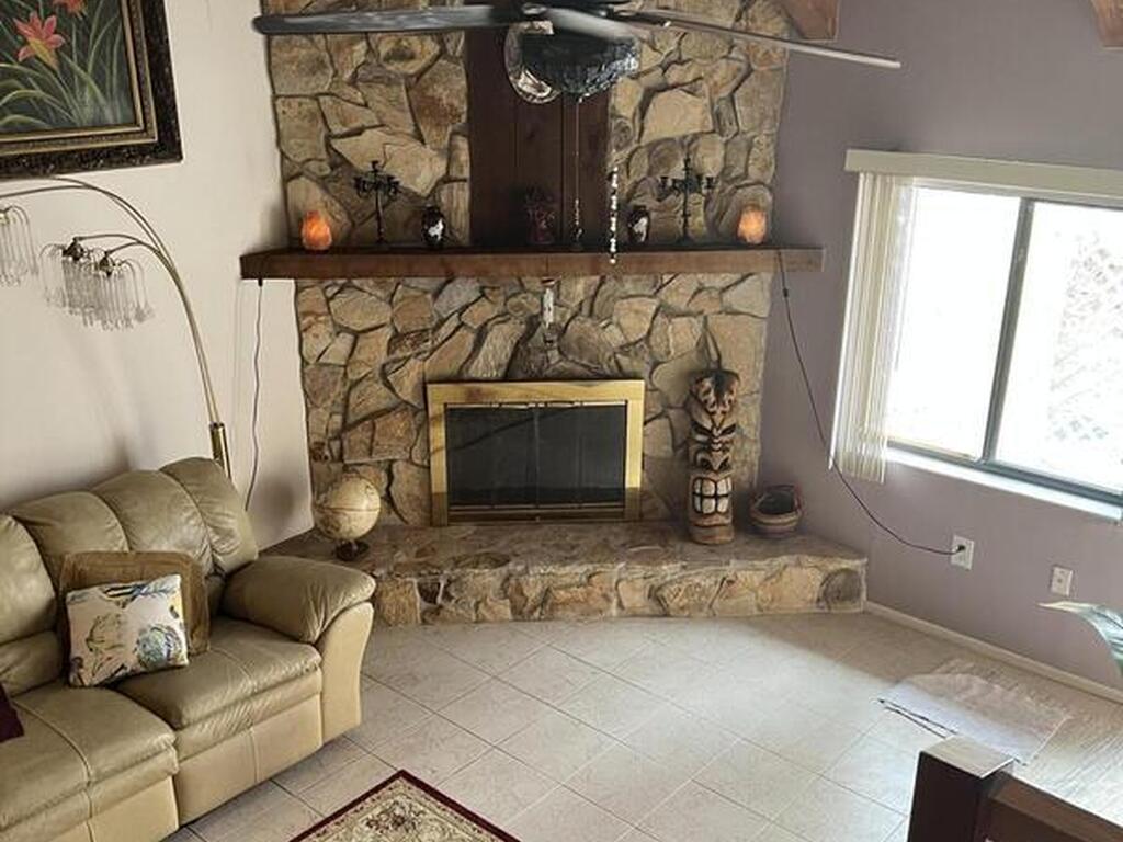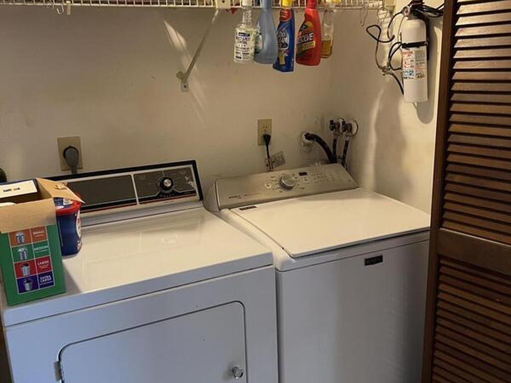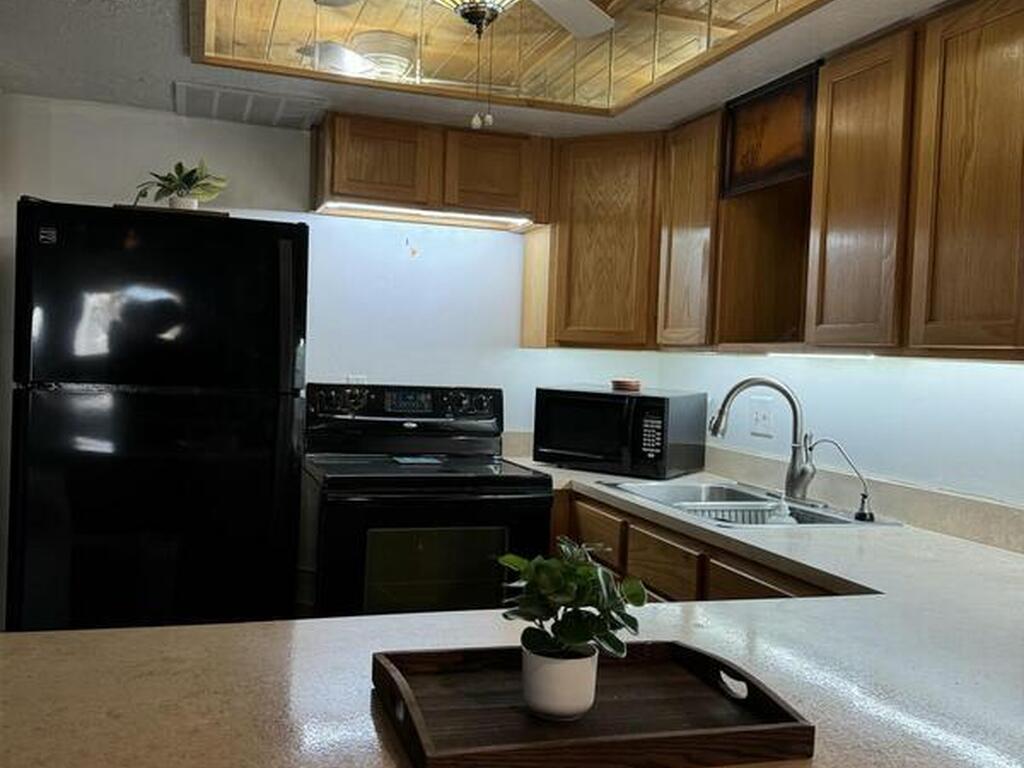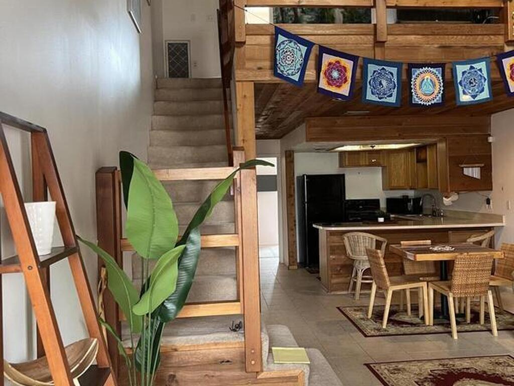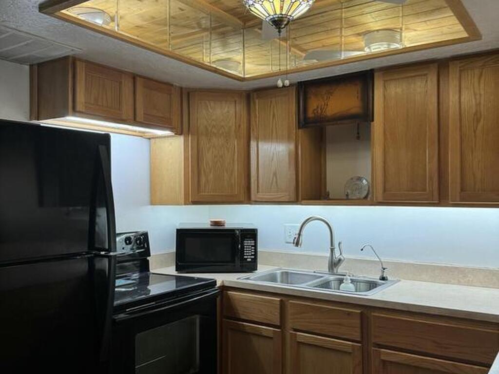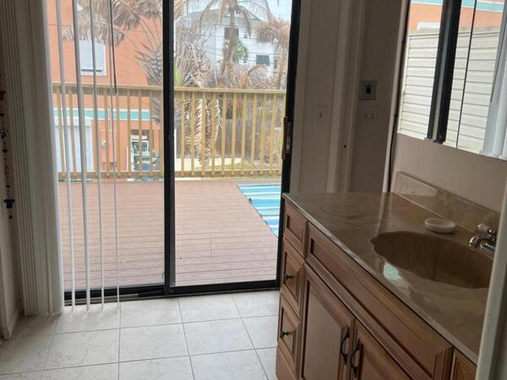 Enjoy this Furnished Townhome just steps from the Beach. Cathedral ceiling in LR with decorative stone fireplace (not operational). Loft bedroom & bath with sliders to a spacious upper deck. First Bedroom & bath also has sliders to the first floor enclosed patio. Kitchen is open to the dining & living room area.