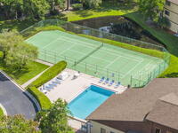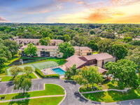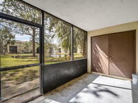 CONGRATULATIONS! You just found an affordable property, located in a beautiful and scenic community, and LOADED with amenities! This spacious ground floor unit is light and bright with a gorgeous pond view, and is surrounded by lush landscaping and mature oak trees. Well maintained, the interior features ceramic tile floors in main areas, and carpet in both bedrooms. Kitchen includes stainless steel appliances and breakfast bar. Screened back porch looks out to the pond and includes private laundry and storage. Community amenities include a resort-style pool, huge fitness center, tennis/pickleball, 2 interior racquetball courts, shuffleboard, pool tables, clubhouse, and fenced RV/boat storage (located on east side of community)!