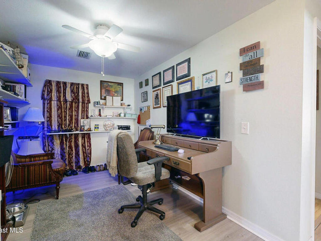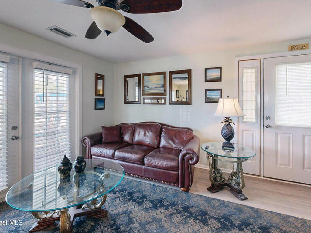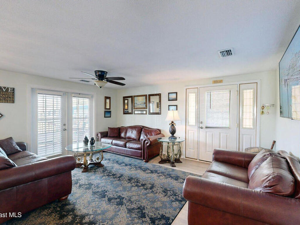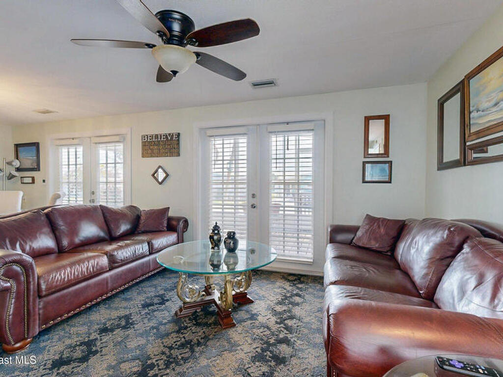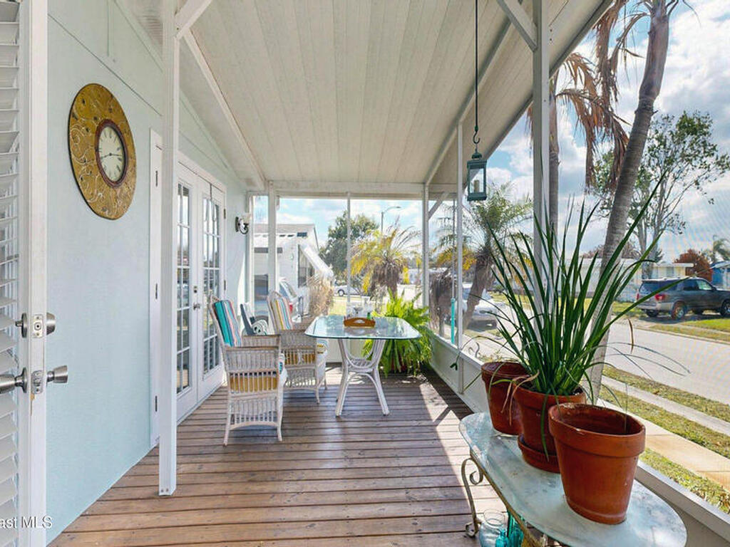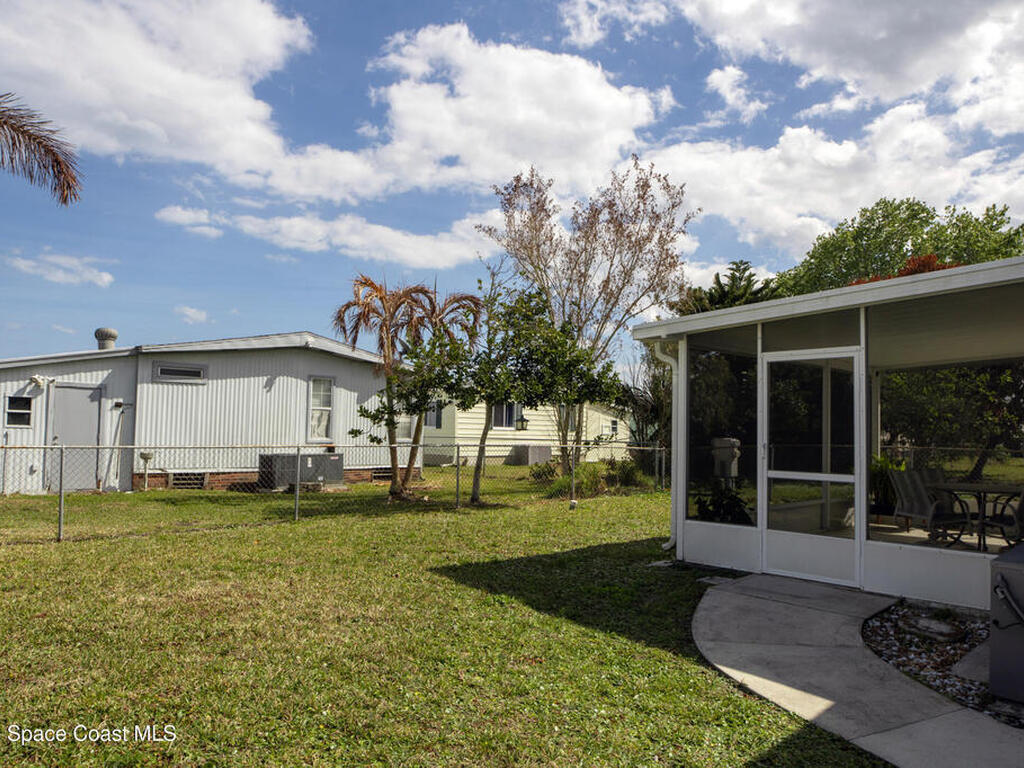 Easy Florida Living!! PALM BAY COLONY 55+ Community! HOA is VOLUNTARY and paid until Jan 2027 by Seller -- enjoy the pool and amenities! Updated 2BE, 2BA double wide home. Updated kitchen with stainless steel appliances, range with double oven and maple cabinets. Updated master and guest bath. Two French doors off screened front porch and leaded glass side door off carport. Screened back porch off master bedroom. Fenced backyard. Indoor laundry. Carport with oversized enclosed storage. New breakers in main panel. A/C 2021 with 10-year parts warranty. Water heater 2025. Updated plumbing. Workshop. Clubhouse, pickleball, pool, shuffleboard and tennis courts. Protected security by ARLO. Located in Palm Bay in beautiful Brevard County -- minutes to the beaches of Cocoa Beach and the Space Coast. Enjoy nearby waterfront dining and watch rocket launches from Kennedy Space Center light up the sky! 🌴🚀🌊 Best part? This lot is owned!!! So no monthly rent!