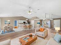 Privacy without isolation, space without restriction--this one-owner home delivers both. A wide retention pond creates natural separation between neighbors, transforming into a sprawling grassy field where kids run free when dry, and a shallow, duck-dotted water feature after rain. Inside, cathedral ceilings lift the living spaces with airy volume, while a newly renovated primary shower with built-in bench adds a fresh, modern touch. The truss-covered lanai and screened enclosure with power invite effortless outdoor living year-round. Major updates bring peace of mind with a 2019 refrigerator, 2024 microwave and range, a newer disposal, and brand-new screens throughout in 2026. Well cared for and thoughtfully maintained--with no HOA to limit your lifestyle--this property blends freedom, function, and everyday comfort in all the right ways.