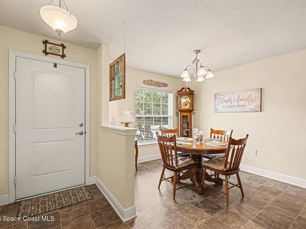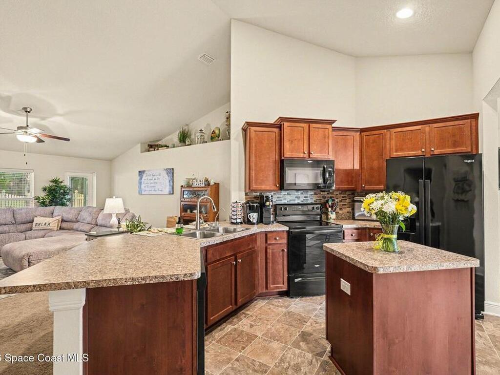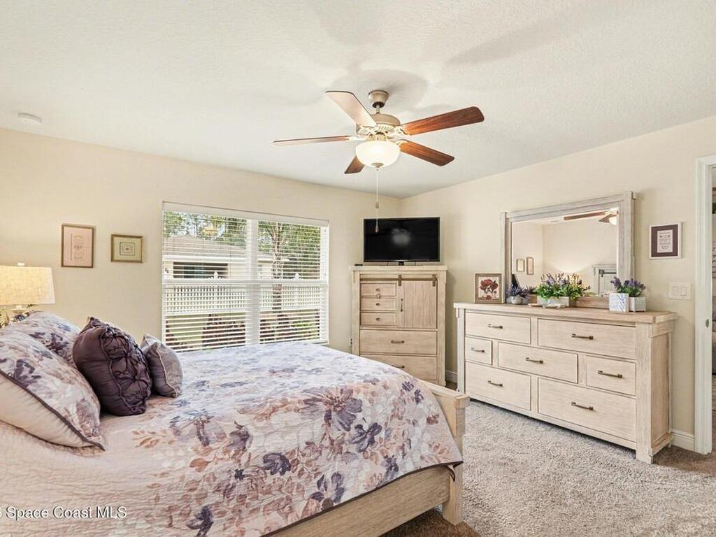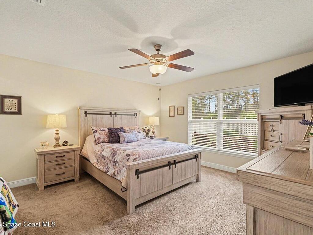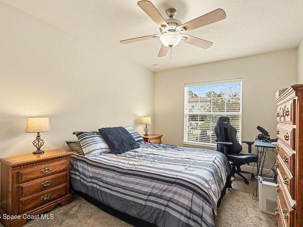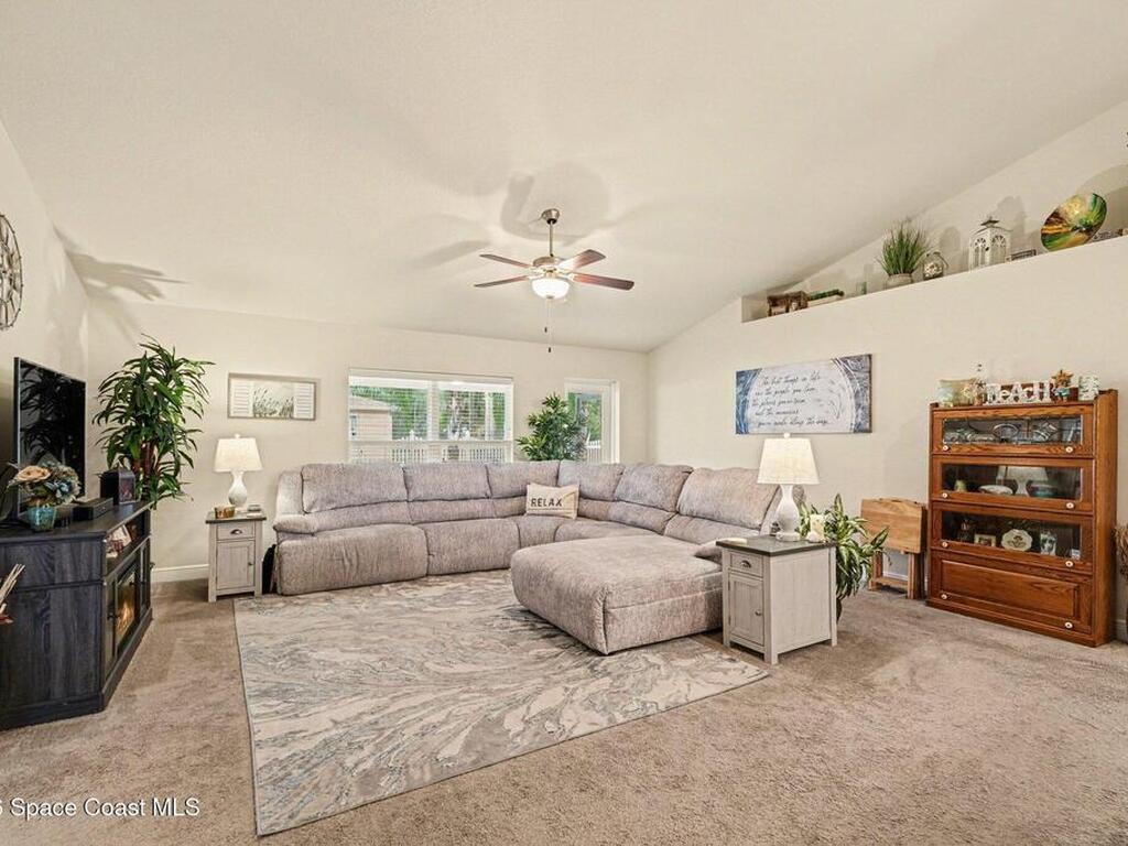 Built in 2019 and meticulously maintained, this 4-bedroom, 2-bath split-plan home comes complete with everything new construction asks you to add on later. A refrigerator, washer, dryer, white vinyl fenced backyard, coated driveway, and manicured landscaping are all already here and waiting. The open layout features a large kitchen island overlooking the great room, a separate dining area, and a primary suite with double vanities, garden tub, and separate shower. The oversized laundry room adds everyday convenience. Step outside to a fully furnished screened lanai with a Polywood table set, perfect for outdoor entertaining, plus an extended patio, all ready to enjoy from day one. Select interior furniture included, making this truly turnkey. No builder-lender requirements, bring any lender and loan program that works best for you. A growing Palm Bay community with a home that is complete, move-in ready, and priced to reflect real value.