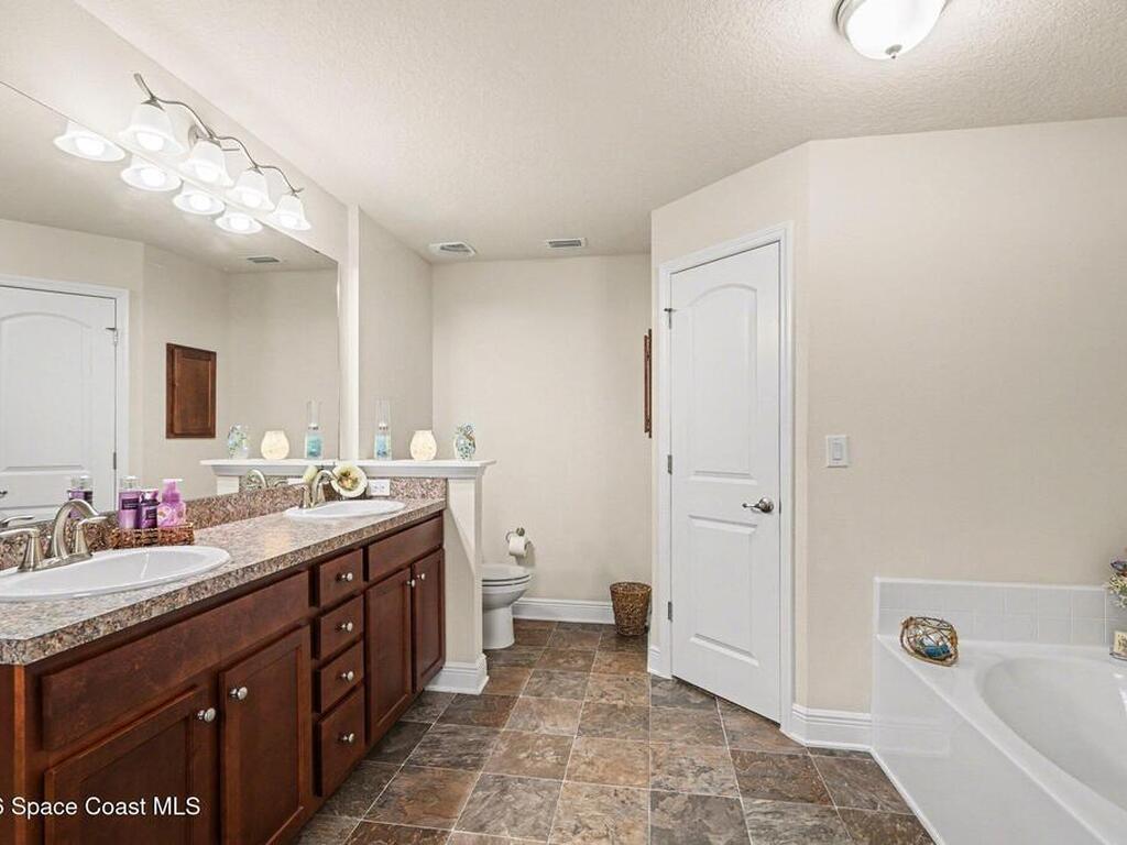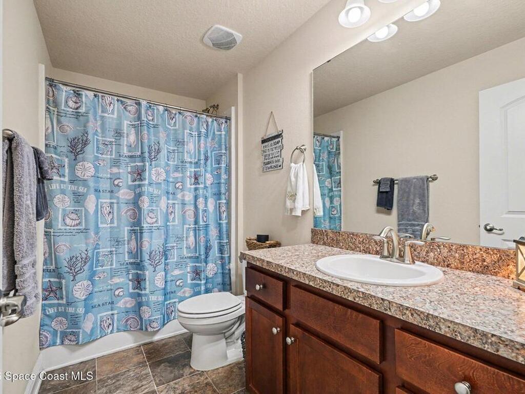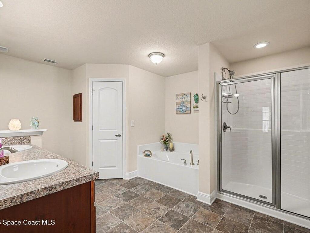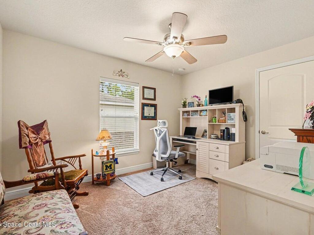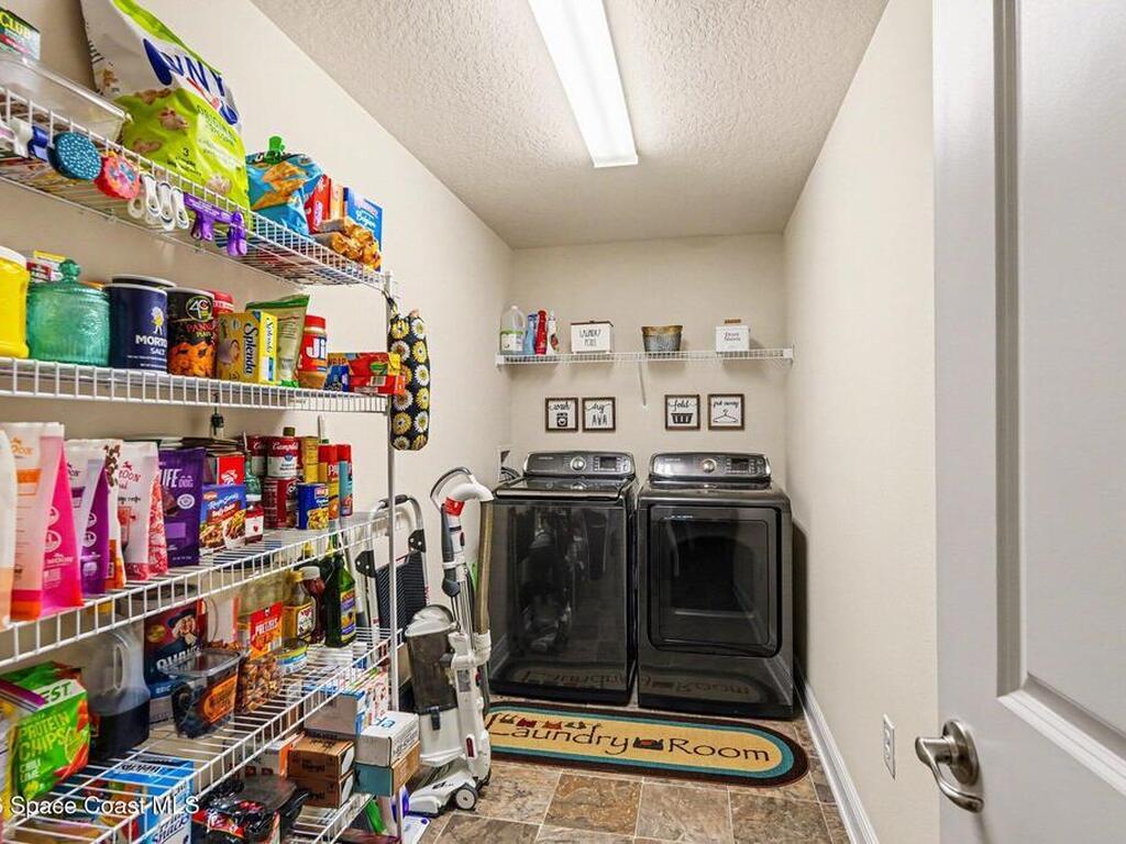 Built in 2019 and meticulously maintained, this 4-bedroom, 2-bath split-plan home comes complete with everything new construction asks you to add on later. A refrigerator, washer, dryer, white vinyl fenced backyard, coated driveway, and manicured landscaping are all already here and waiting. The open layout features a large kitchen island overlooking the great room, a separate dining area, and a primary suite with double vanities, garden tub, and separate shower. The oversized laundry room adds everyday convenience. Step outside to a fully furnished screened lanai with a Polywood table set, perfect for outdoor entertaining, plus an extended patio, all ready to enjoy from day one. Select interior furniture included, making this truly turnkey. No builder-lender requirements, bring any lender and loan program that works best for you. A growing Palm Bay community with a home that is complete, move-in ready, and priced to reflect real value.