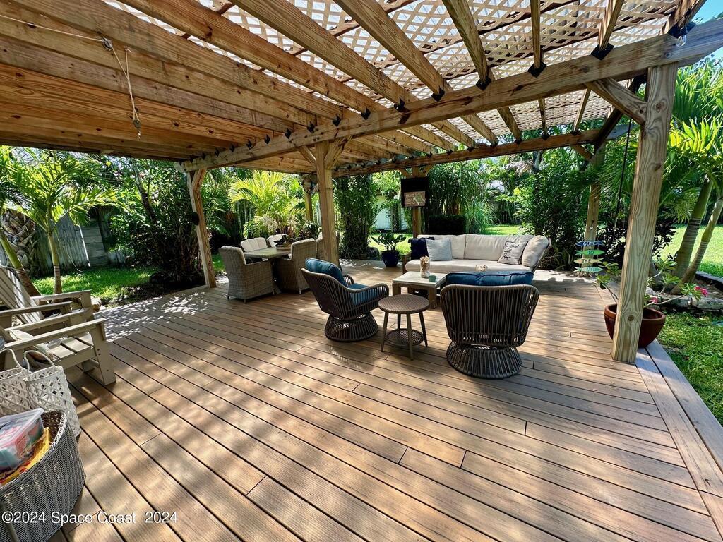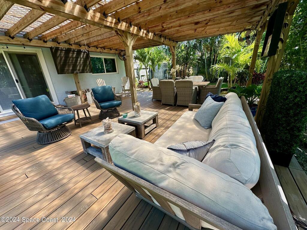 Fully furnished 2-minute walk to the beach in most desirable location in this gorgeous turnkey Coastal modern furnished rental. 3 bedrooms and an office. Huge outdoor covered porch, firepit and pergola. 7 houses to the best beach access, 5 blocks to our wonderful little beach town and 1 block to Boat Launch on 6th. Walk/bike/ gold cart friendly area.