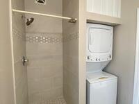 Electric Range, Ice Maker, Microwave, Refrigerator, Washer/Dryer Stacked