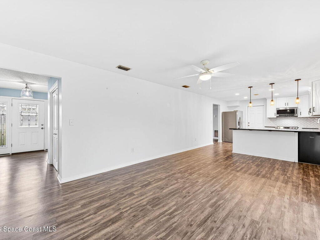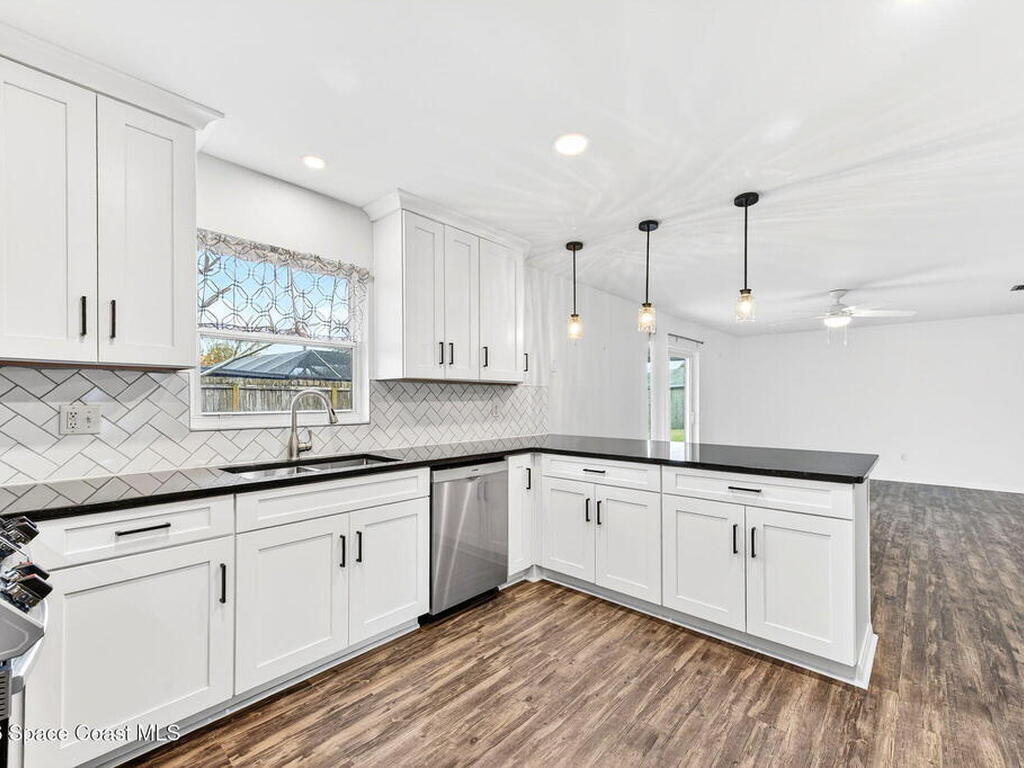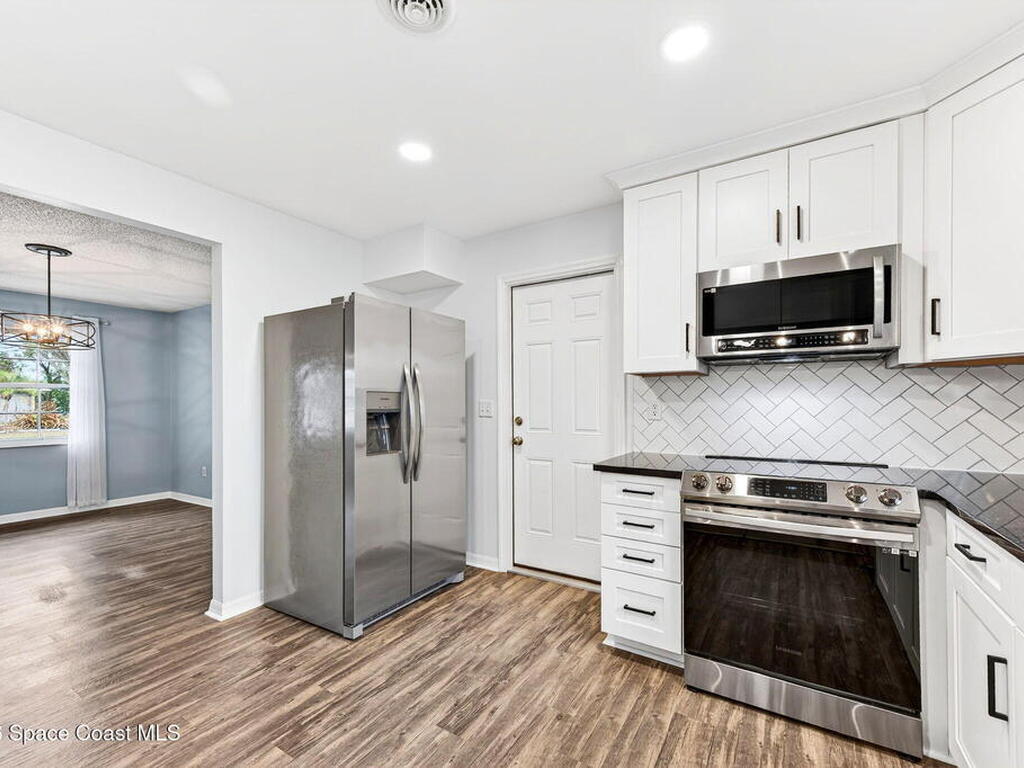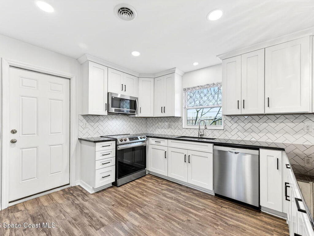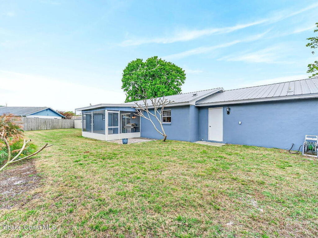 MOVE IN READY and beautifully updated ranch in the heart of Rockledge! Situated on a fully fenced .27-acre extended corner lot, this 3-bedroom, 2-bath, 2-car garage home offers bright, open living spaces with abundant natural light and vinyl flooring throughout--NO carpet. The kitchen features solid wood soft-close cabinetry, granite countertops, and stainless steel appliances. Major updates include a METAL ROOF (2024) and HVAC (2025). The spacious primary suite boasts a renovated ensuite bath with countertops and a tiled walk-in shower with glass enclosure. Enjoy the freedom of NO HOA. Conveniently located near Publix, ALDI, Whole Foods, Starbucks, and the Post Office. Approximately 20 minutes to Patrick Space Force Base and area beaches. Schedule your private showing today!
