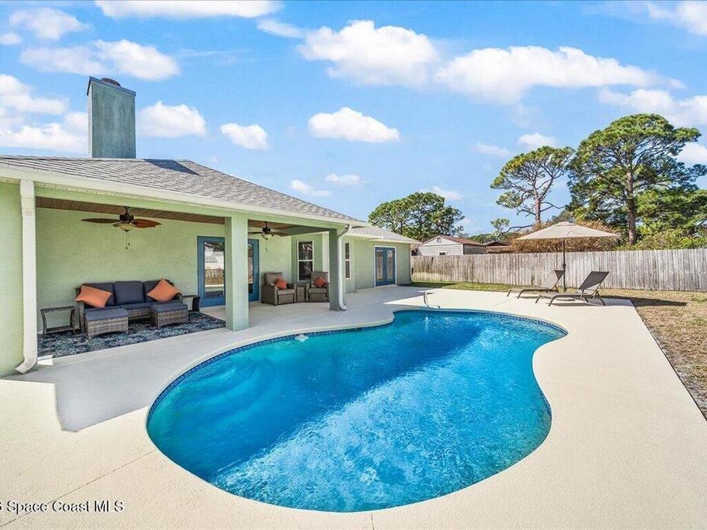 Welcome to your Florida lifestyle retreat! This 4 bed, 2 bath pool home offers the perfect blend of indoor comfort & outdoor living. Step inside to a bright & inviting floor plan with spacious living areas designed for both everyday living & entertaining. The kitchen flows seamlessly into the main living space, creating a welcoming environment for gatherings with family & friends. The split bedroom layout provides privacy, with a generous primary suite featuring an en-suite bathroom & ample closet space.Step outside to your private backyard oasis where a sparkling pool invites you to relax, entertain, & enjoy year round Florida sunshine. Whether you're hosting weekend barbecues, enjoying peaceful evening by the pool, or soaking up the coastal breeze, this outdoor space is designed for true Florida living. There's plenty of room for family, guests, or a home office. This property is ideal for first time buyers or a growing family. Excellent location, quiet & close to everything!