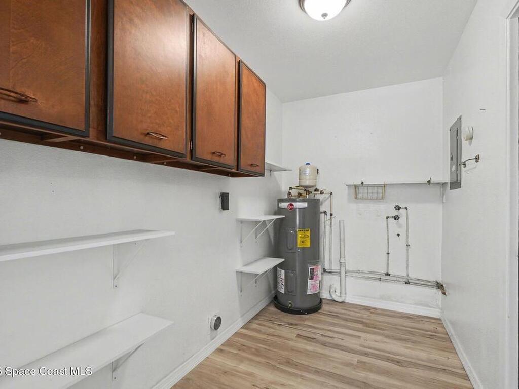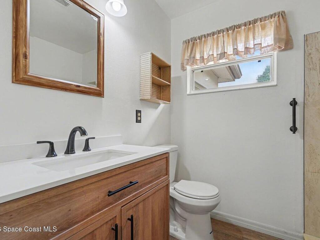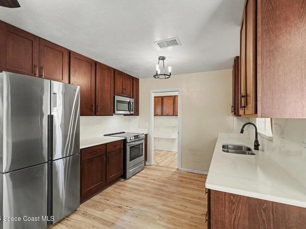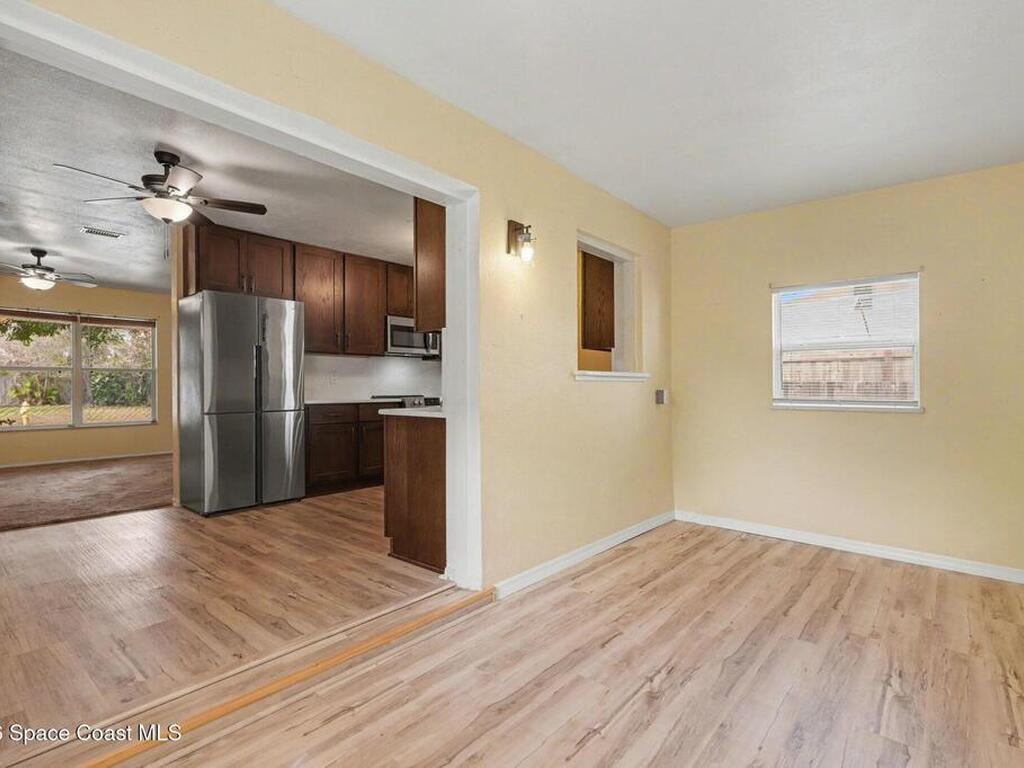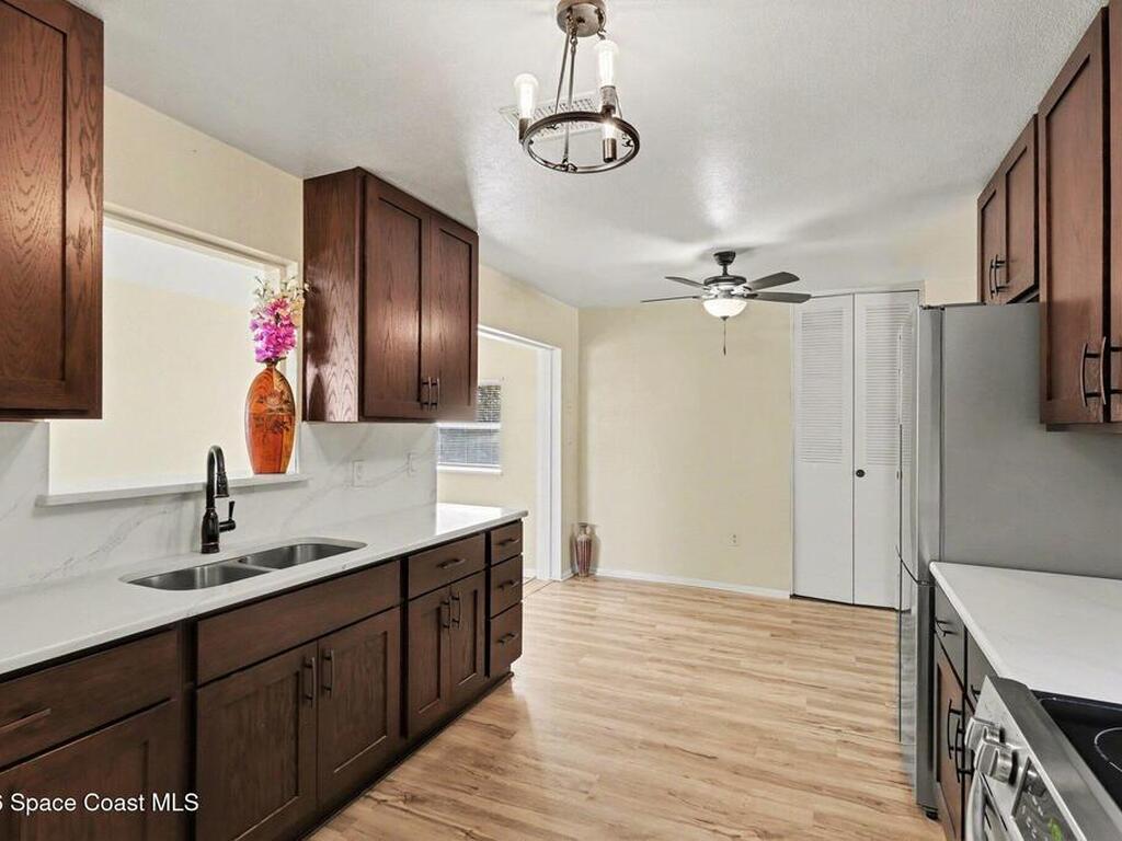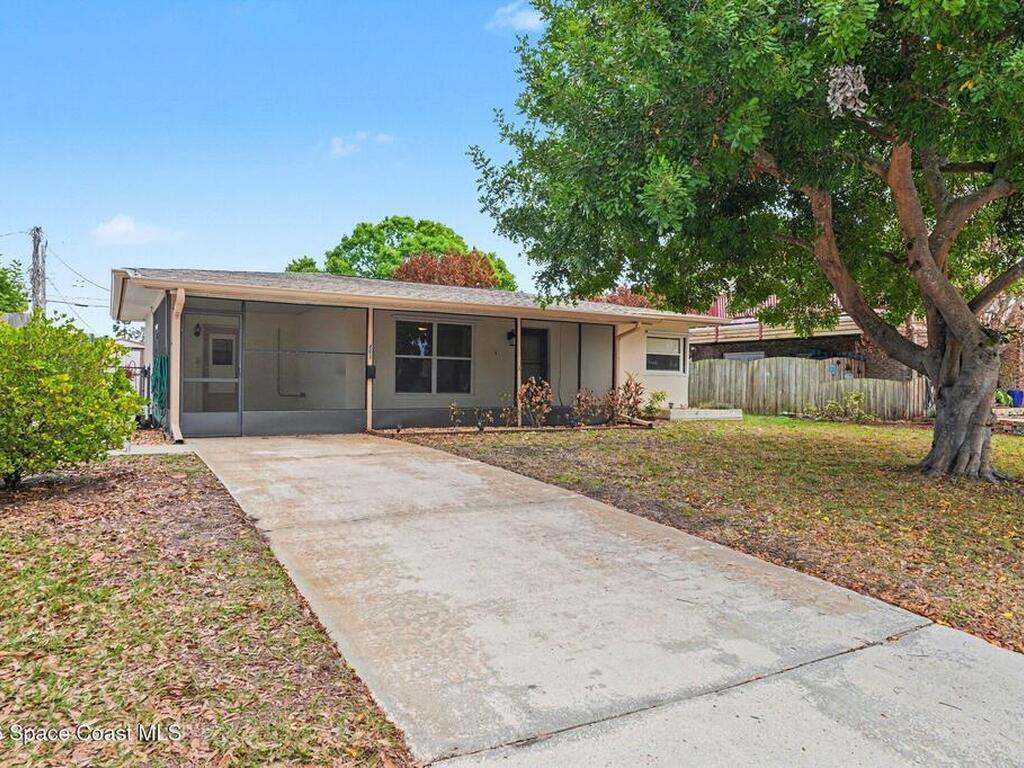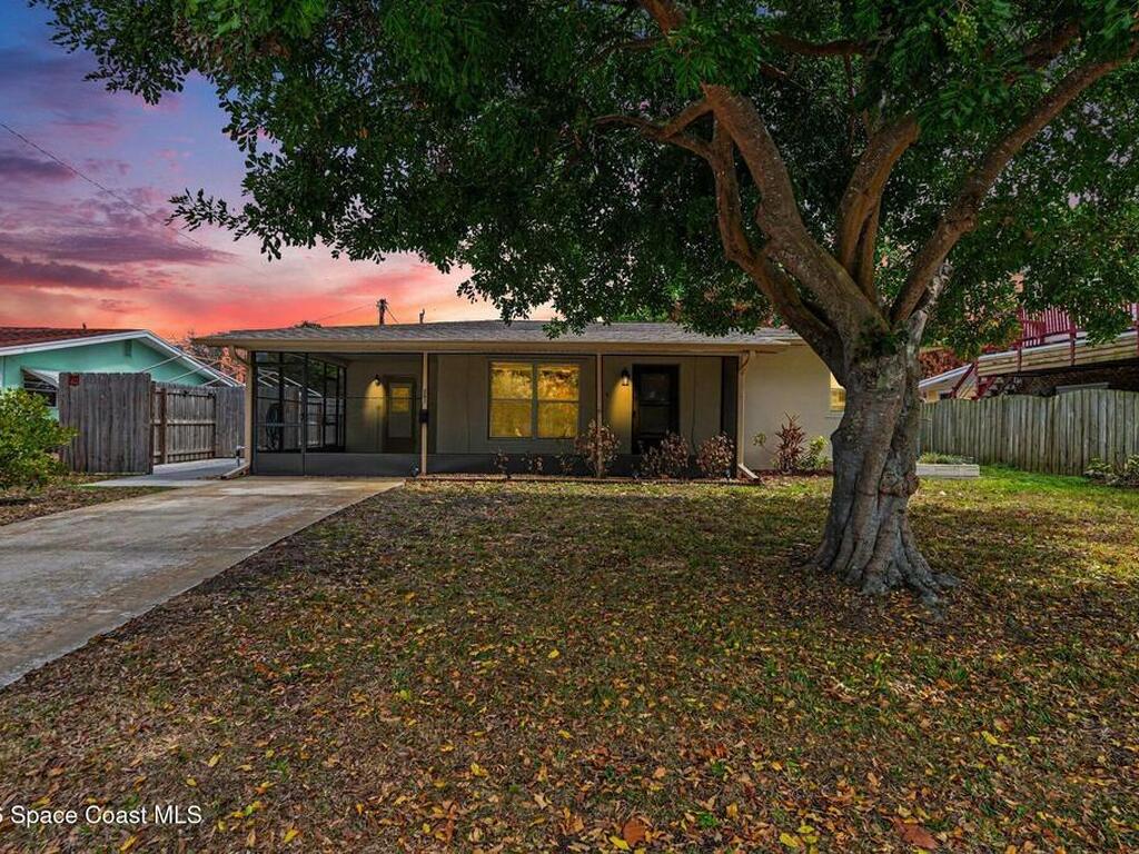 Move In Ready!! Whether you're searching for the perfect starter home, sunny seasonal retreat, or smart investment, this charming 2BR/1BA delivers! Enjoy stress-free living w/ a 2024 roof and upgrades throughout. The remodeled kitchen shines w/ quartz countertops and backsplash, stainless steel appliances, soft-close cabinetry, and a stainless sink. New luxury vinyl plank flooring flows through the home, complemented by cozy carpeted living. The beautifully updated bath features a tiled walk-in shower w/ accessible handrails. Relax al-fresco on the screened-in carport and front porch. Enjoy outdoor living w/ a fully fenced backyard w/ shed, garden bed, avocado and Brazilian nut trees, plus double gates for easy RV/boat parking. Plenty of room to garden, add a pool, or expand. In an establish neighborhood with No HOA and No Rental Restrictions; the possibilities are endless. Privately backing to a canal and minutes from the Eau Gallie Arts District, dining, and Brevard's beaches!
