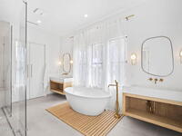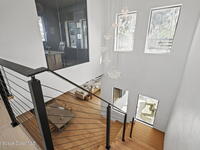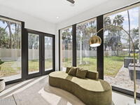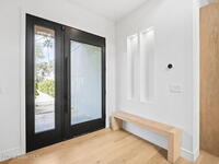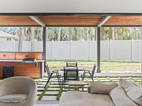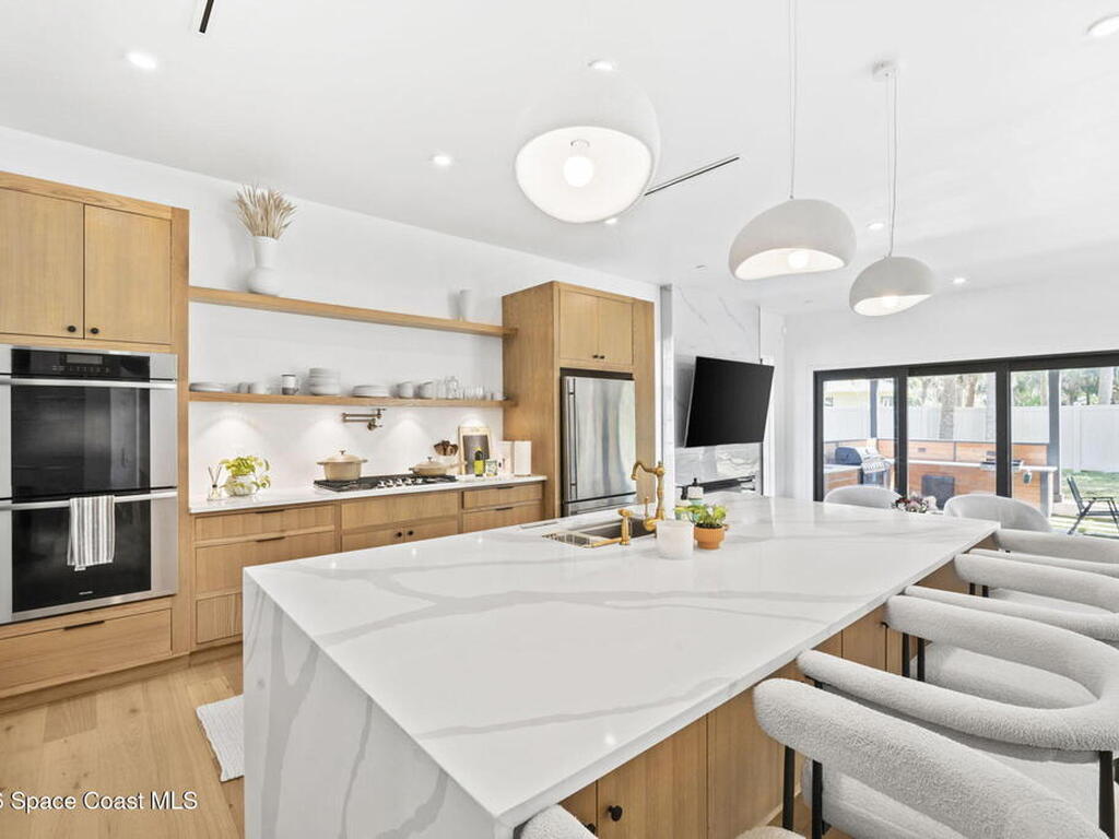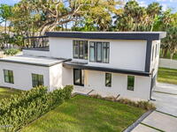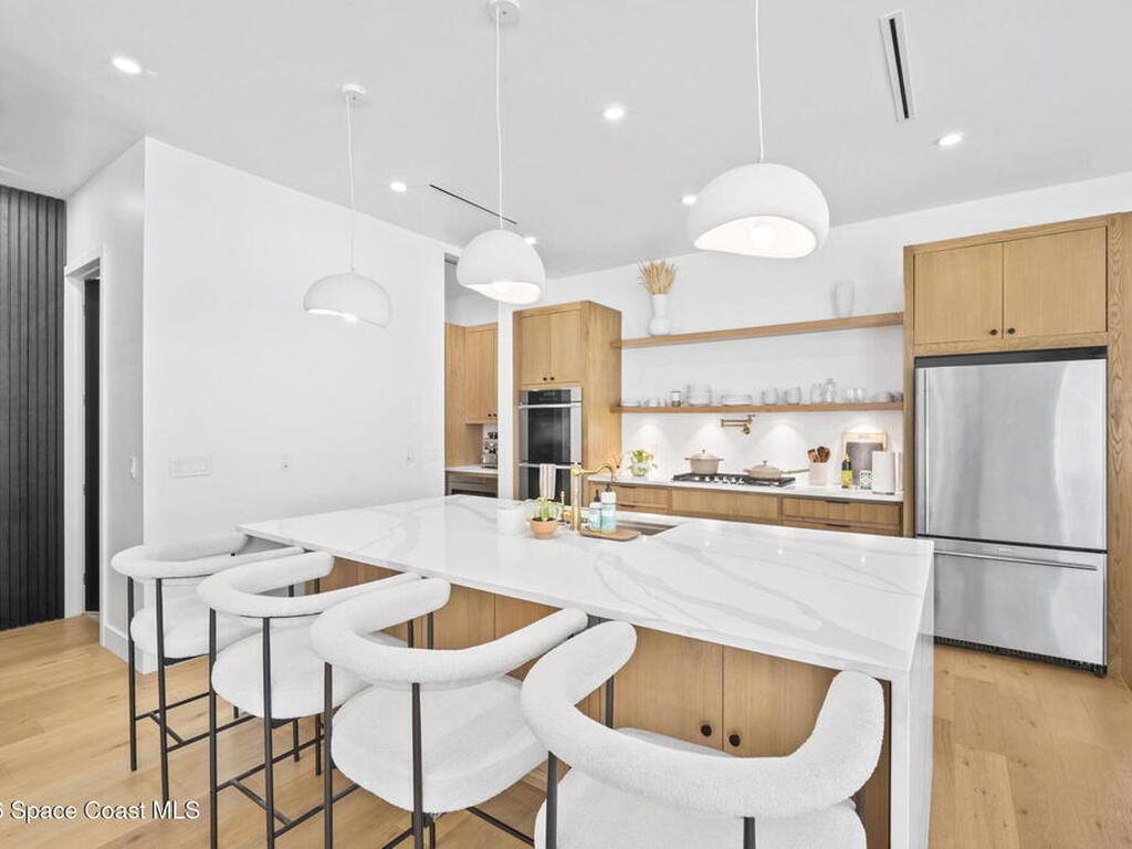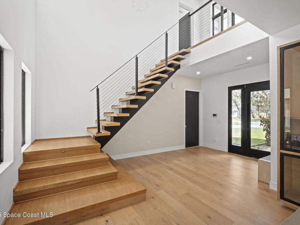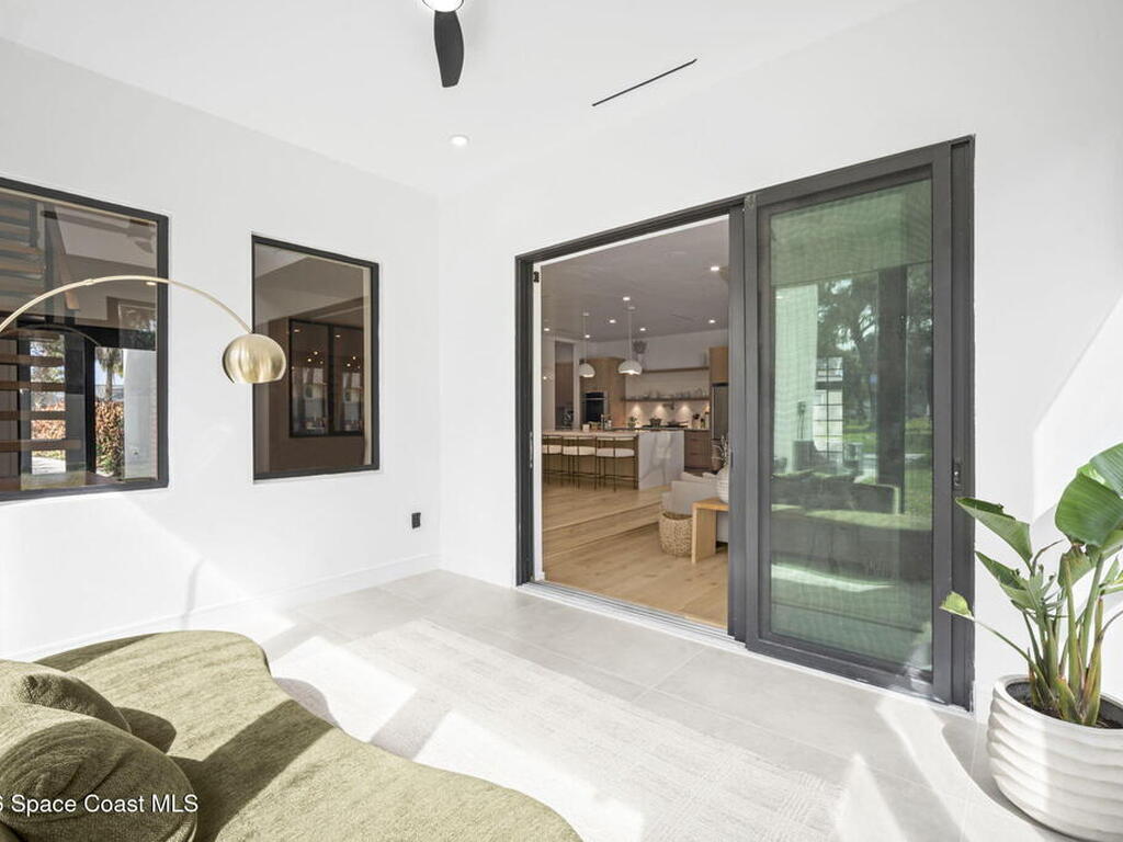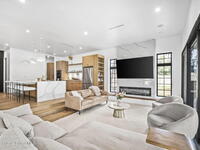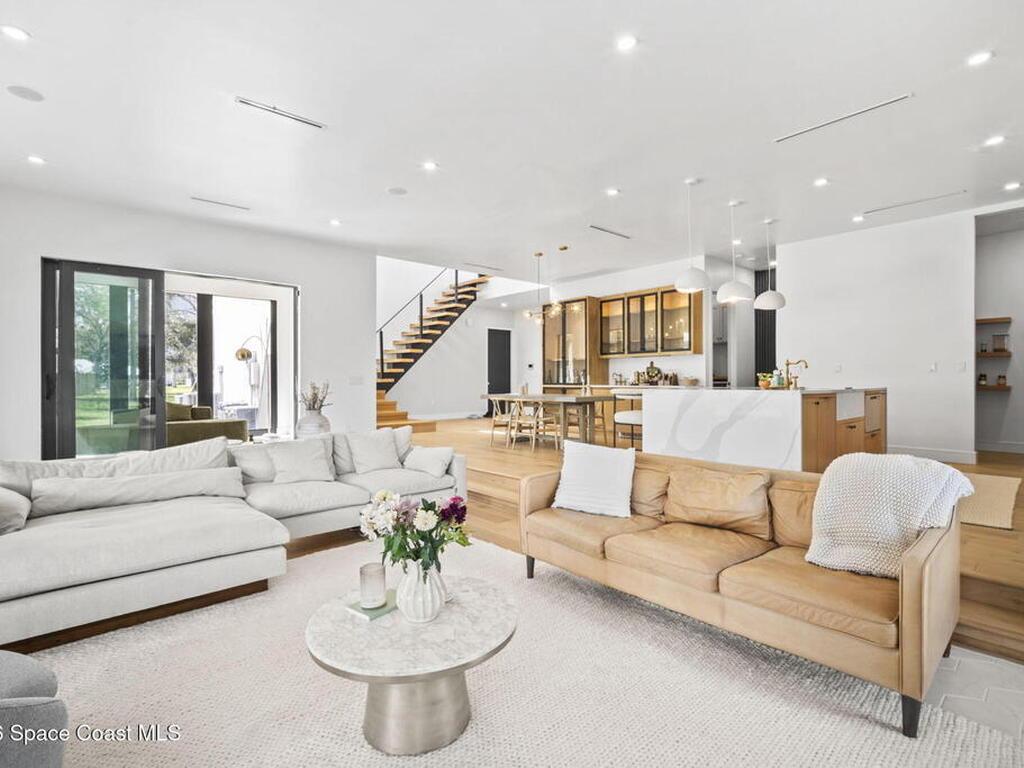 Beneath a canopy of mature oaks, a modern two-story home quietly sets itself apart.Clean architectural lines, black framed windows, and natural materials give the home a calm confidence before you ever step inside. It's the kind of design that doesn't try too hard... it just works.Inside, the space opens immediately. Wide plank white oak floors run throughout the main living areas while a wall of sliding glass stretches across the back of the home, drawing natural light deep into the interior and connecting the living space to the outdoors.The architecture favors openness and simplicity. Living, dining, and kitchen spaces flow naturally together, creating a layout that feels effortless whether it's a quiet evening at home or a full house on the weekend.