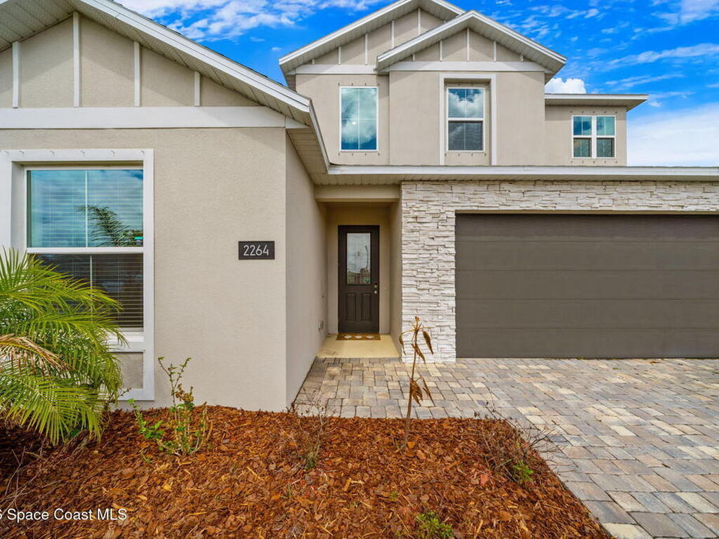 Welcome to 2264 Middlebury Dr SE in Palm Bay, FL - a spacious 2-story home offering 5 bedrooms & 3.5 bathrooms in a desirable & growing community. Upon entering, you're greeted by high vaulted ceilings that create a bright & open feel, complemented by modern touches throughout the home. The flexible floor plan provides ample space for living, entertaining, or working from home. Enjoy peaceful pond waterfront views from the backyard, perfect for relaxing evenings or morning coffee. Located in a HOA community with access to a community pool, this home is also conveniently situated near a top-rated public school and a newly constructed Publix shopping center with dining and everyday conveniences. Lawn care is included in the rent and pet dogs are considered on a case-by-case basis, allowing for easy, low-maintenance living. With quick access to nearby highways, commuting is simple to FIT & major employers such as the Space Force, L3Harris, & other major employers.