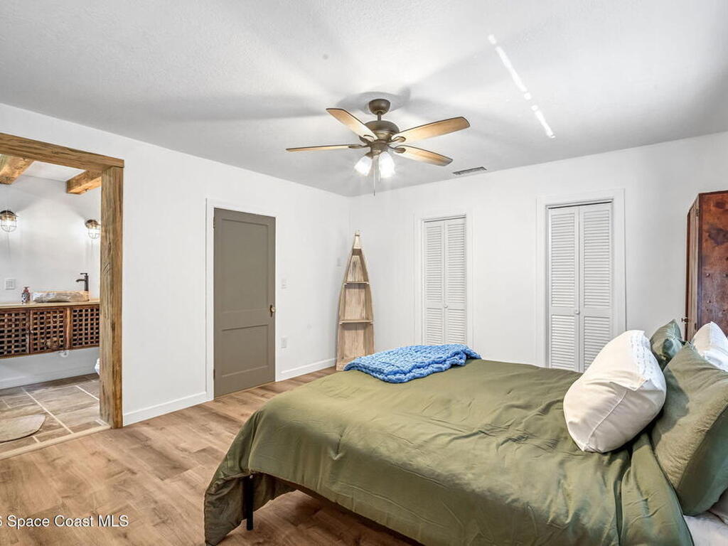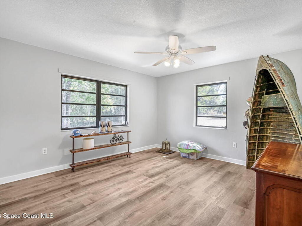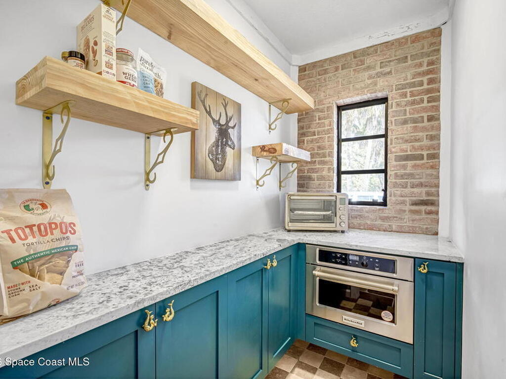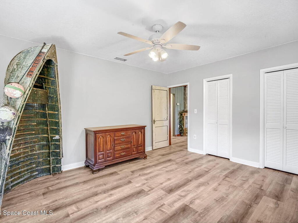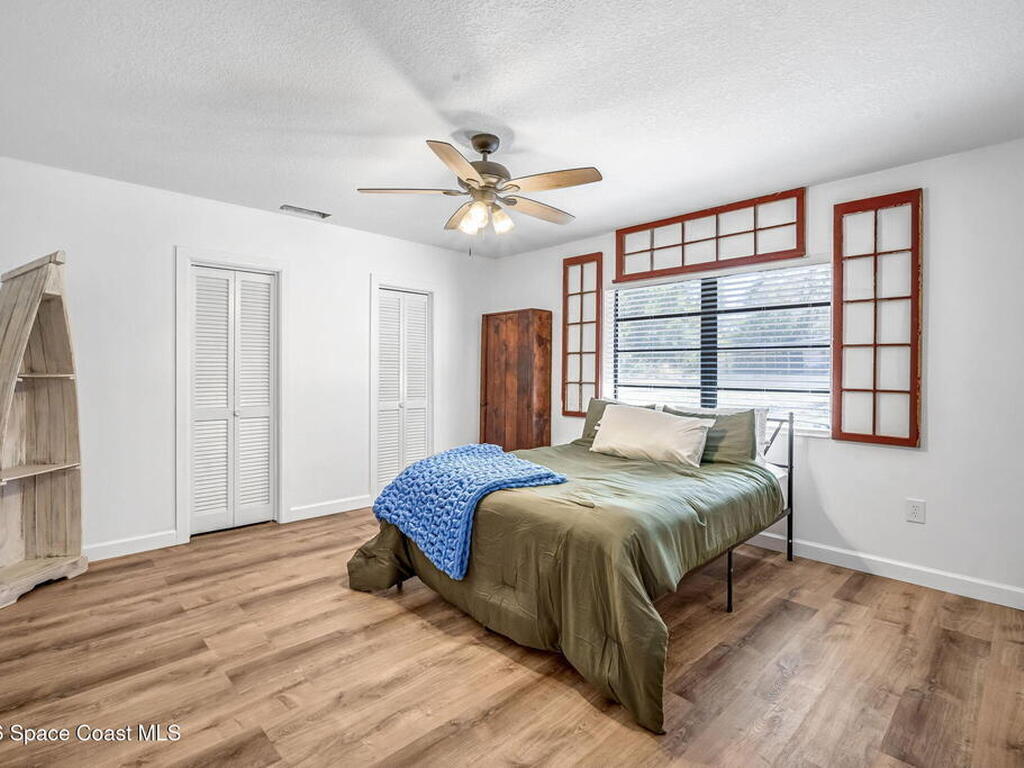Step into this breathtaking one-of-a-kind 1940's country blending timeless character with high-quality modern upgrades, all set on a spacious .71-acre lot just blocks from the Indian River. Solidly built with concrete interior walls, this beautifully remodeled home showcases meticulous craftsmanship throughout, featuring all new plumbing, a butler's kitchen, updated bathrooms, new flooring, and premium finishes. sale, equipped with a newer electric panel, hurricane shutters, and gutters, septic system and roof. Inside, you'll find hardwood floors, a hand-laid brick fireplace, and tongue-and-groove Florida knotty pine ceiling accents that highlights this homes charm. The detached garage includes a built-in loft and shelving, perfect for a workshop, storage, or creative space. With NO HOA, a great location and plenty of room for boats, RVs, or future additions, this property delivers privacy, quality, and flexibility all in one.