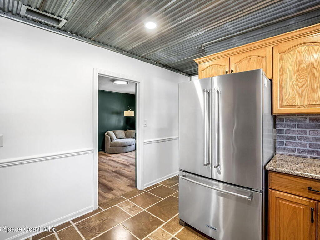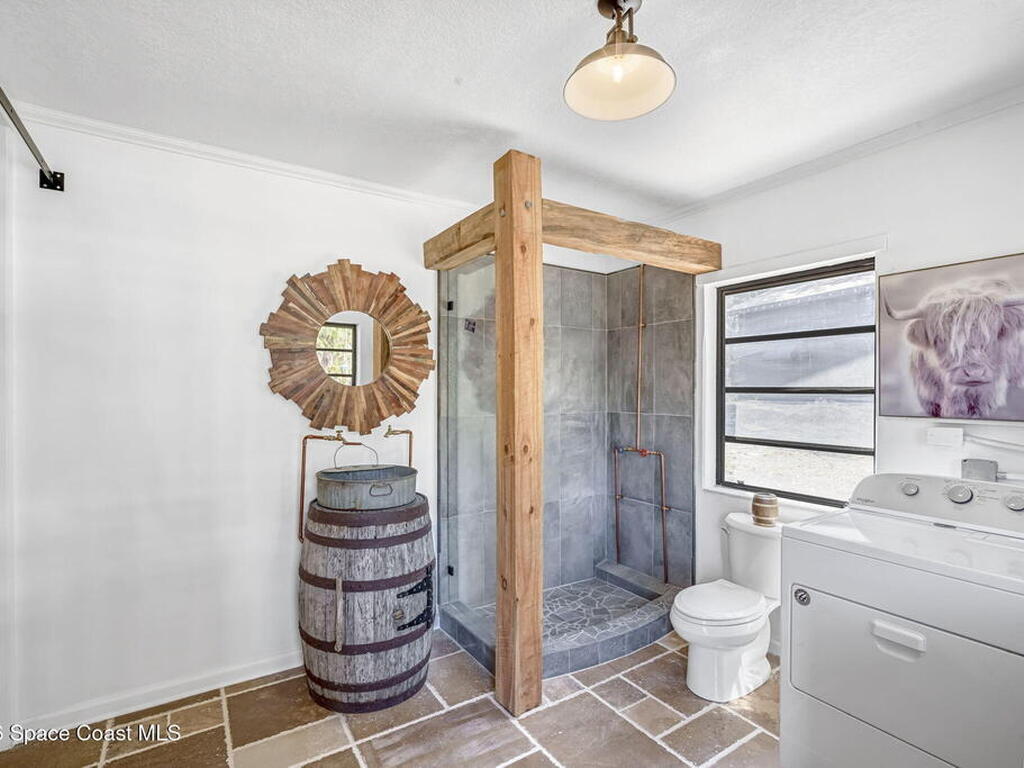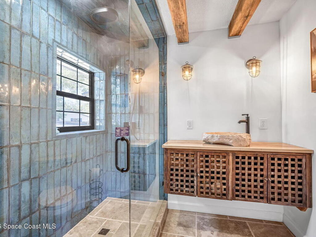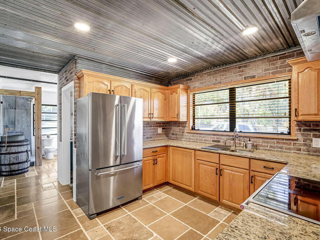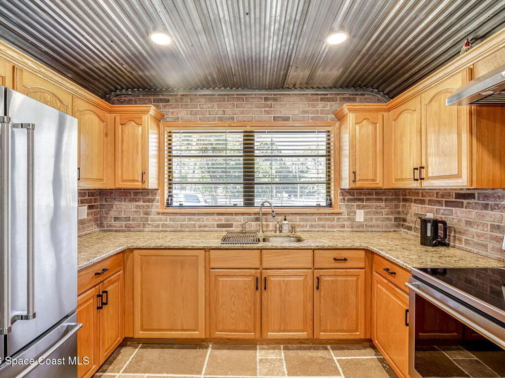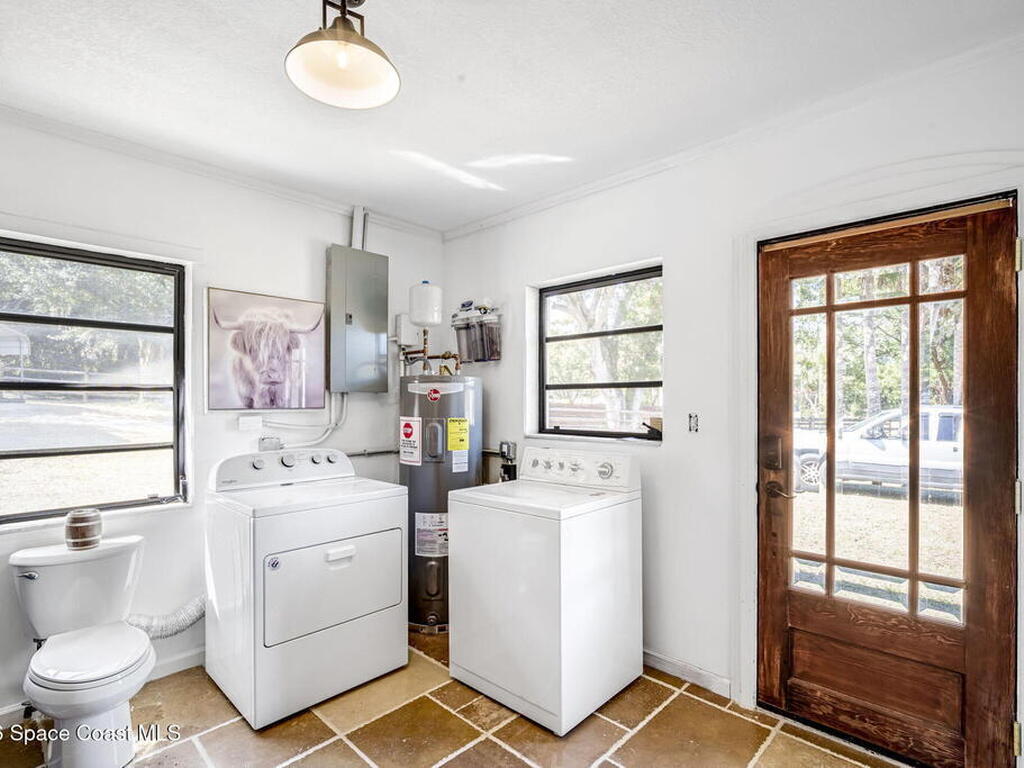 Step into this breathtaking one-of-a-kind 1940's country blending timeless character with high-quality modern upgrades, all set on a spacious .71-acre lot just blocks from the Indian River. Solidly built with concrete interior walls, this beautifully remodeled home showcases meticulous craftsmanship throughout, featuring all new plumbing, a butler's kitchen, updated bathrooms, new flooring, and premium finishes. sale, equipped with a newer electric panel, hurricane shutters, and gutters, septic system and roof. Inside, you'll find hardwood floors, a hand-laid brick fireplace, and tongue-and-groove Florida knotty pine ceiling accents that highlights this homes charm. The detached garage includes a built-in loft and shelving, perfect for a workshop, storage, or creative space. With NO HOA, a great location and plenty of room for boats, RVs, or future additions, this property delivers privacy, quality, and flexibility all in one.
